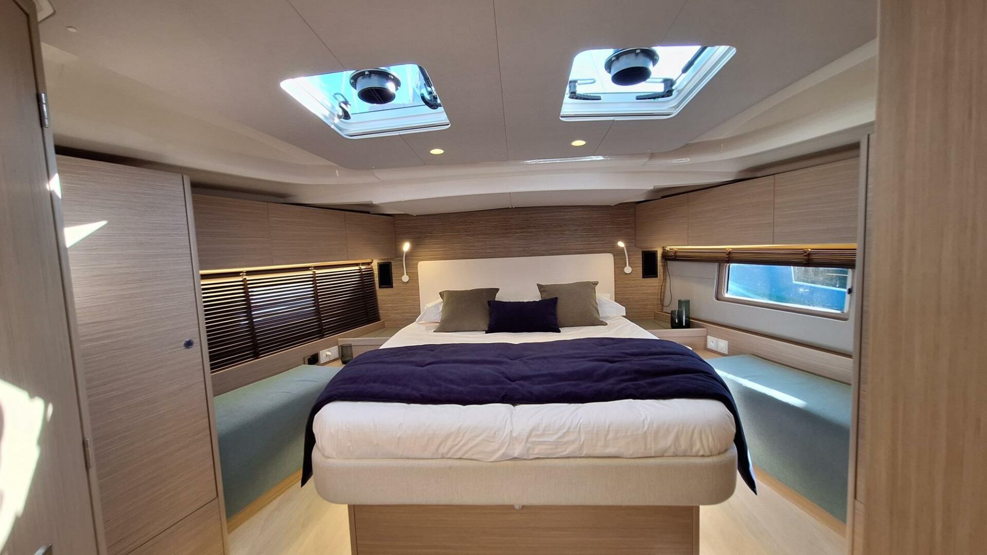 Every detail, innovation, and material, inside and out, has been carefully designed to elevate your sailing experience, whether sailing solo or with family. The bow cabin also offers additional space, perfect for a crew member or for guests.
