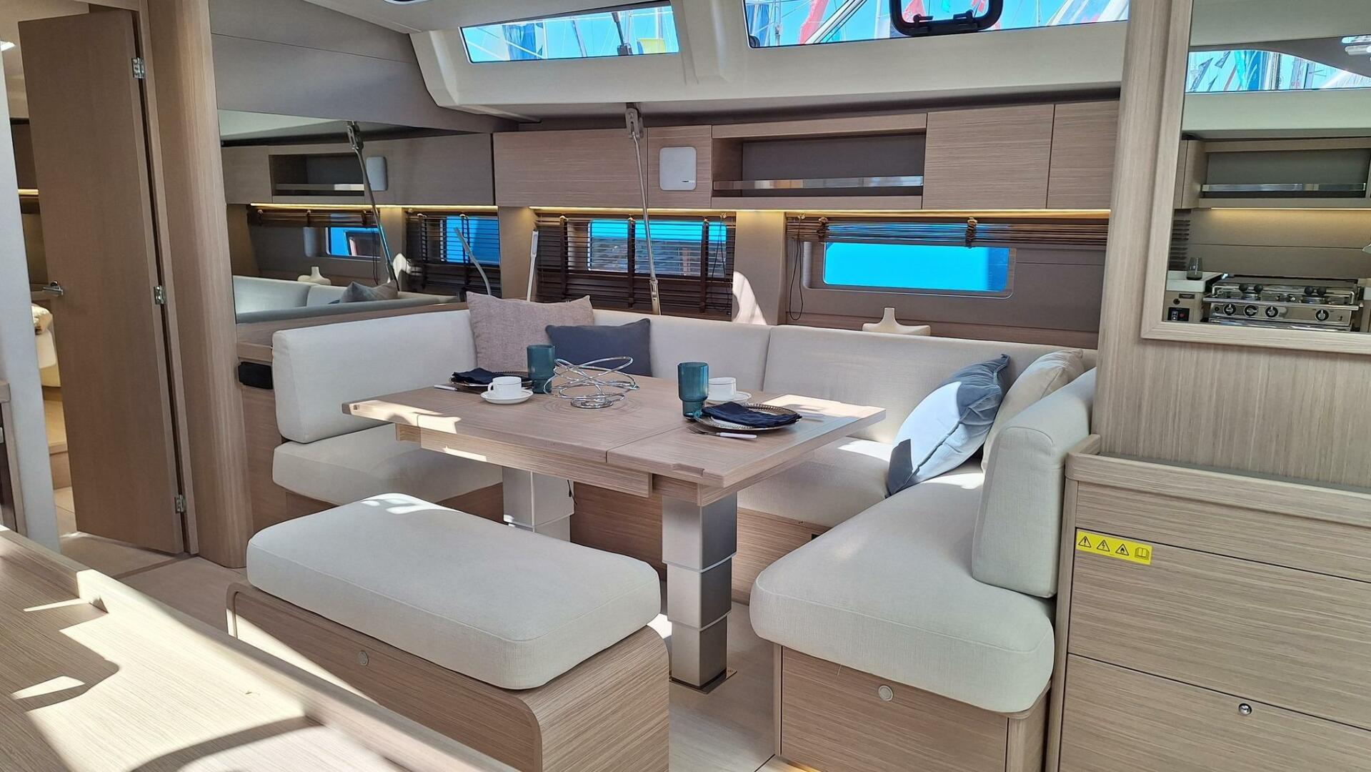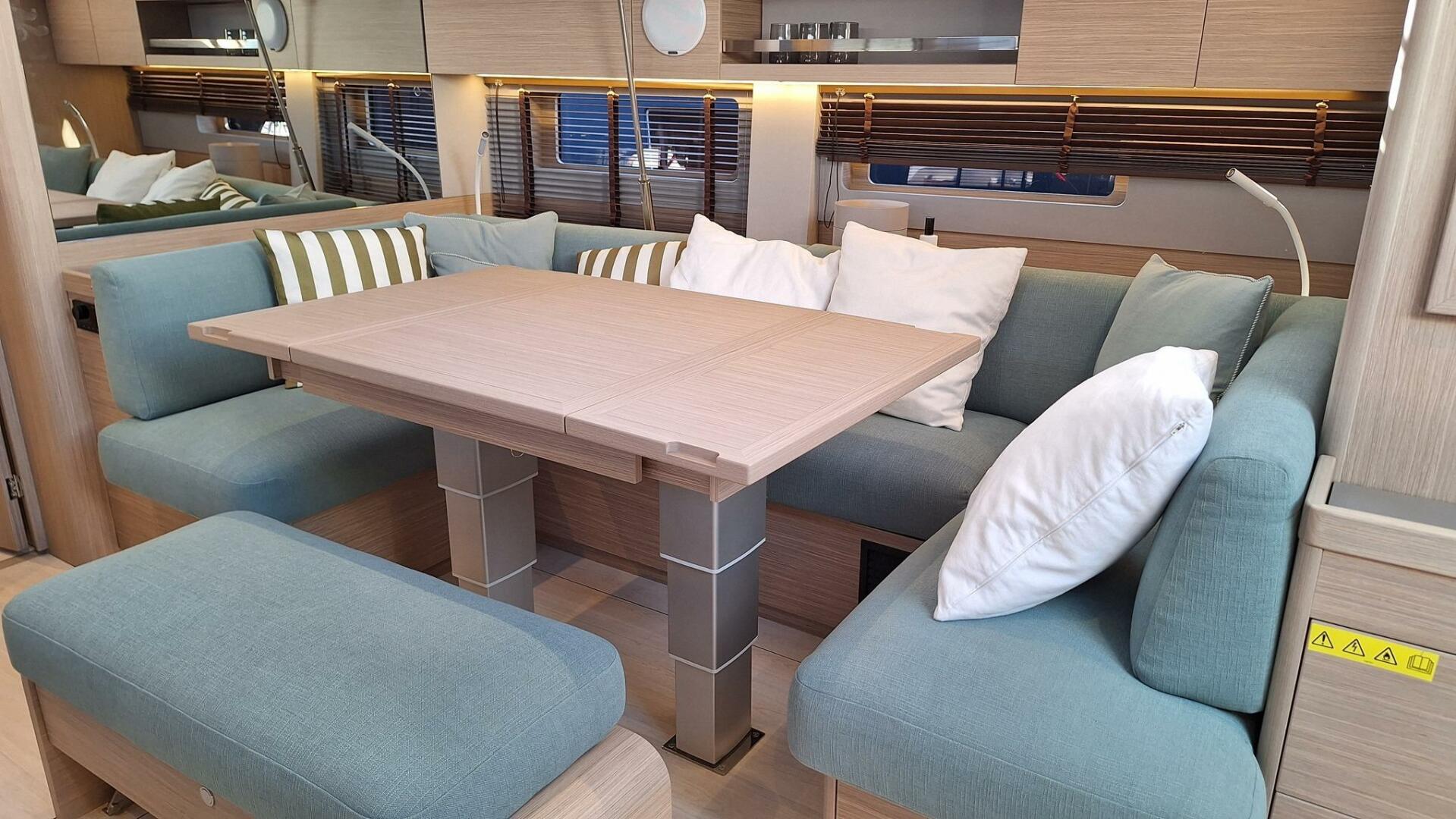 Moving between the companionway and the lifting swim platform is made easy by the twin C-shaped benches, which form a diamond-shaped space.