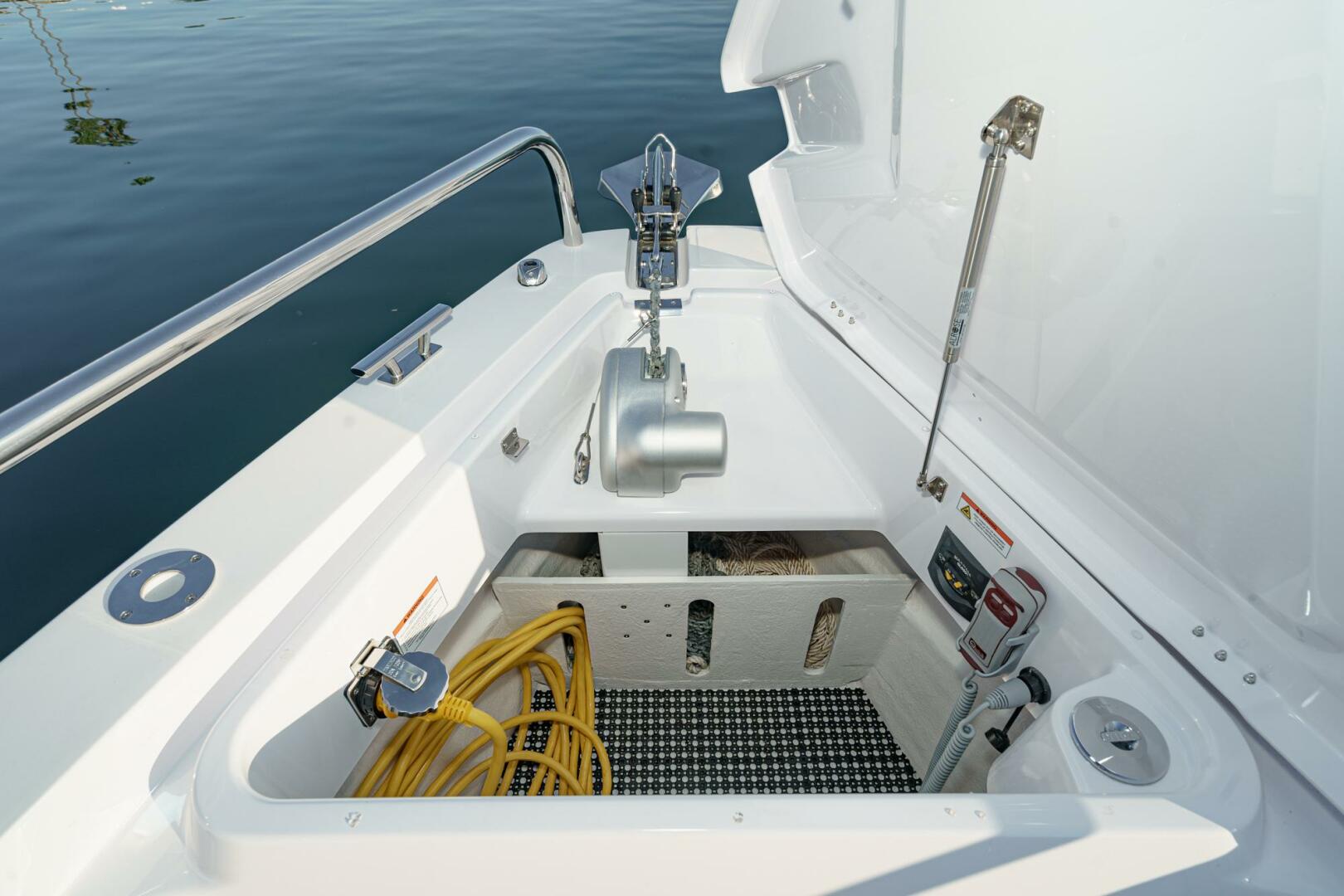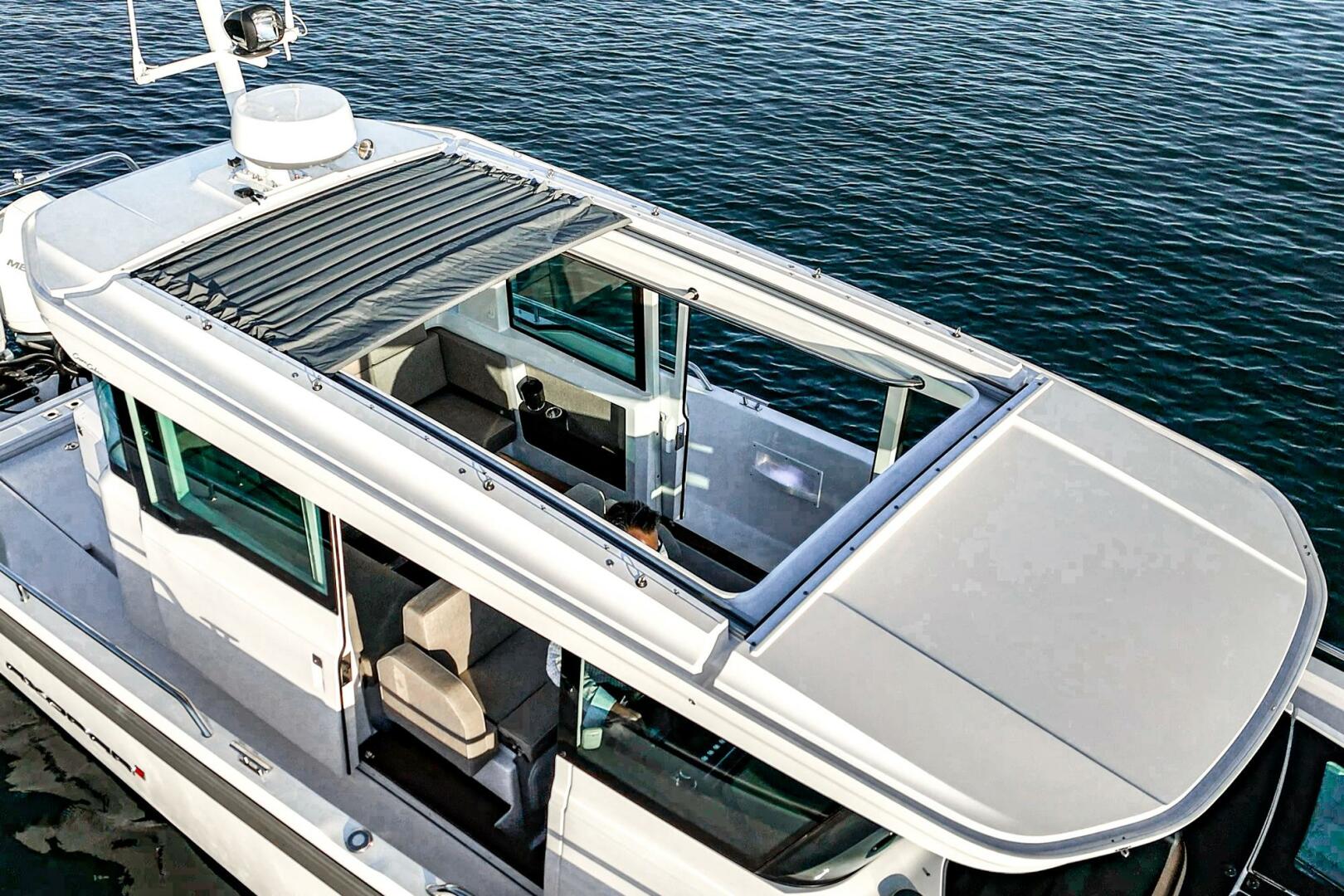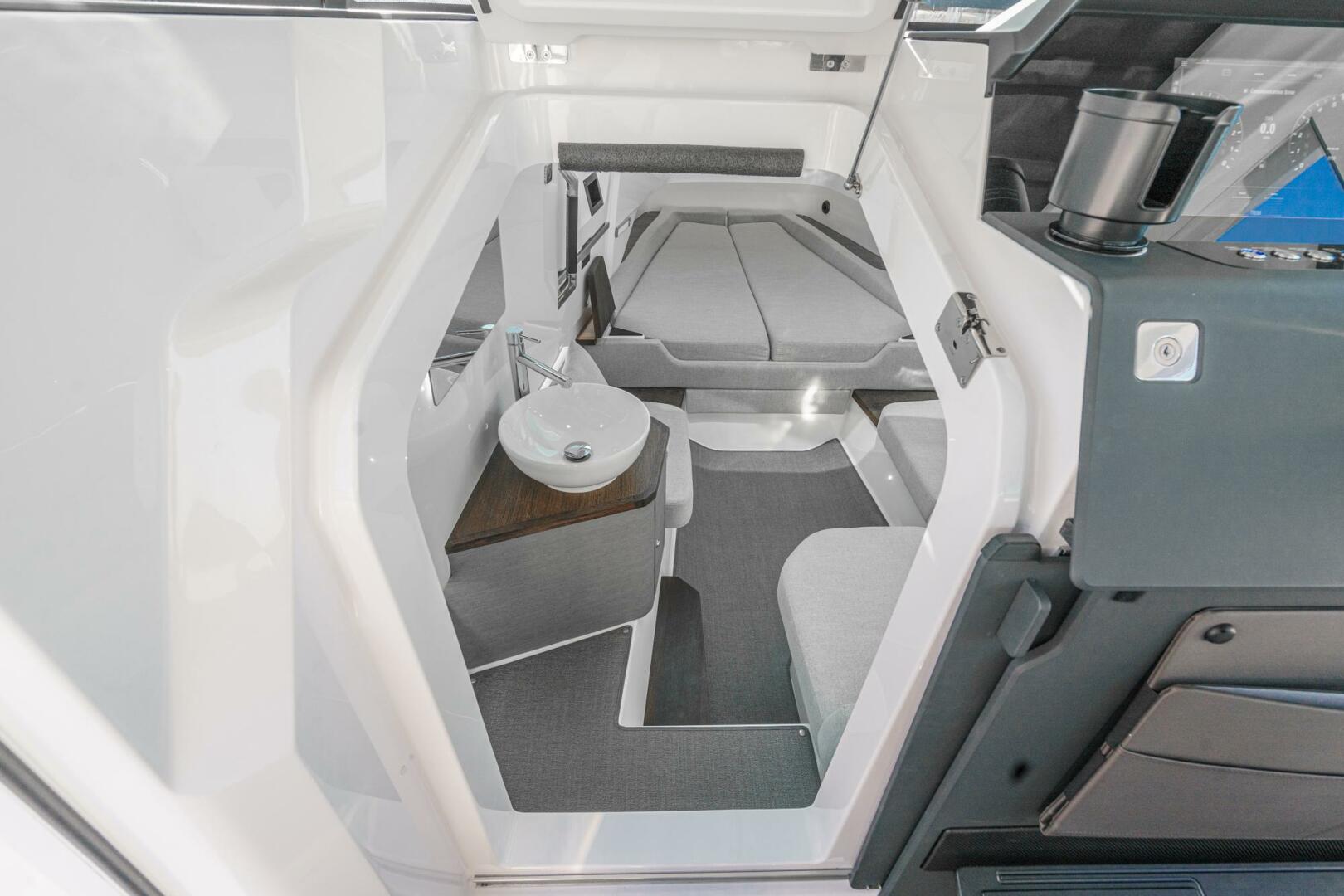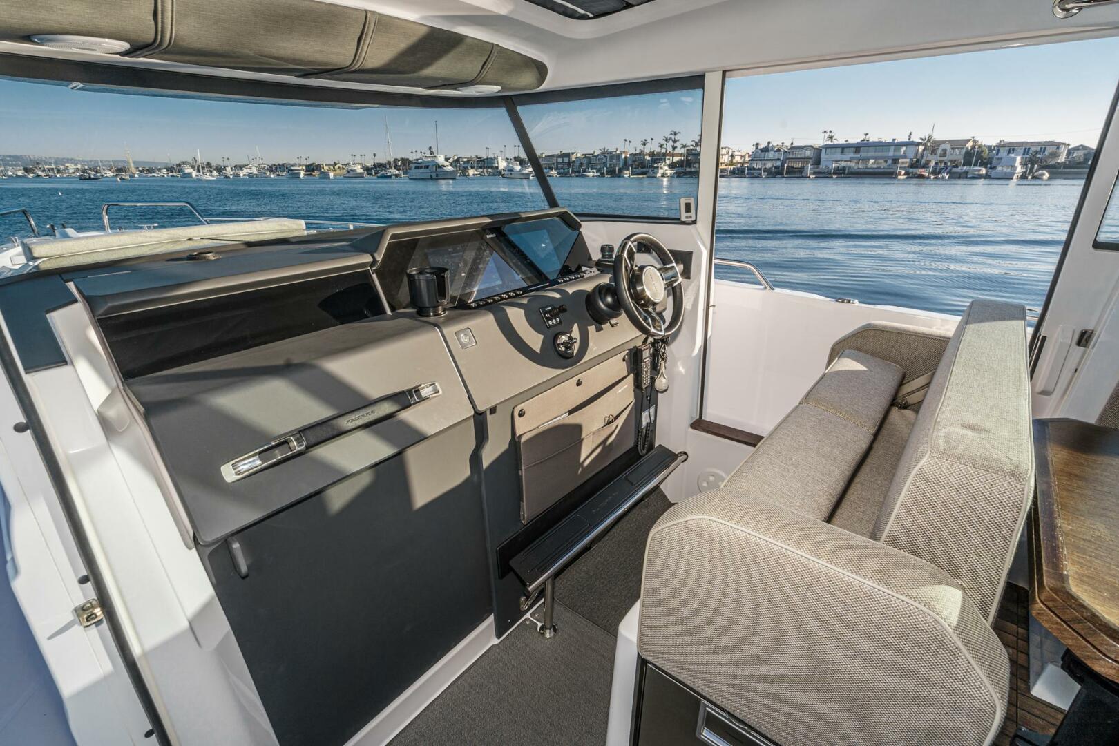 2023 37XC Cross Cabin with Mediterrana interior, removable solar panels, Mercruiser joystick with position hold, aft wet bar, and roof rack. Transferrable engine warranties and flushed after every use.