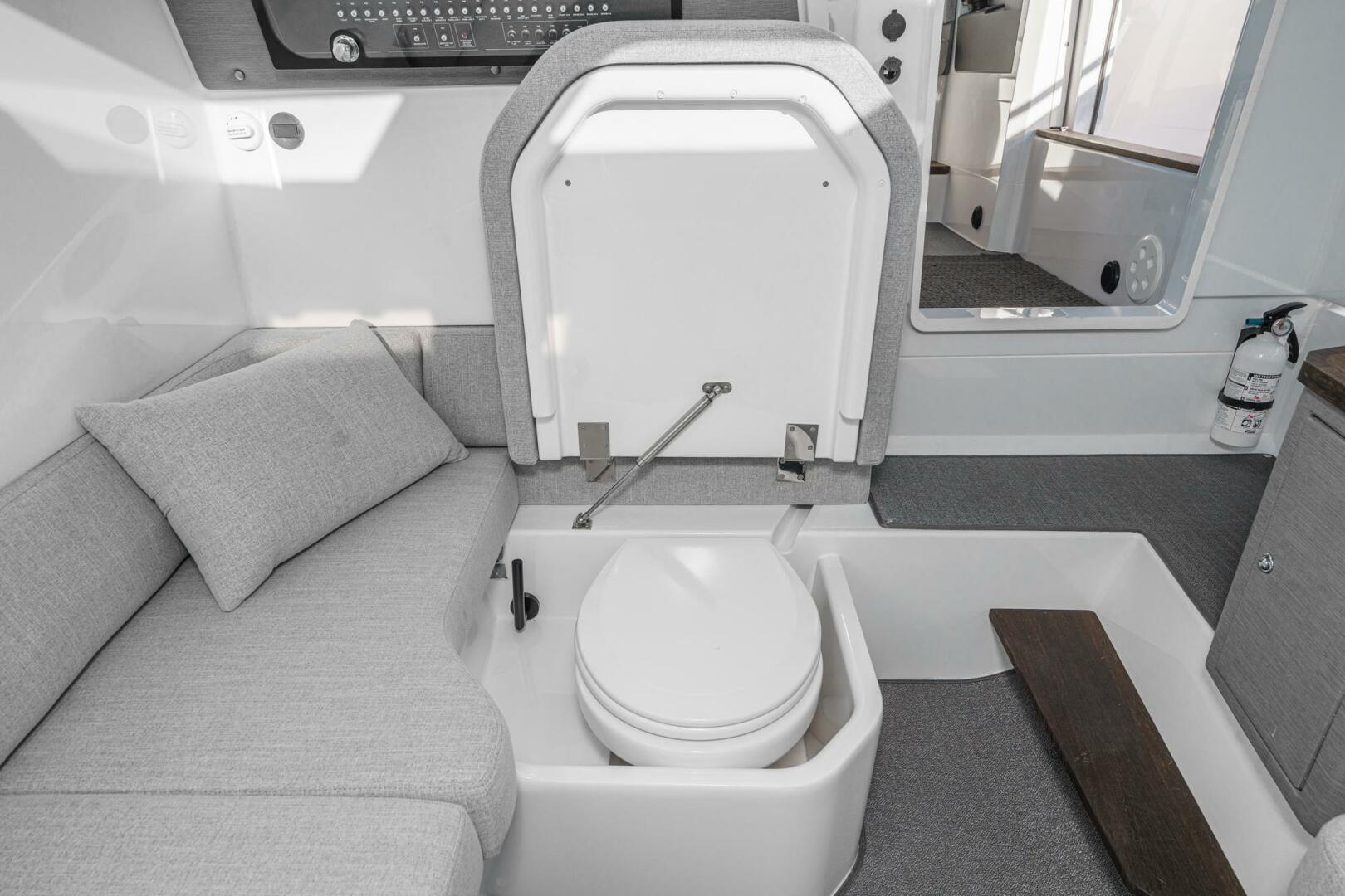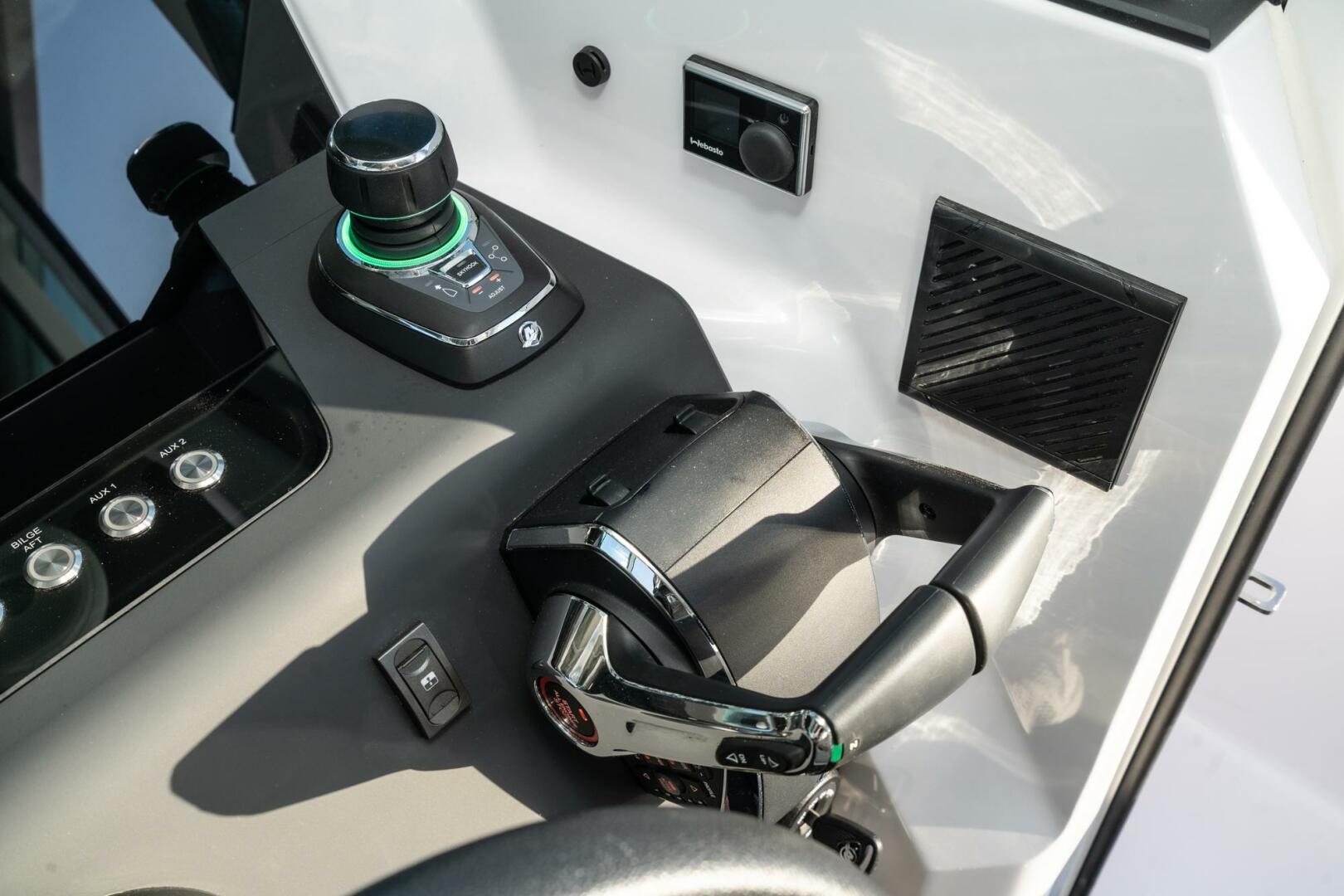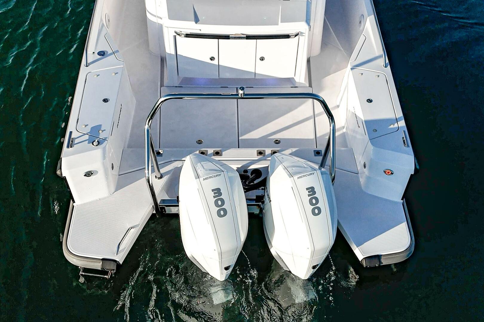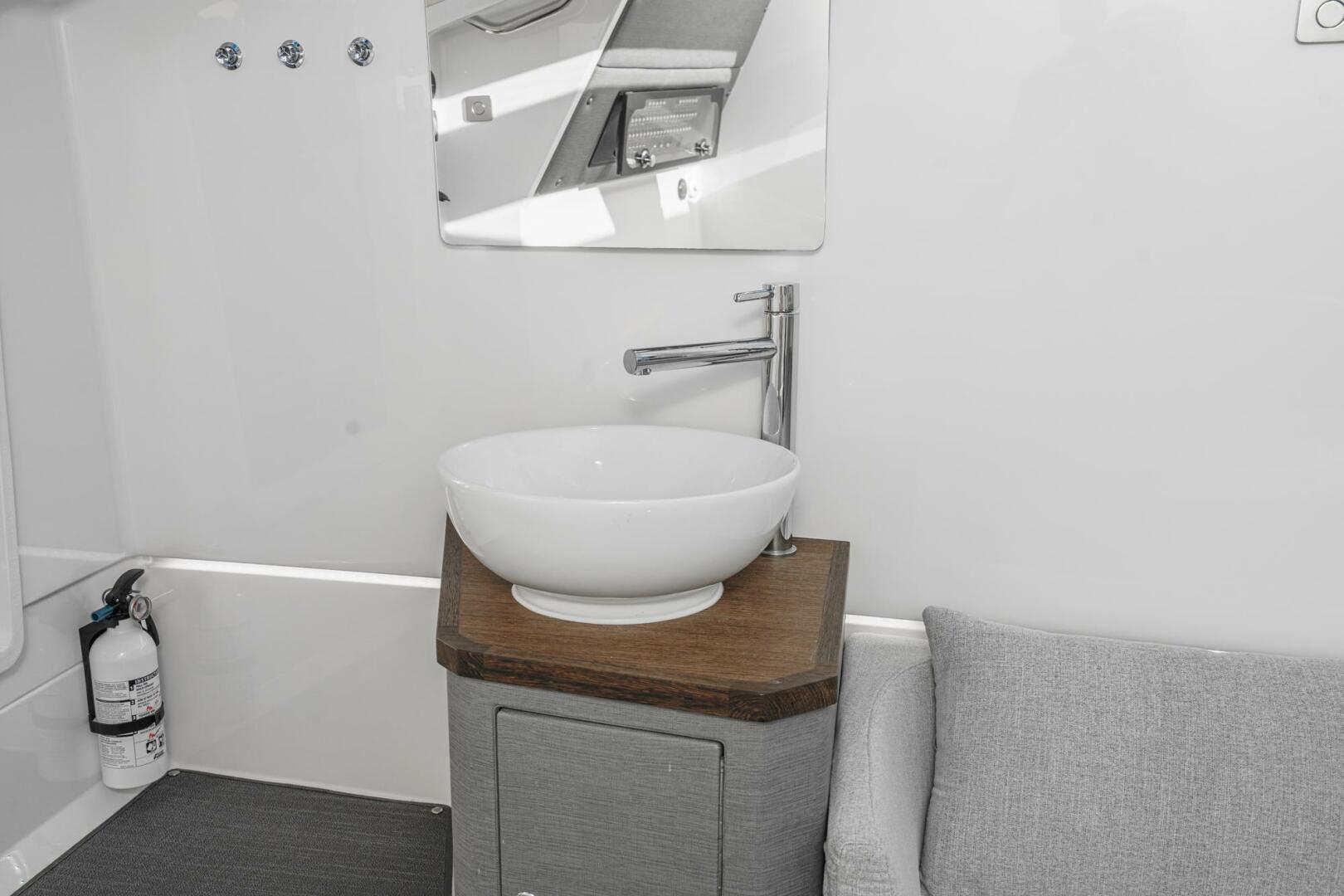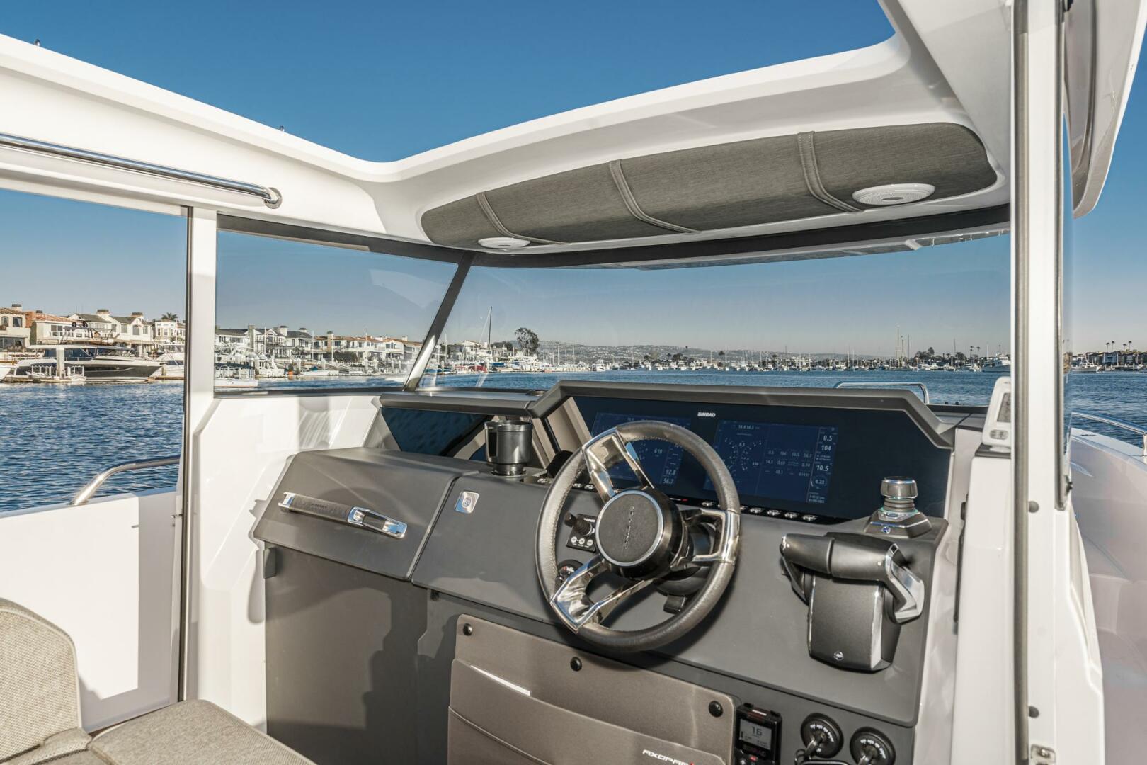 2023 37XC Cross Cabin with Mediterrana interior, removable solar panels, Mercruiser joystick with position hold, aft wet bar, and roof rack. Transferrable engine warranties and flushed after every use.