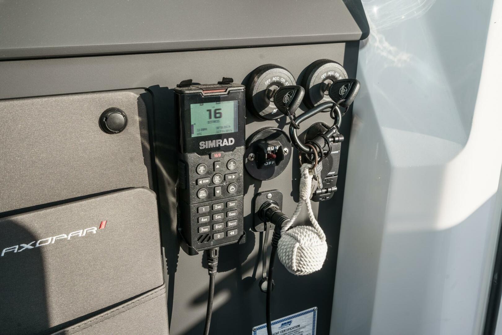 | Notable Upgrades: Dual Simrad displays with radar and VHF. Underwater lights, audio system, searchlight. Extended sun pads and sunshade. Webasto heater and shore power system. Freshwater engine flush system used regularly |