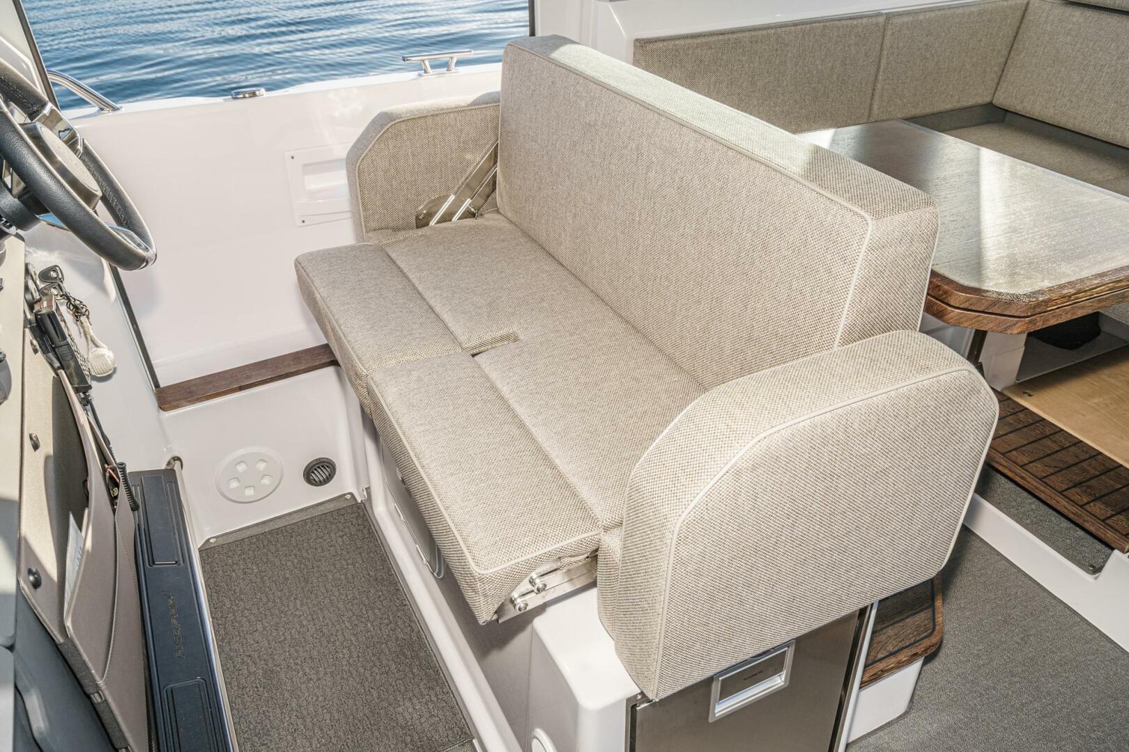 - Adjustable driver's sofa with foldable backrest & flip-up bolsters - making seating fore & aft in the salon