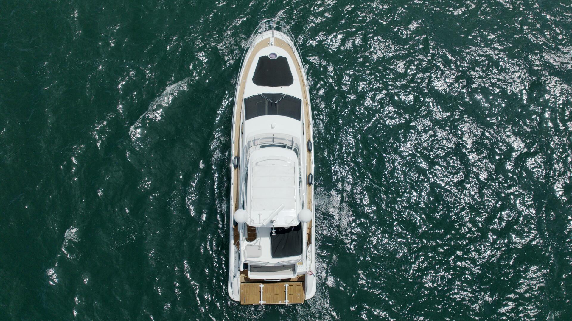 Yacht Controller for remote piloting from anywhere on the yacht. Optional hard top with retractable sunshade on the flybridge.