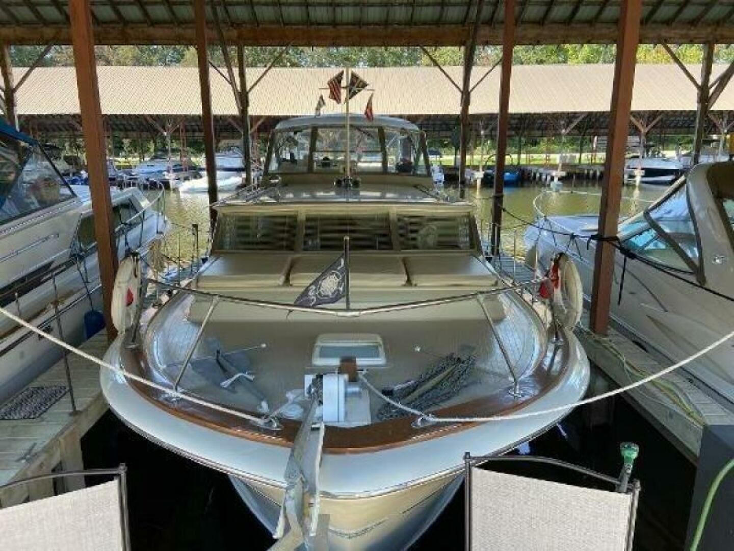 The 42’ Chris- Craft Commander is a beautiful motor yacht built with a solid fiberglass hull and superstructure. MiLady has had 3 owners since new and all have painstakingly maintained her in original running condition for the enjoyment of their respective families while cruising the Great Lakes. Powered by Twin 427 Ford Engines with 300hp each and 7.5kw Kohler generator. Well maintained and stored in a covered slip.
