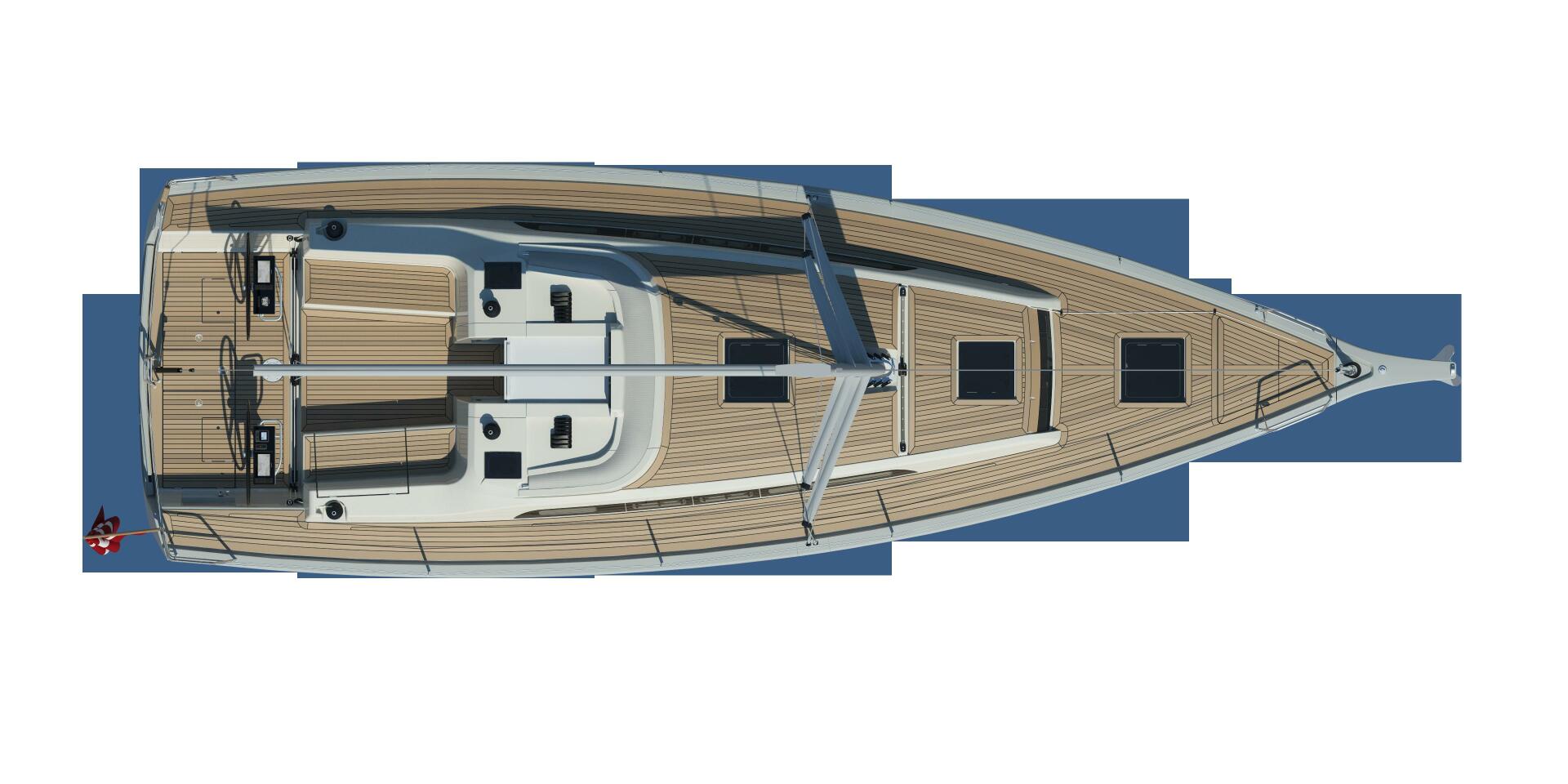 There is an option for coach roof top, longitudinal Genoa tracks and two dedicated Genoa sheet winches on top of the cockpit backrest coamings, enabling the Genoa size to go up to 106% for improved light wind performance.