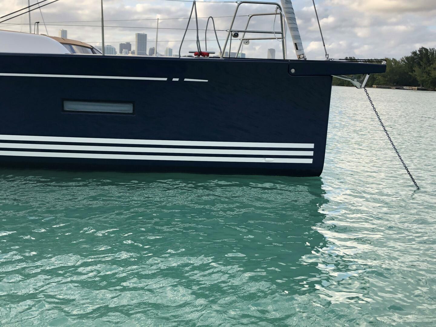 Bolted to the steel grillage, is the keel with iron fin and heavy lead bulb with moderate draft. There is both a shallow and a deep draft option available