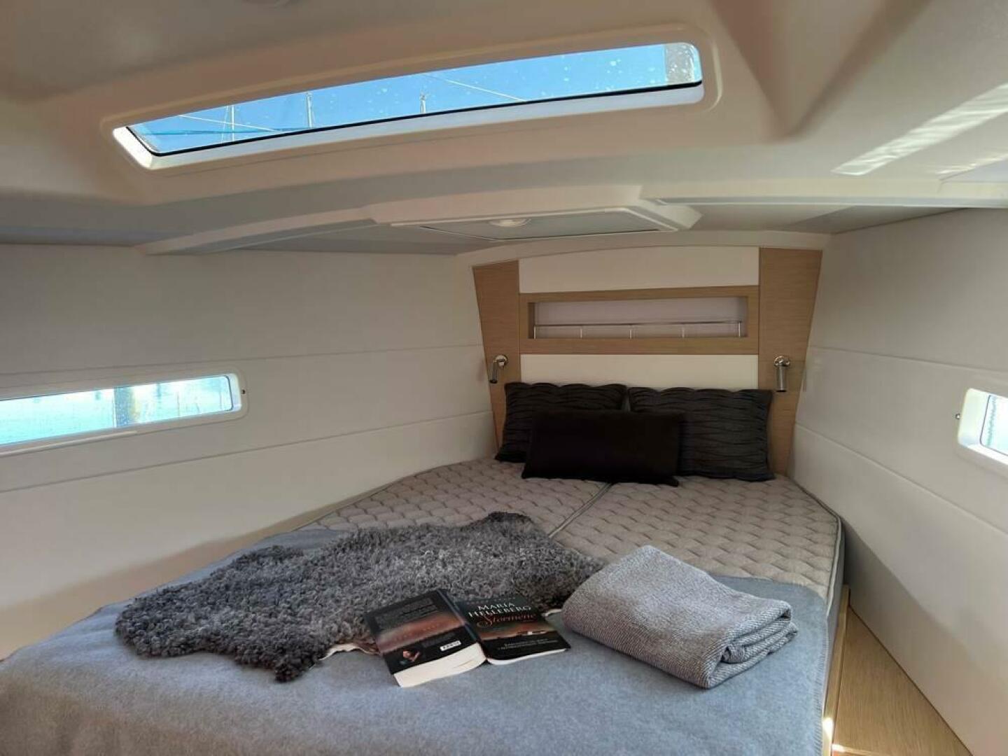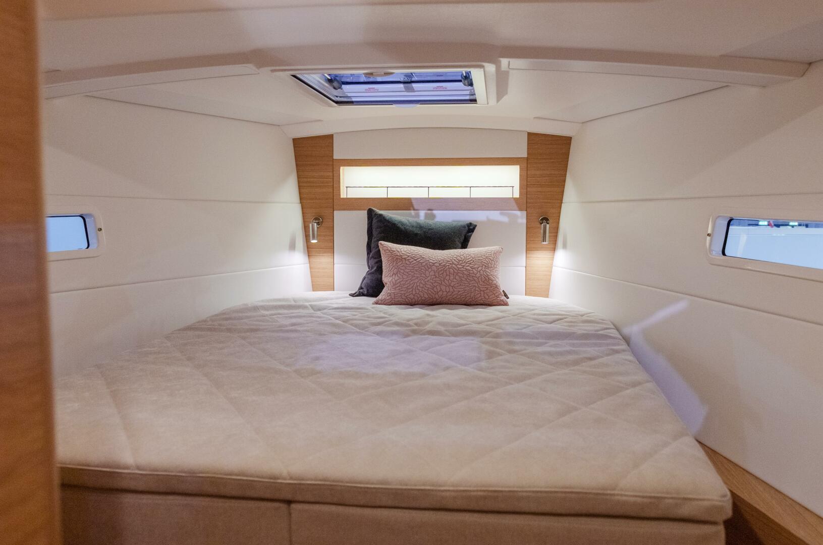 Numerous deck and hull portlights allow for ample light to flood in, gifting the interior with a bright and roomy ambiance.
