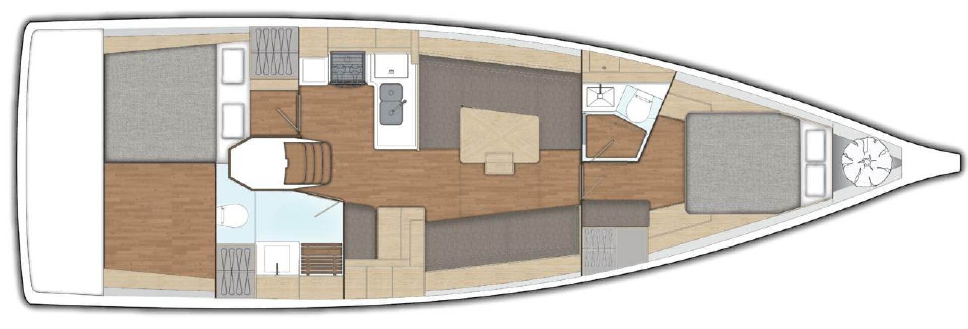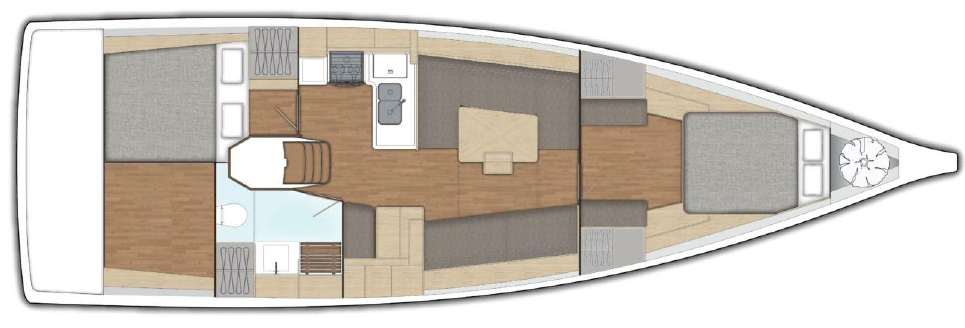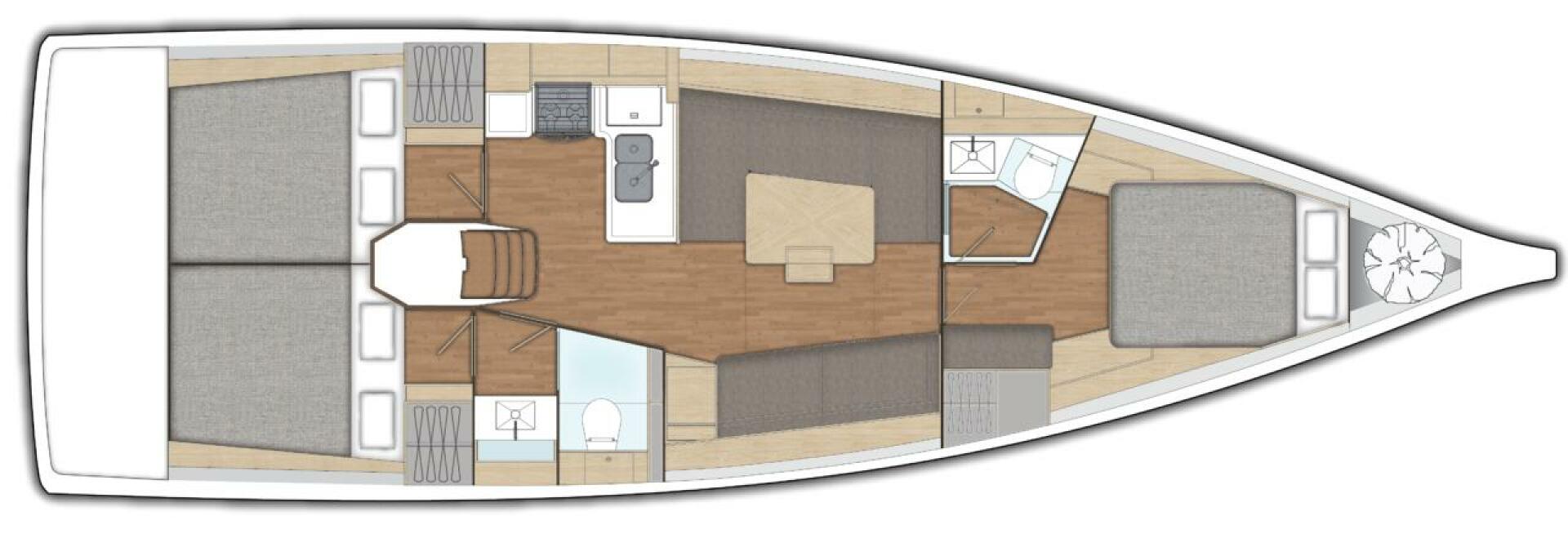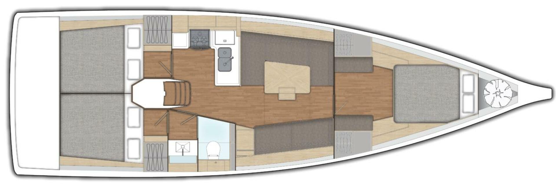 All X-Yachts normal features including encapsulated lead keel, hydraulic backstay adjuster, discontinuous rod rigging and Spectra halyards are standard.