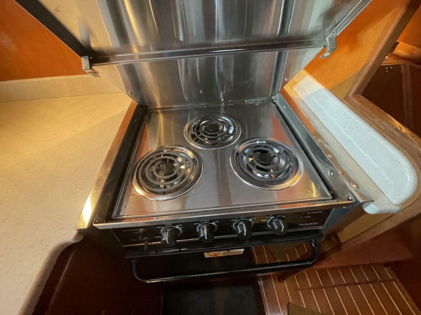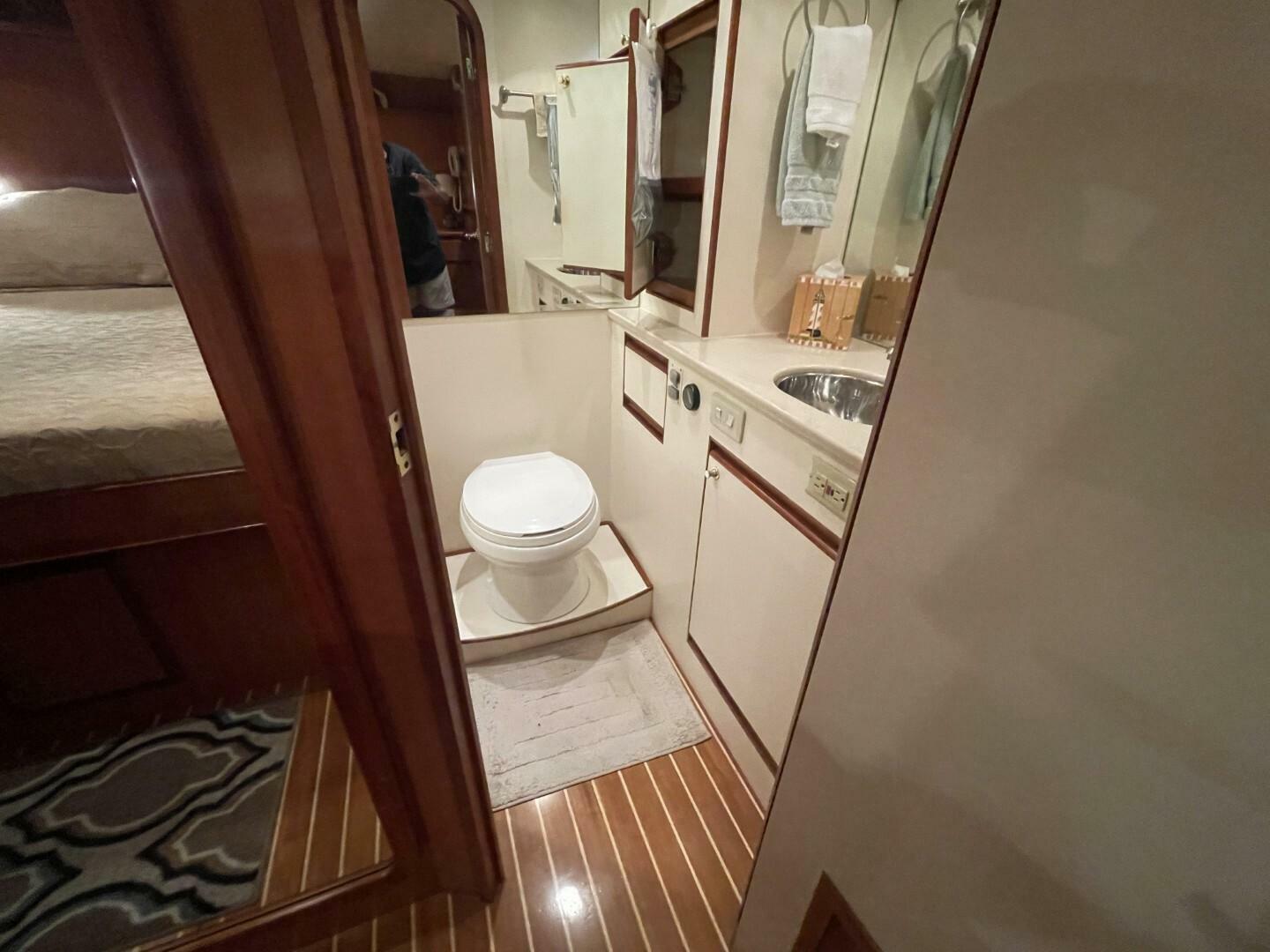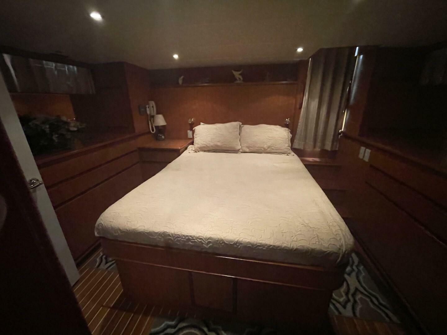 Spacious master stateroom aft offers walk-around queen berth, ample storage, access to cockpit and ensuite head with stall shower.