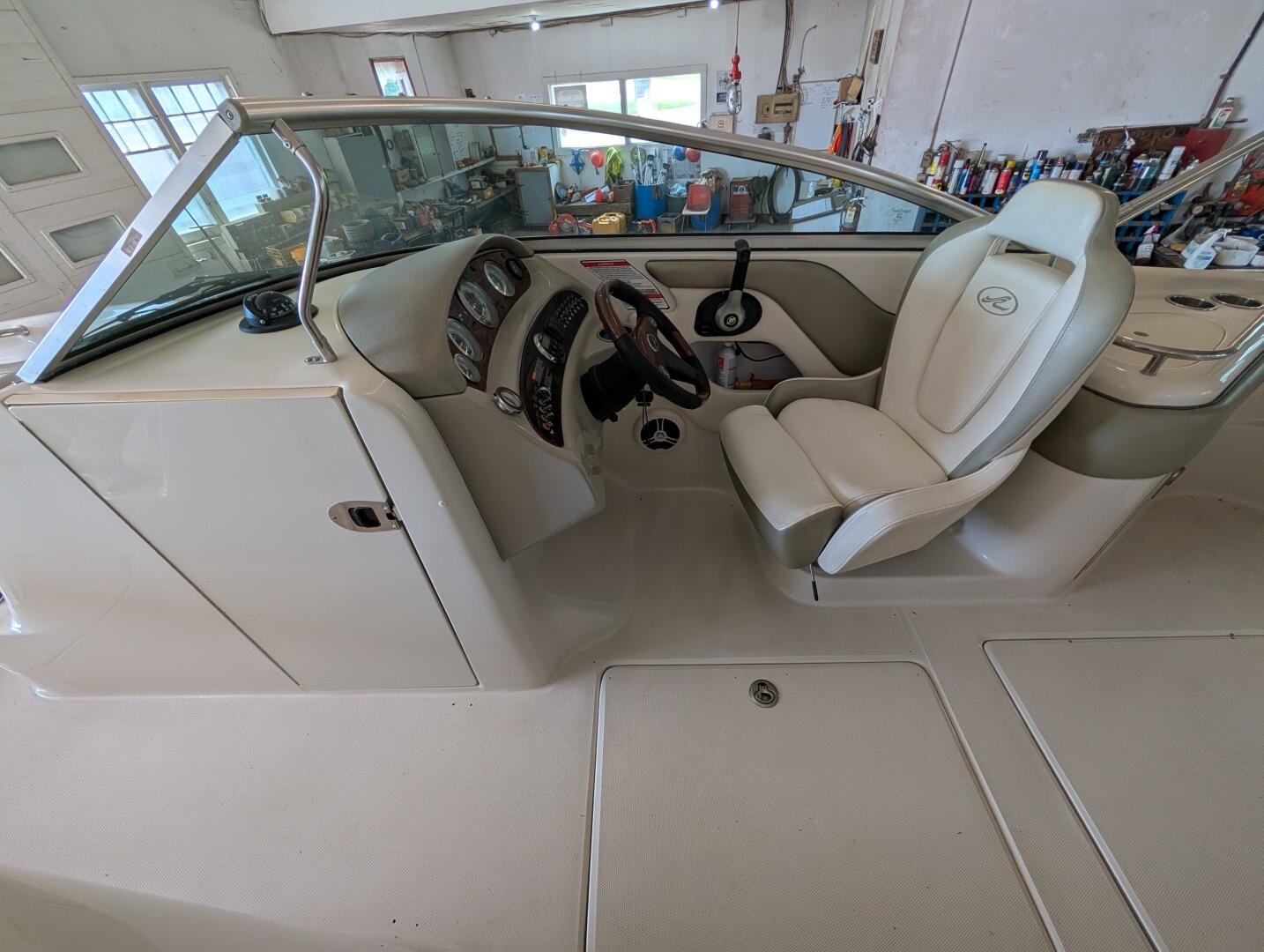 | Notable Upgrades: VERY LOW HOURS – 86.6 ON GAUGE FRESHWATER USE ONLY – NO SALTWATER EXPOSURE PROFESSIONALLY MAINTAINED – TURN-KEY CONDITION BRAVO III DUAL PROP DRIVE – SUPERIOR HANDLING IN-FLOOR LOCKER FOR WAKEBOARDS/SKIS INTEGRATED SWIM PLATFORM W/ BOARDING LADDER BIMINI TOP & COCKPIT COVER – INCLUDED FULL SNAP-IN CARPET (CONDITION TO BE CONFIRMED) STEREO SYSTEM WITH HELM CONTROLS BUILT-IN COOLERS AND STORAGE THROUGHOUT |
