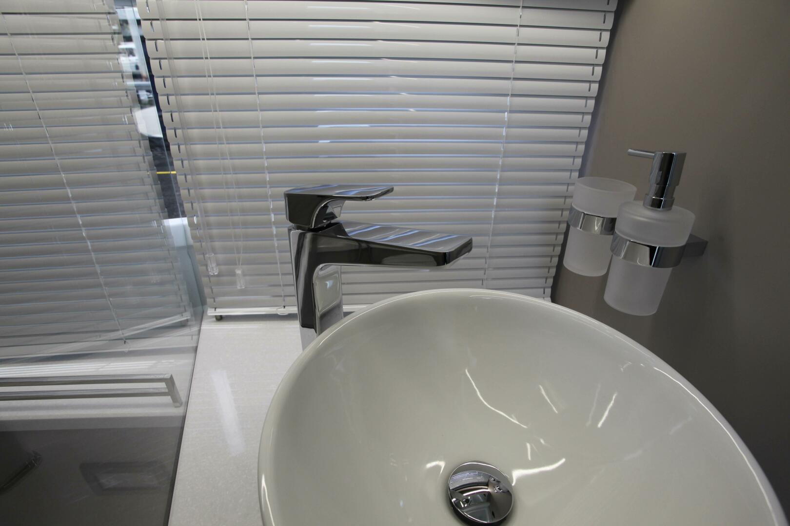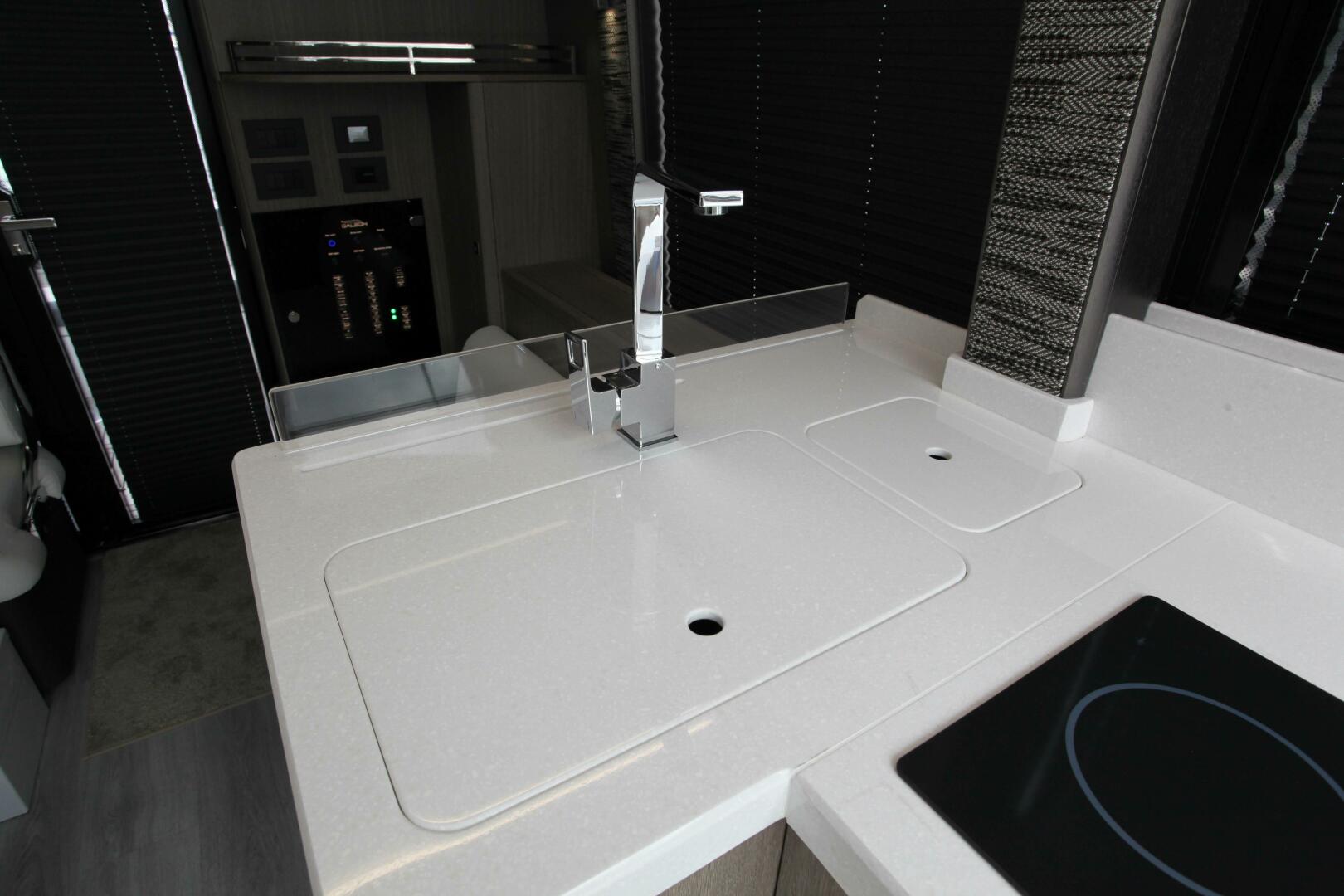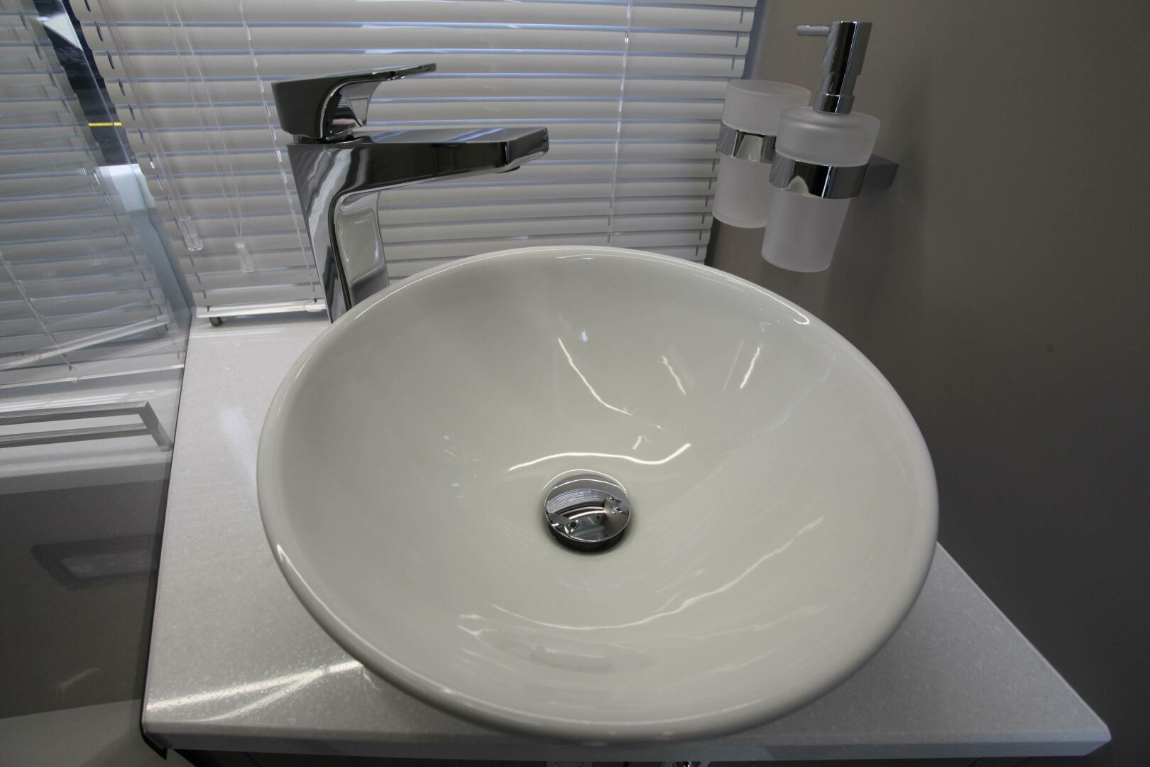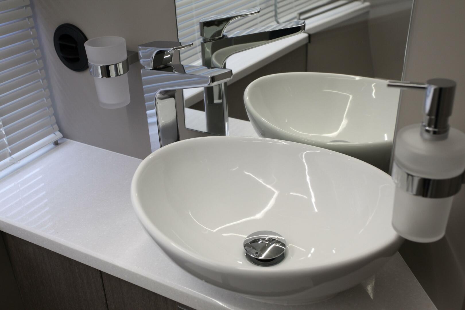 - CORIAN COUNTERTOP WITH CERAMIC BOWL AND CHROME FAUCET