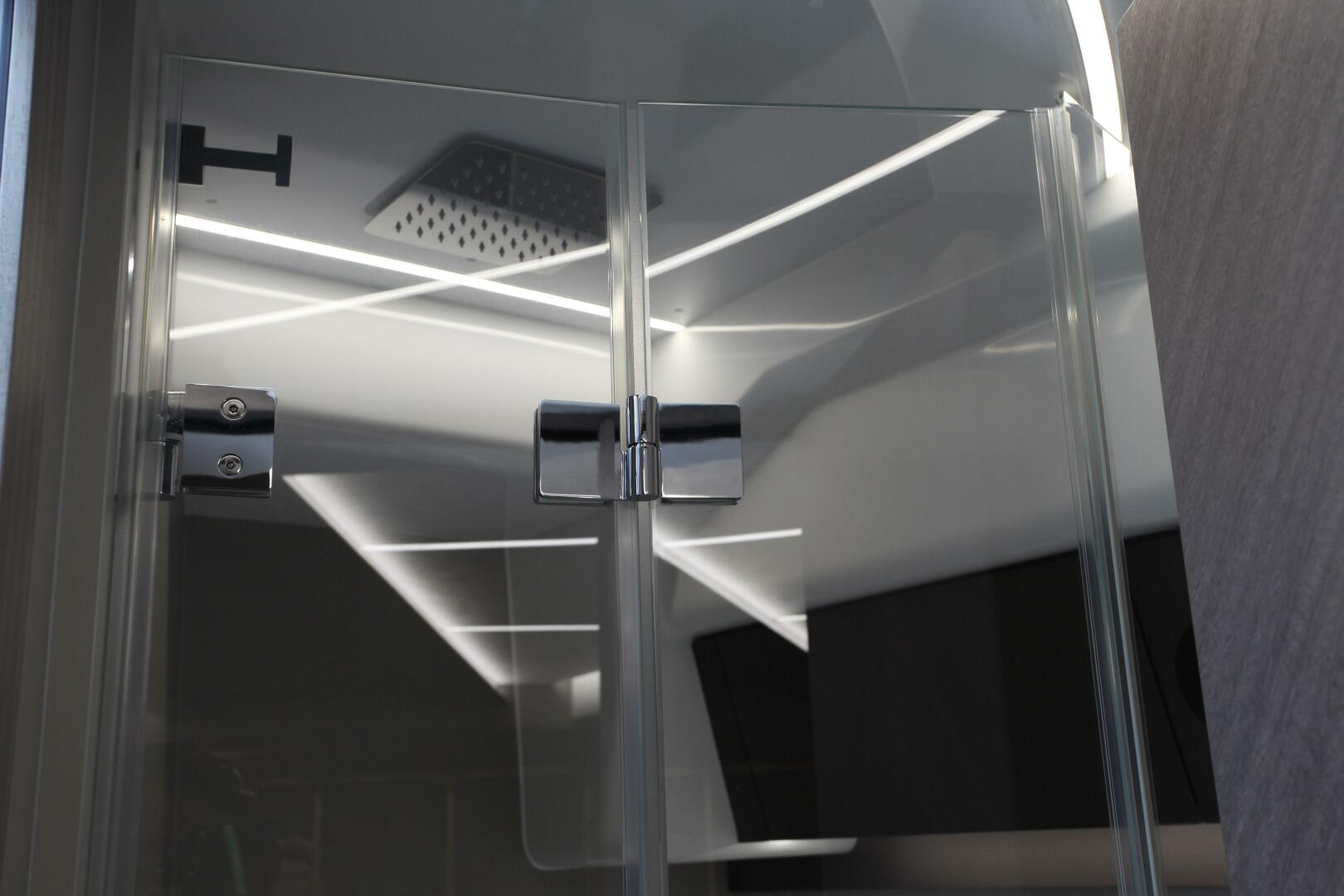 - SHOWER AREA W/HINGED GLASS DOOR