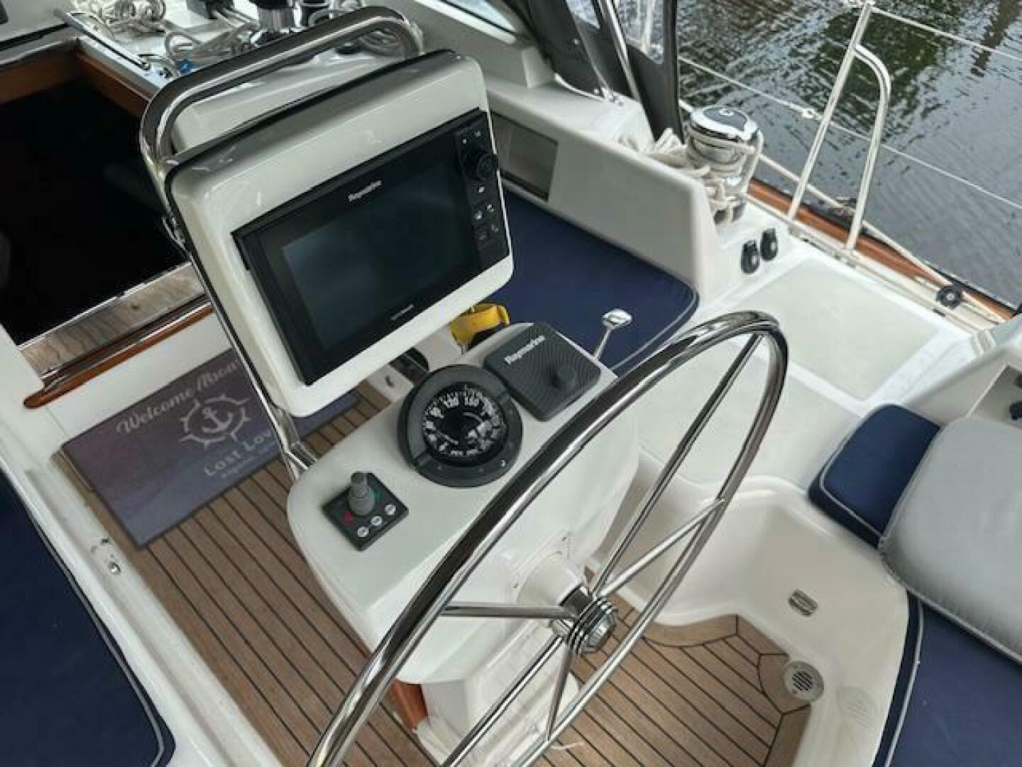 - Raymarine chartplotter, depth, speed, wind autopilot and VHF radio