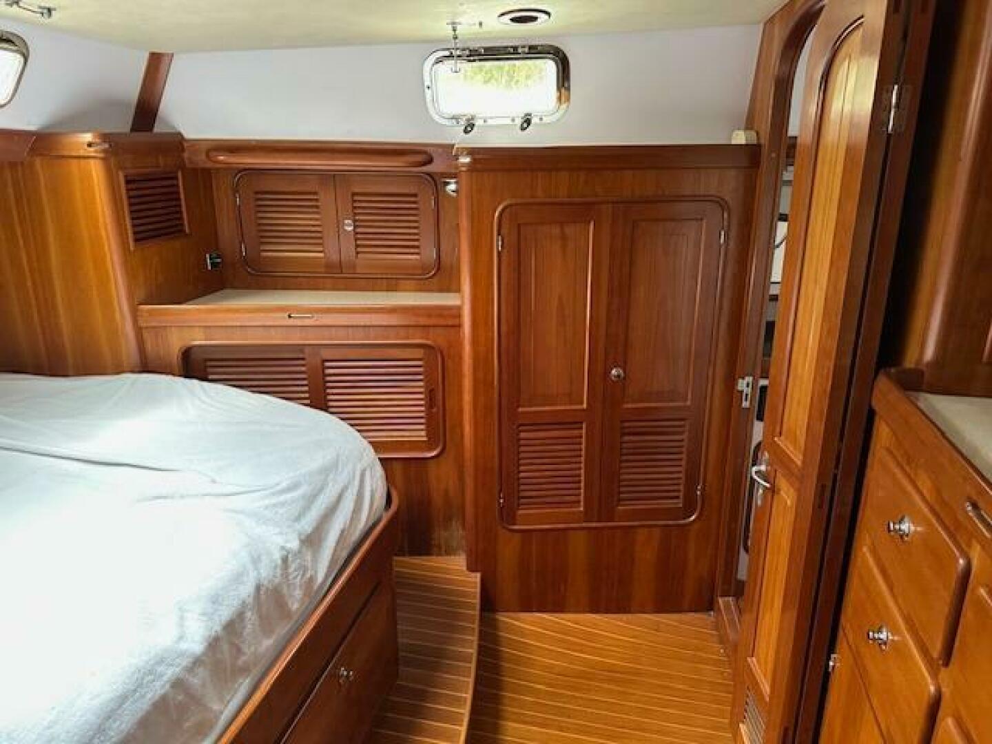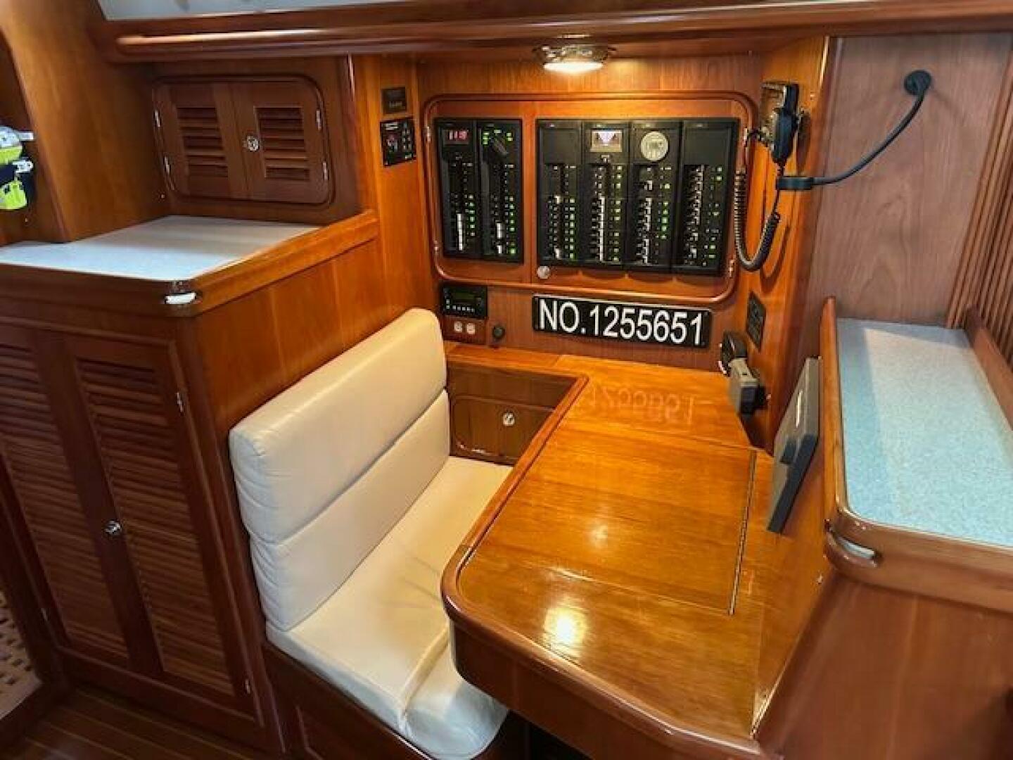 The center cockpit model features two comfortable, full width staterooms with ensuite heads. The entire interior is crafted with high-quality cherry joinery. The main salon has a light and airy appeal in line with the desire of many modern sailors. The starboard walk through galley is easily accessible and is equipped with all the modern conveniences one would expect on a luxury yacht. The navigation station boasts state-of-the-art electronics and an electrical panel. The low hours 110 hp Yanmar diesel engine can be easily accessed by three inspection panels and a separate door.