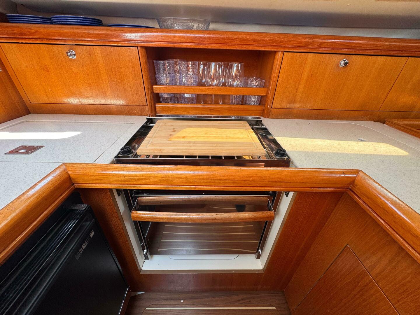 - Functional Galley – L-shaped with stove/oven, Fridge, Freezer, and deep sink