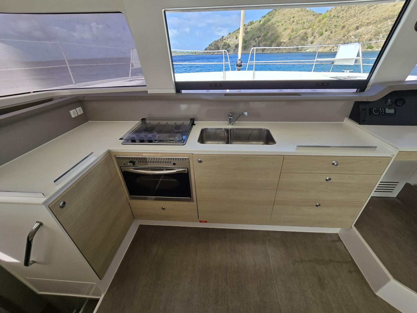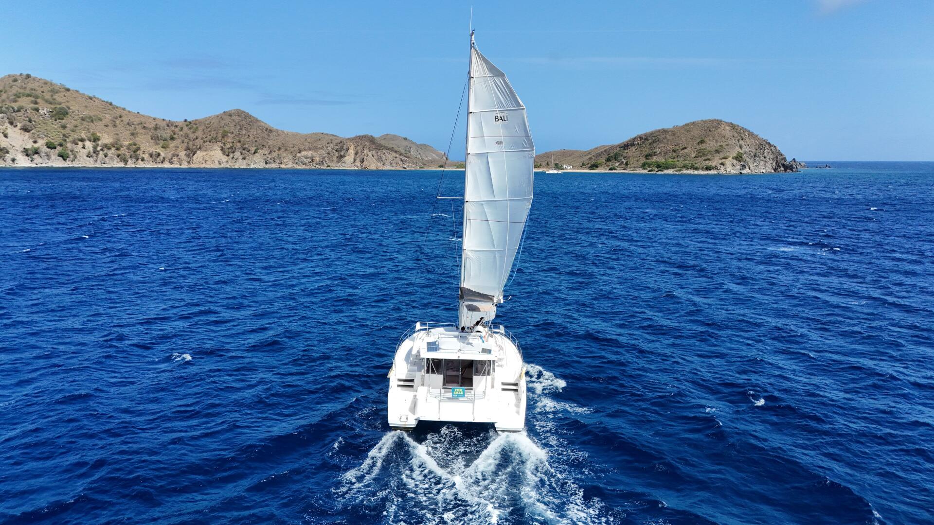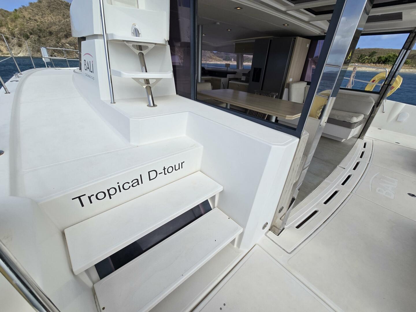 I have personally sailed this boat from the BVI to Grenada a few years ago, and she kept us safe and dry the entire way. The flybridge offers exceptional visibility, and the BALI’s unique solid forward deck kept water off the bow even in choppy conditions.