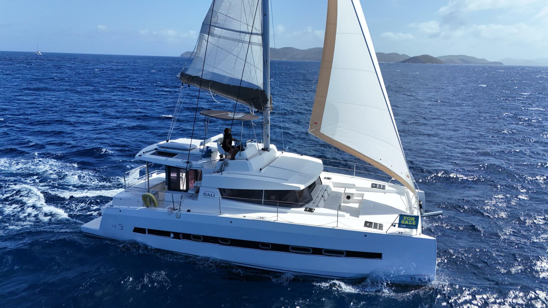 New to market! 2018 BALI 4.3 flybridge catamaran with 2025 upgrades: new running rigging, Samsung fridge, and cushions. Fully equipped with A/C, watermaker, Onan 11kw Generator. Hurricane storage secured at Virgin Gorda, BVI.