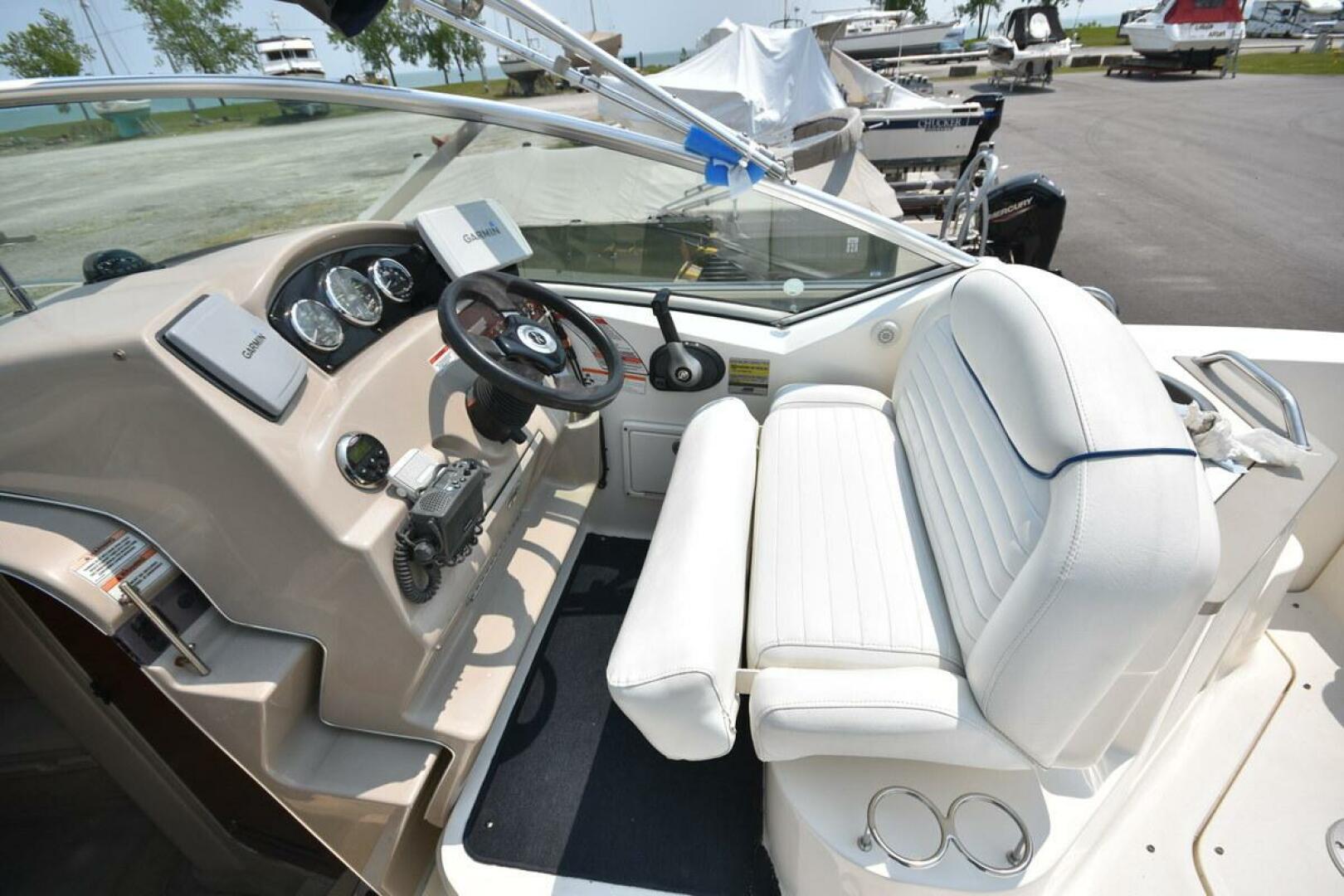 The 240 Sundancer was created to be an excellent entry level cruiser for a small family. The boat offers generous spaces above and below giving you space to move about. She is quick enough to get you to your destination without great expense. The vessel is ready for its next adventure. Why not? Come take a look.