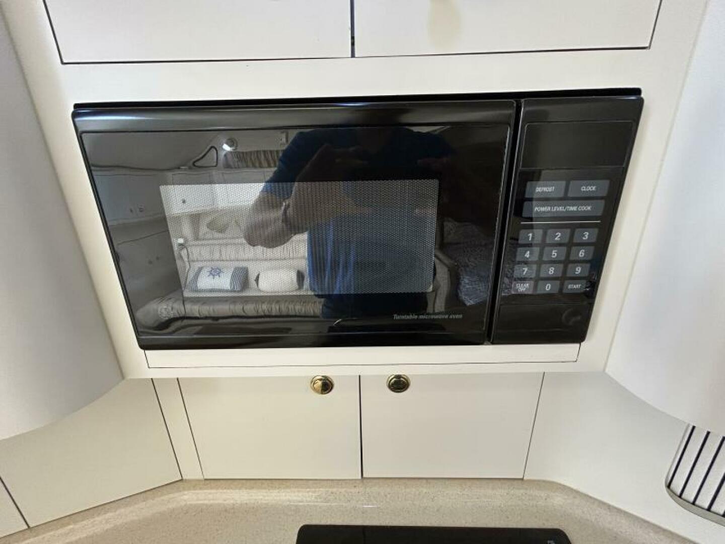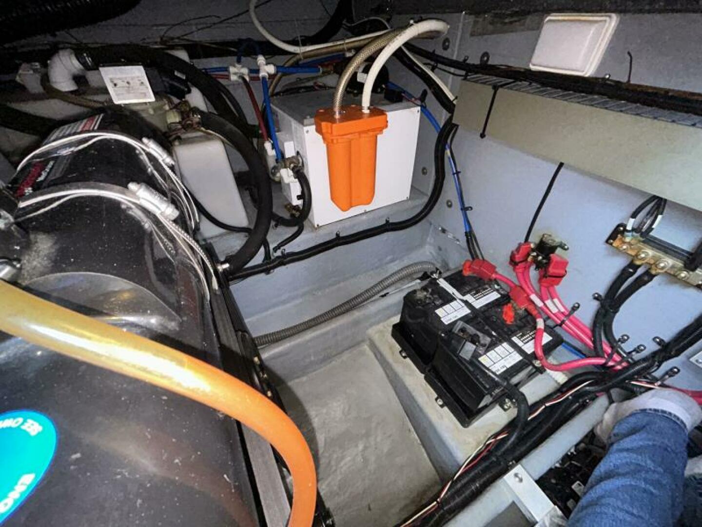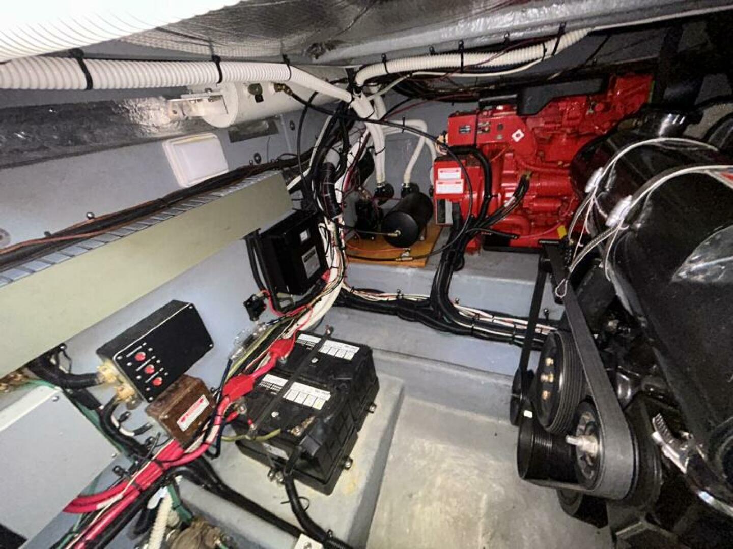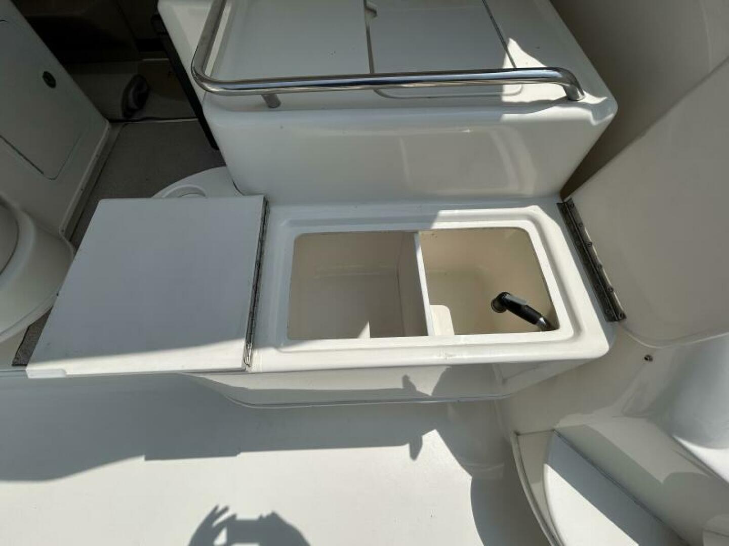 The large cockpit is ideal for entertaining or sport fishing. The helm area includes a double captain’s seat, companion seating, and clear sight lines for easy handling. This boat offers a deep-V fiberglass hull for smooth handling in open water, wide beam provides exceptional deck and cabin space, Generator, shore power, and marine air for full off-grid comfort, built on the same robust platform as the Sea Ray 340, with added fishability.