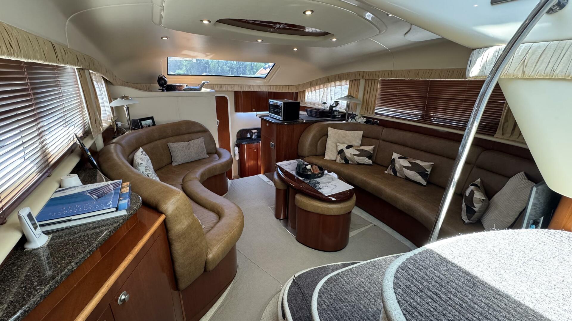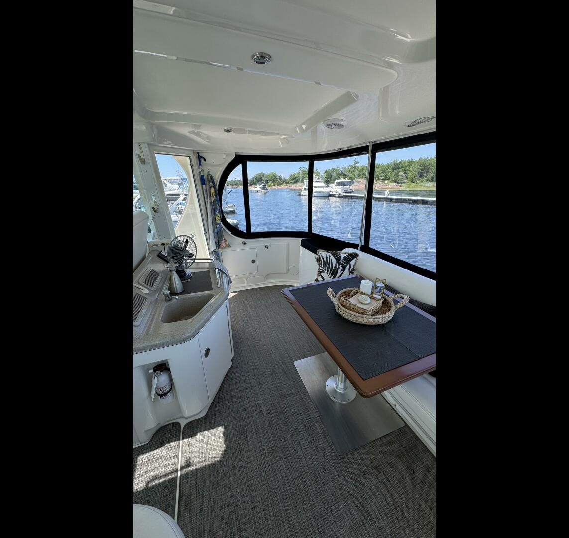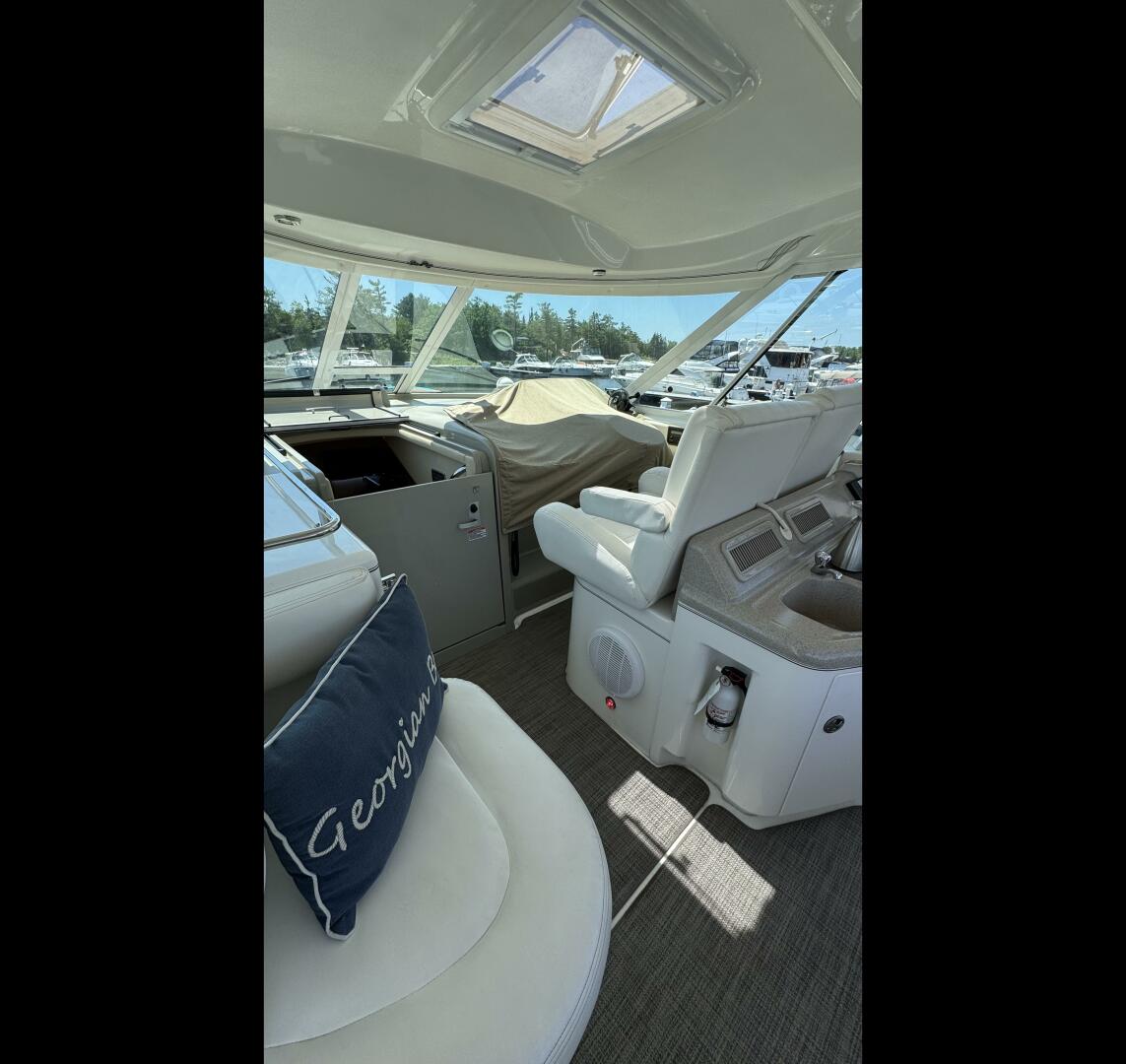 With twin 370 hp MerCruiser 8.1S engines (only 530 hours), this vessel delivers confident performance with direct drives, electronic fuel injection, and a bow thruster for easy handling. The hydraulic steering and Bennett trim tabs add to the effortless cruising experience.