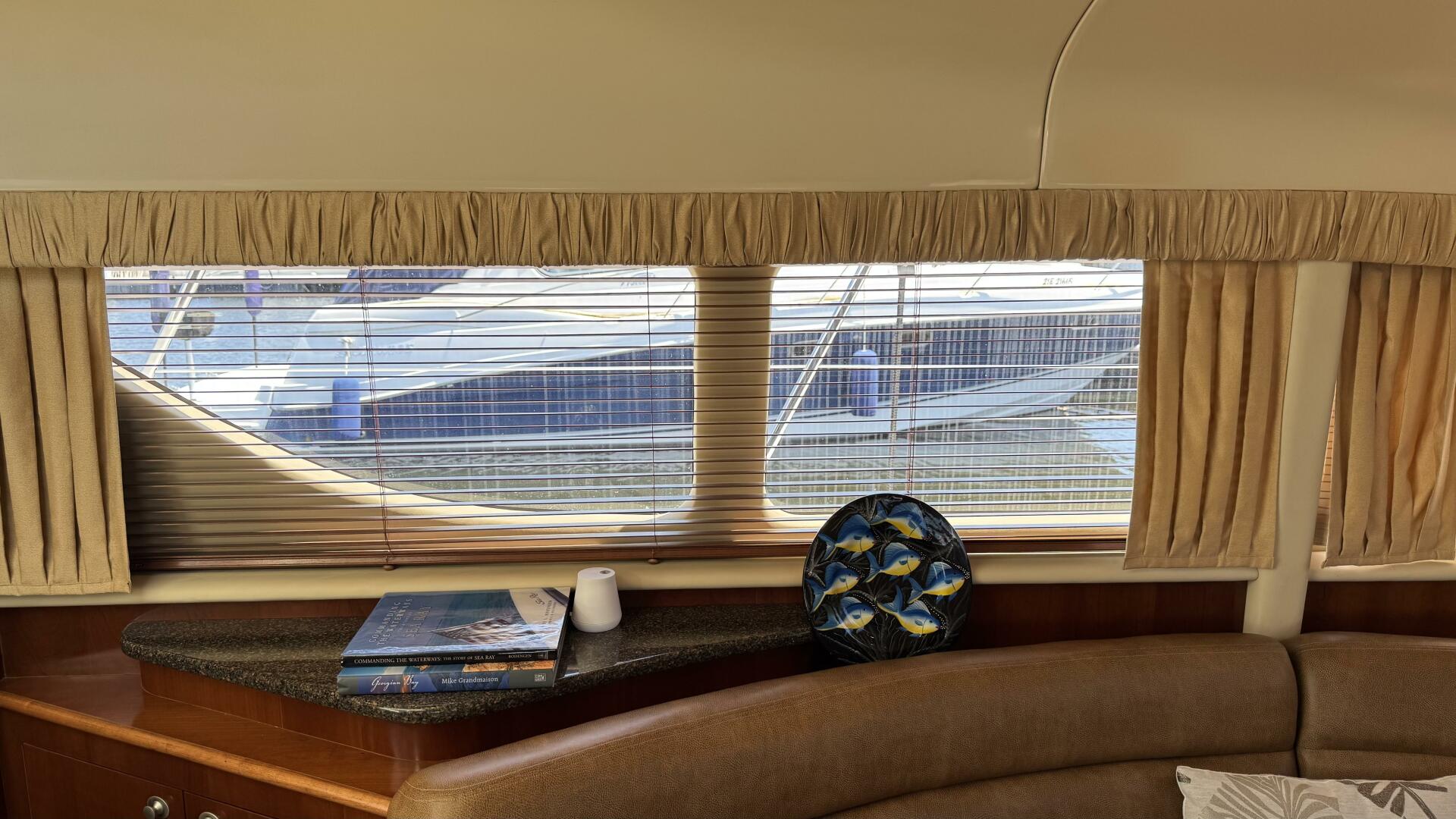 Onboard power is managed by a Kohler 7.3kW generator with just 99 hours, a Victron 3000W inverter/charger, 400W of solar panels, and an upgraded battery bank featuring lithium house batteries. Comfort is ensured year-round with four reverse-cycle air/heat units and cockpit AC.