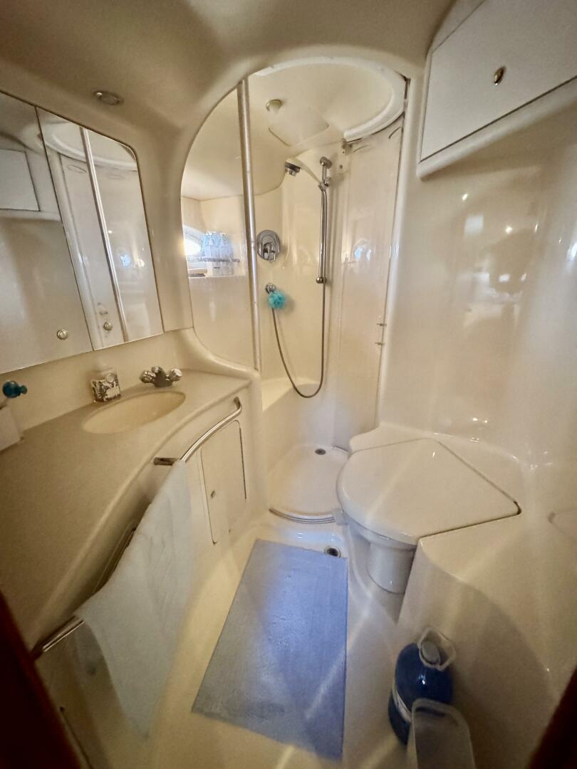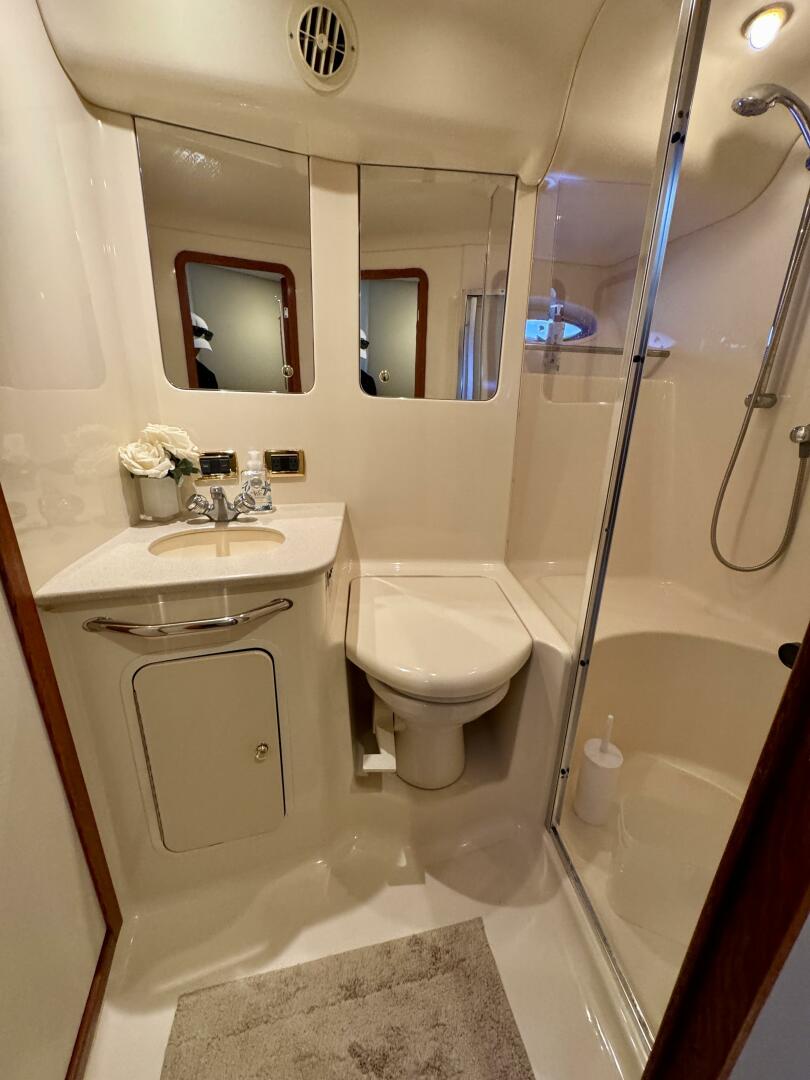 - Three staterooms, two with their own ensuite head, shower, with the third sharing with the VIP stateroom