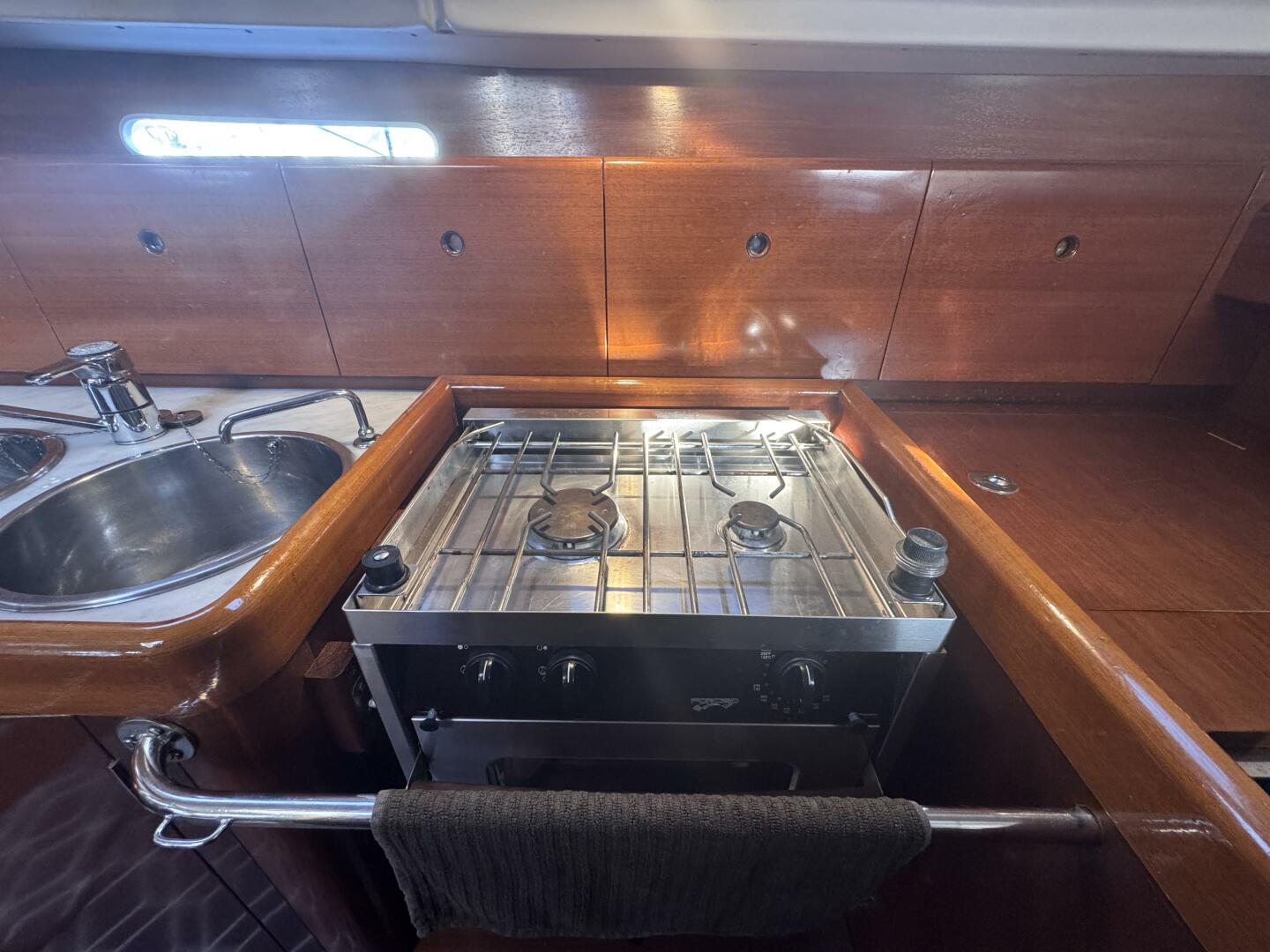 The hull is fast and responsive under sail, yet remarkably stable in a seaway. The rig is powerful but manageable, and the layout on deck is designed for efficiency whether sailing short-handed or with a full crew. Below, you'll find a bright and spacious interior with quality finishes, excellent storage, and a layout that works well at sea or at anchor.