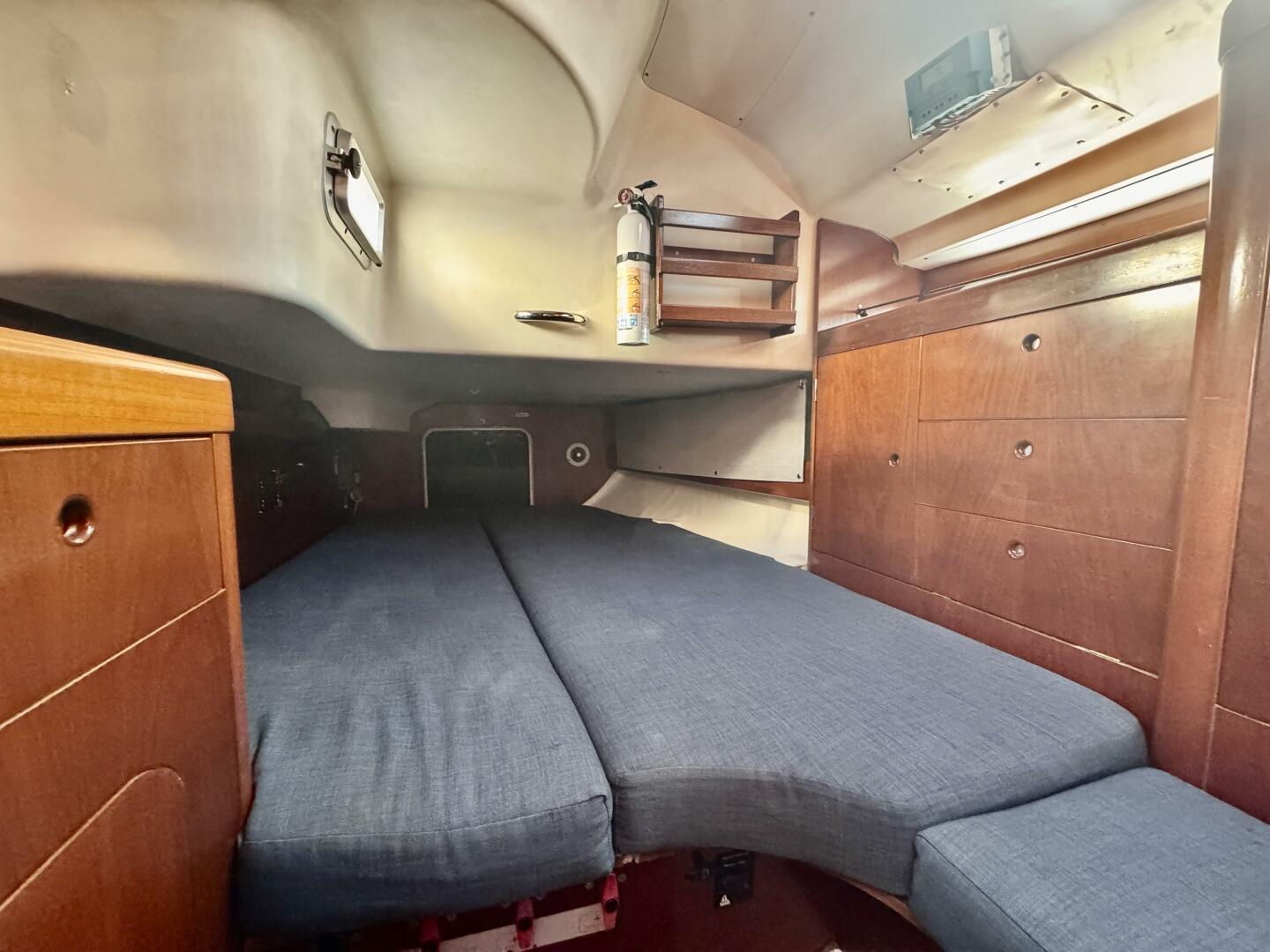 Sail locker forward with 19" X 20 " hatch in bulkhead for 2nd inside access