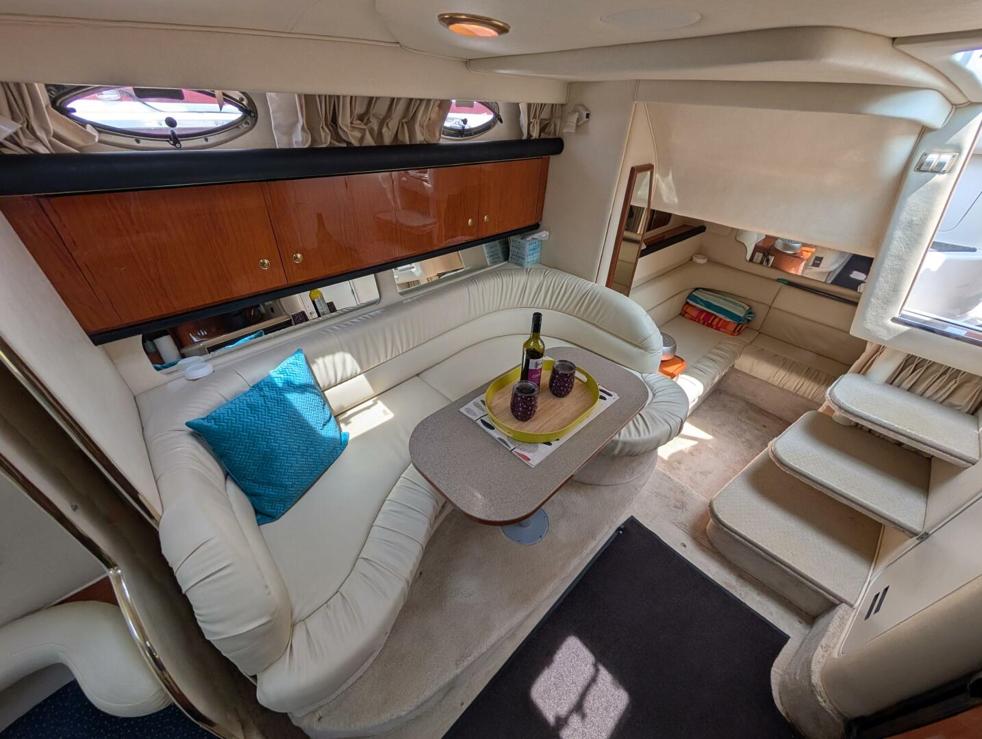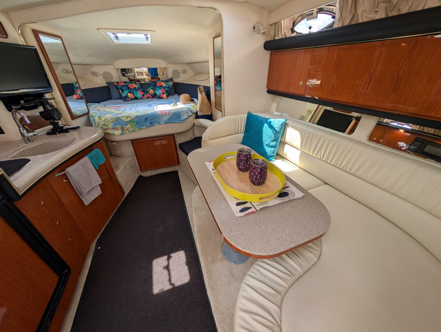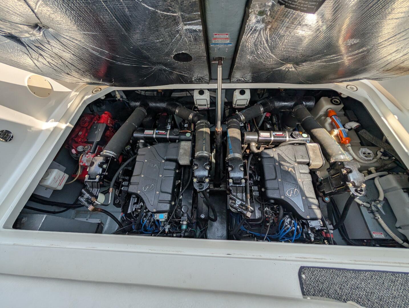 | Notable Upgrades: UPGRADED STEREO W/ HELM REMOTE PROFESSIONALLY DOCUMENTED SERVICE HISTORY NEW CANVAS AND ISINGLASS IMMACULATE INTERIOR AND CABIN UPHOLSTERY DUAL 30A SHORE POWER WITH CORDS FRESHWATER-ONLY HISTORY GENERATOR AND HVAC INSTALLED |