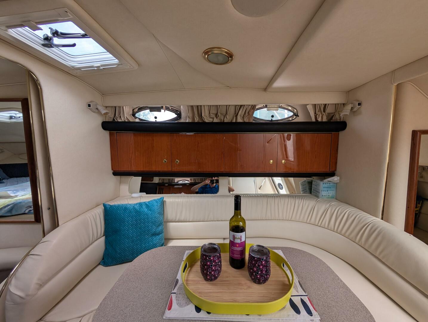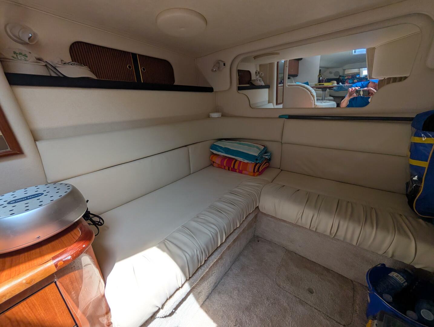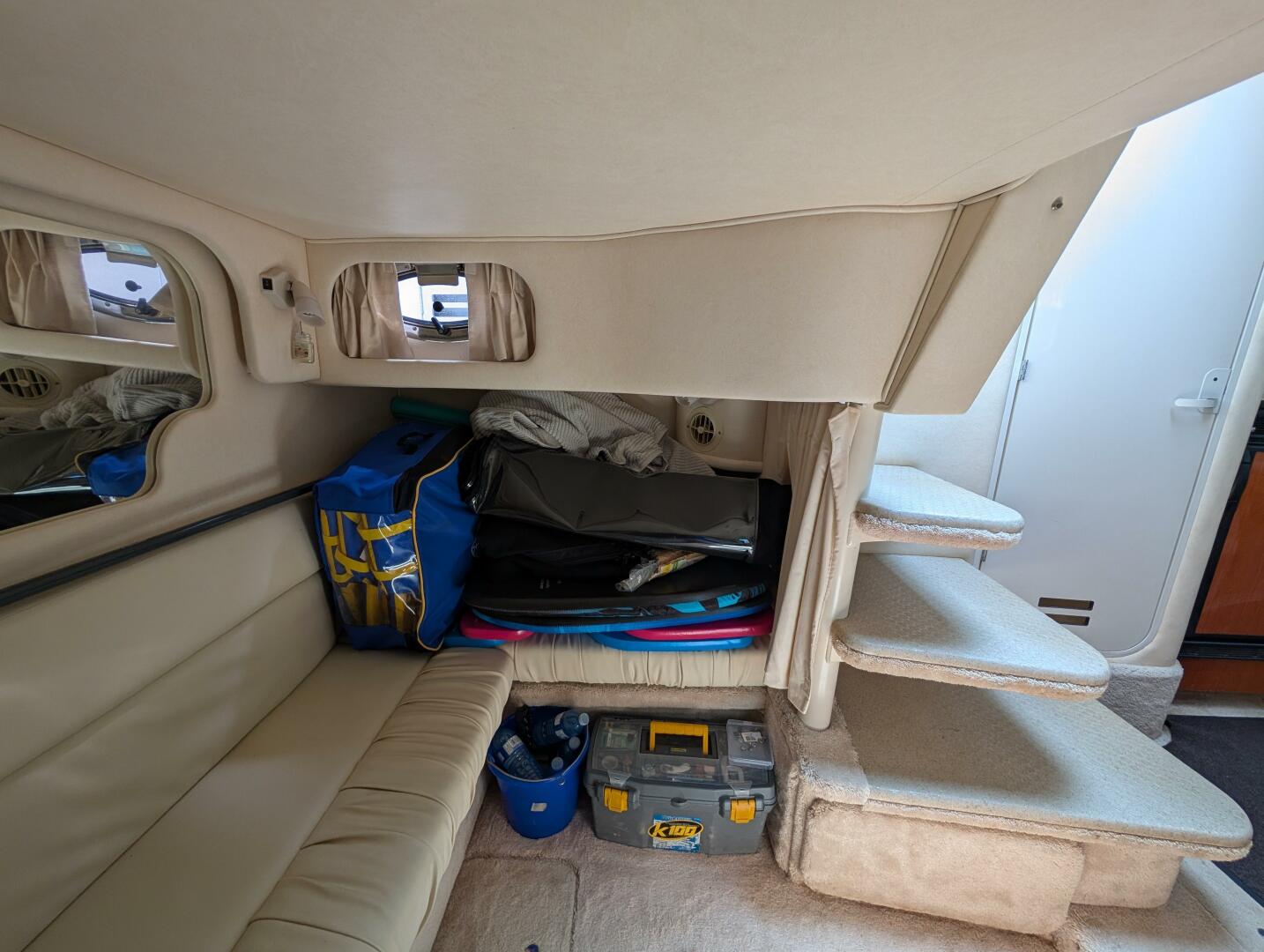 | Notable Upgrades: UPGRADED STEREO W/ HELM REMOTE PROFESSIONALLY DOCUMENTED SERVICE HISTORY NEW CANVAS AND ISINGLASS IMMACULATE INTERIOR AND CABIN UPHOLSTERY DUAL 30A SHORE POWER WITH CORDS FRESHWATER-ONLY HISTORY GENERATOR AND HVAC INSTALLED |