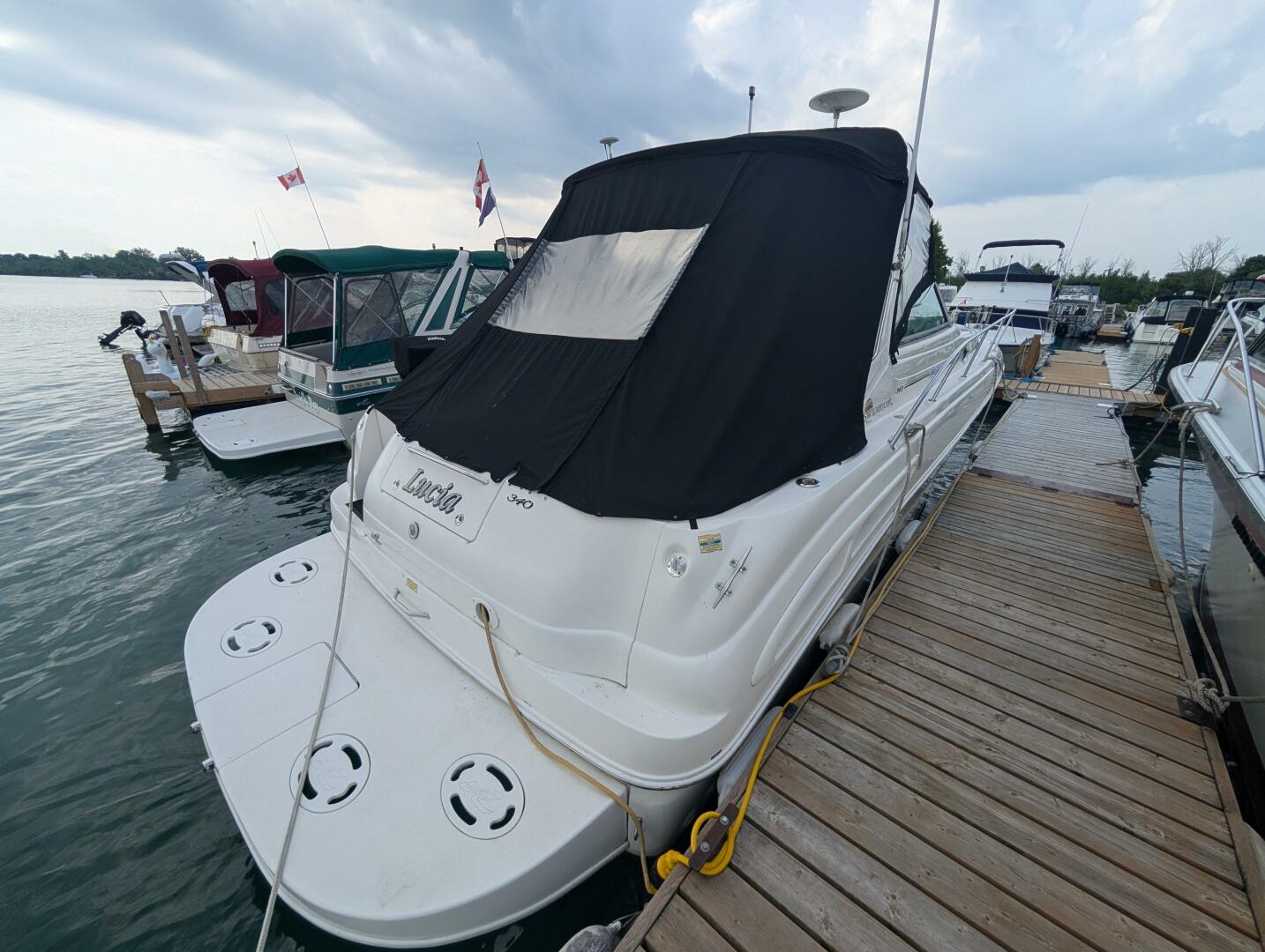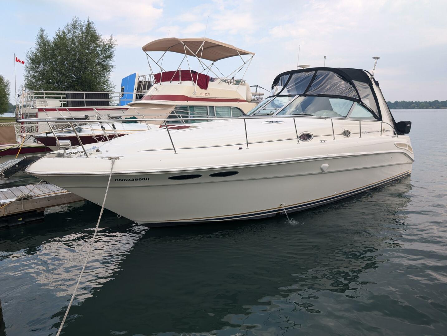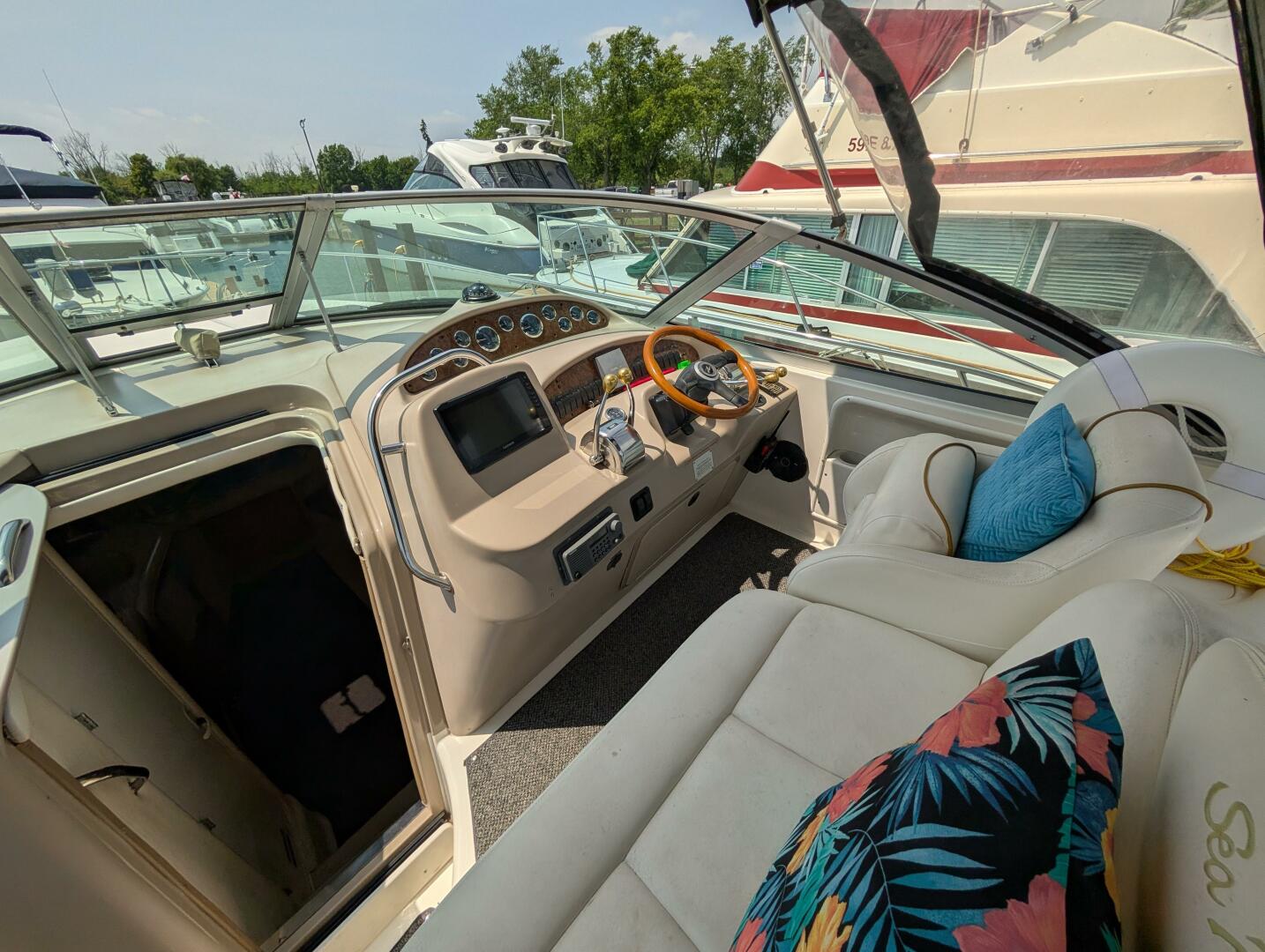 2000 SEA RAY 340 SUNDANCER – TWIN 7.4L MERCRUISER V-DRIVES – GENERATOR – AIR/HEAT – UPGRADED STEREO – VACUFLUSH HEAD – NEW CANVAS AND ISINGLASS – FRESHWATER ONLY – PROFESSIONALLY MAINTAINED – TURN-KEY READY – SLEEPS 5–6 – READY FOR SUMMER CRUISING
