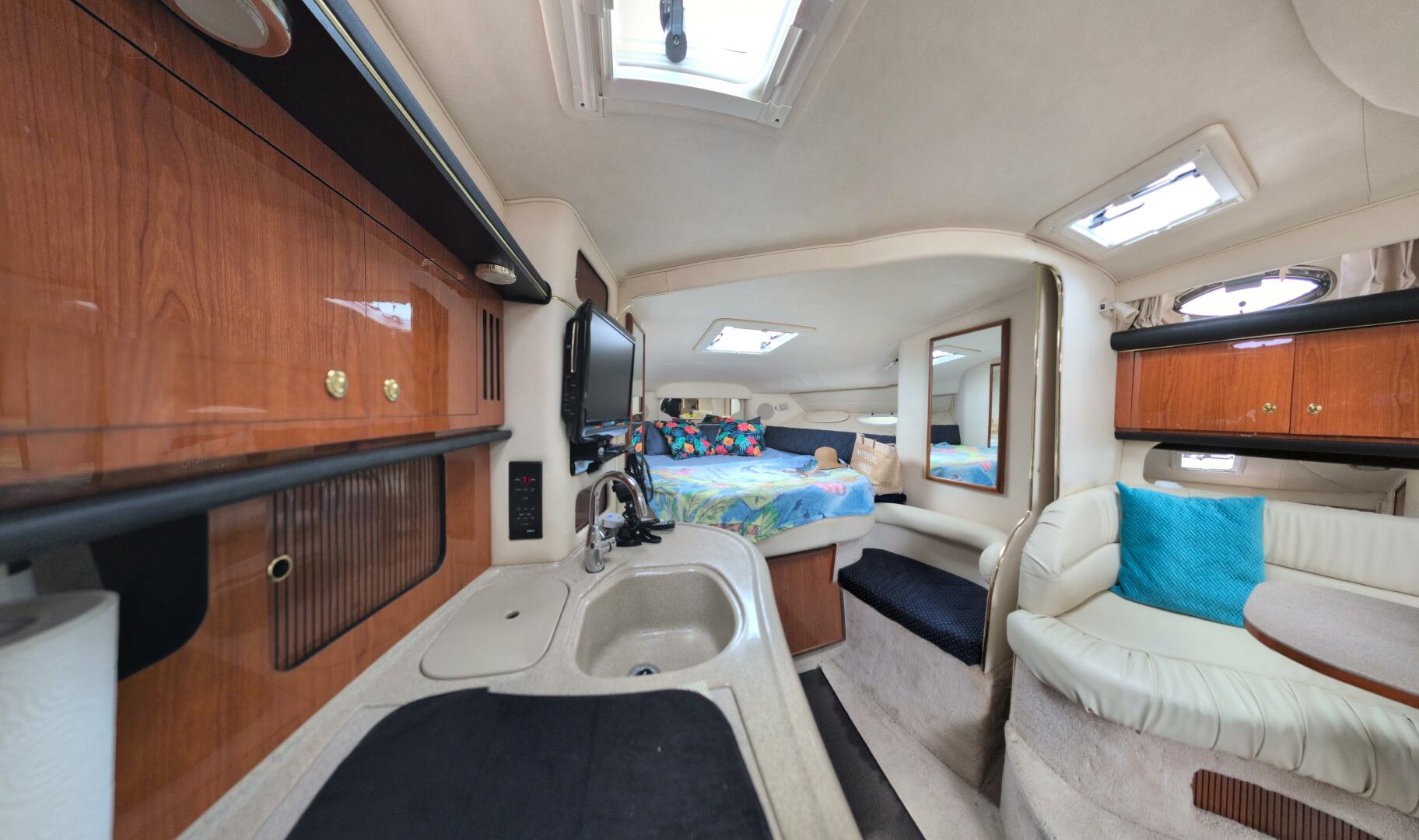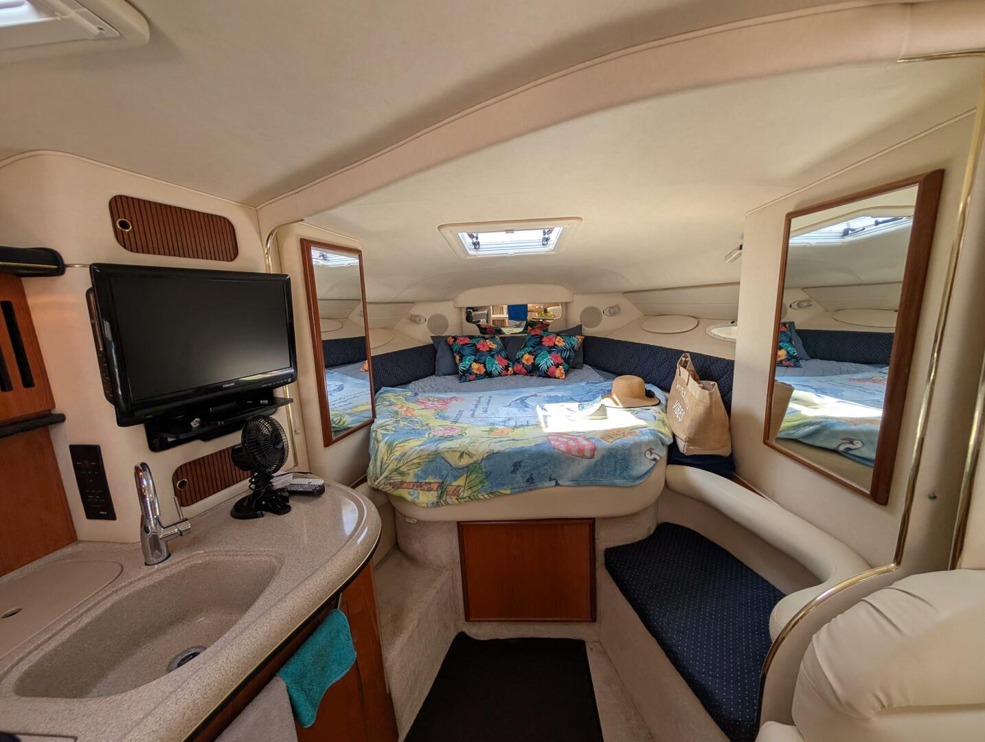 Forward berth: Island-style with privacy curtain (sleeps 2)