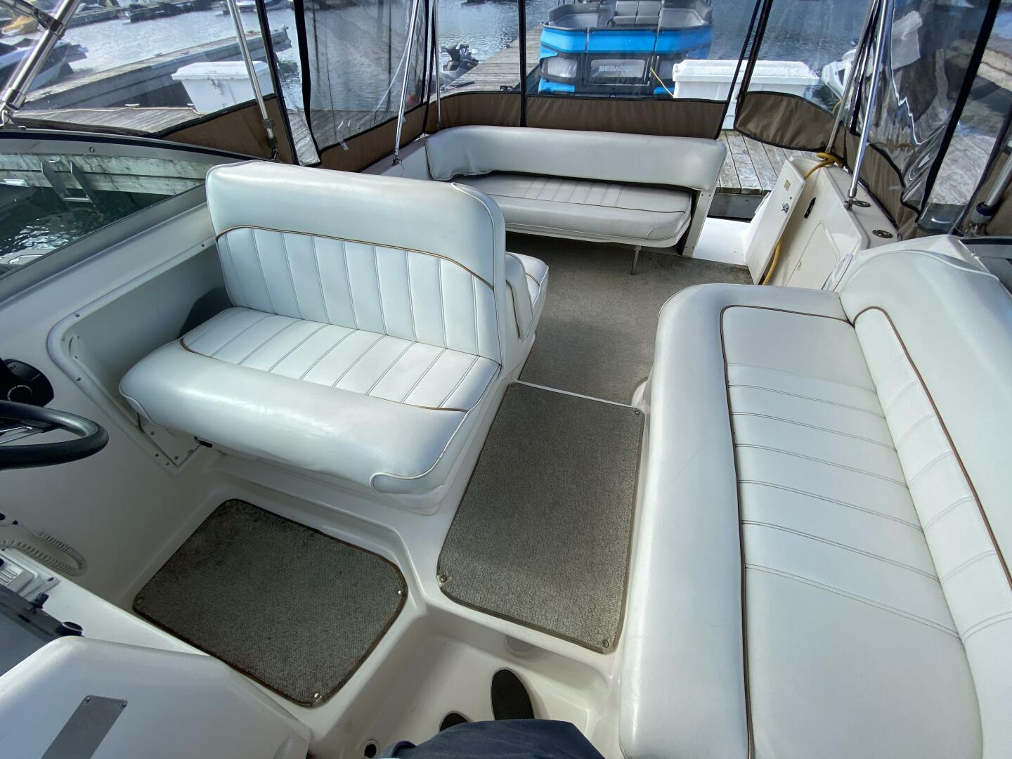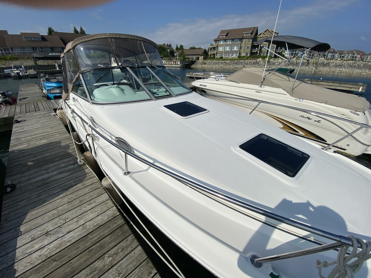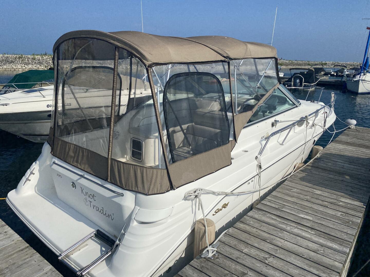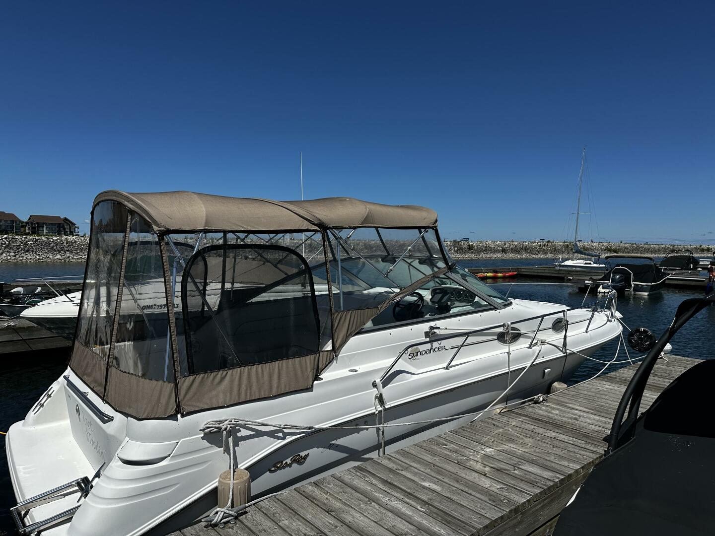 1997 Sea Ray 270 Sundancer, Freshwater boat with Camper Top/Screens, Head/ Shower, Fridge, Stove, Microwave, Swim Platform, GPS, and more. An ideal boat for day cruises with friends and family, or an overnight with the kids. Call today to book a showing or lean more.