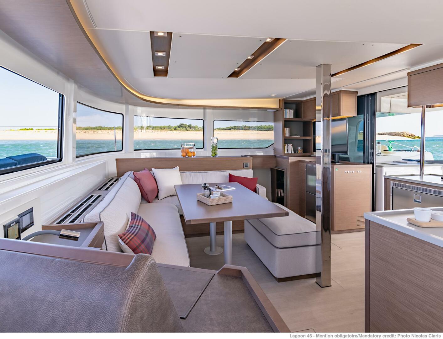 Lagoon is excited to announce the new "Iconic" style for the Lagoon 46, a tribute to our four decades of elegant cruising. Developed with Garage Yacht Design, this contemporary update features bold lines and careful graphic details, redefining Lagoon's catamaran vision.