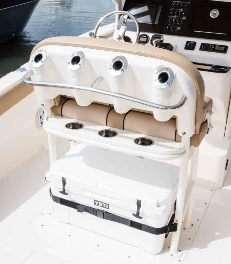 - Upgraded Leaning Post w/ Tackle Station, Folding Helm Chairs and Yeti