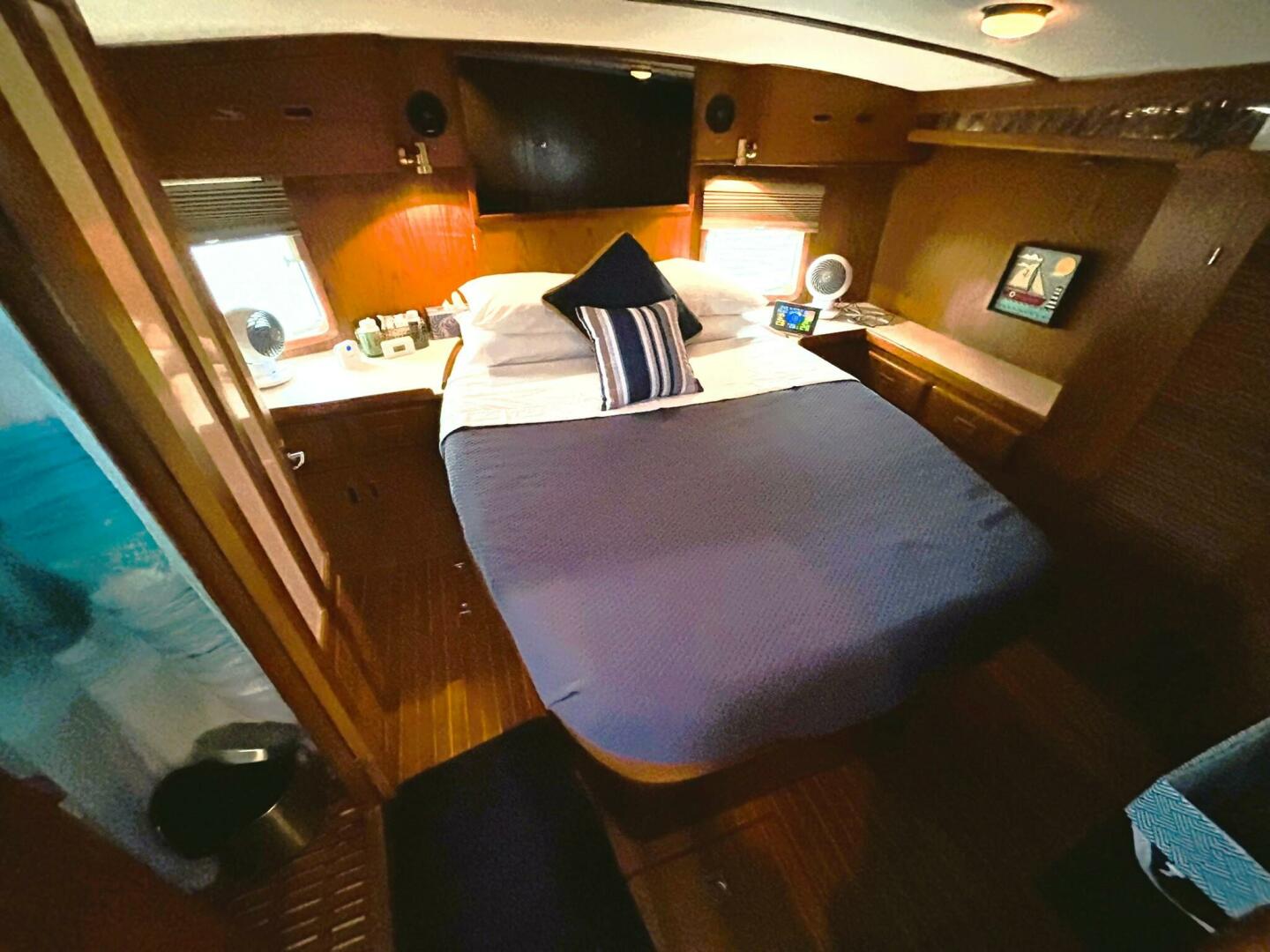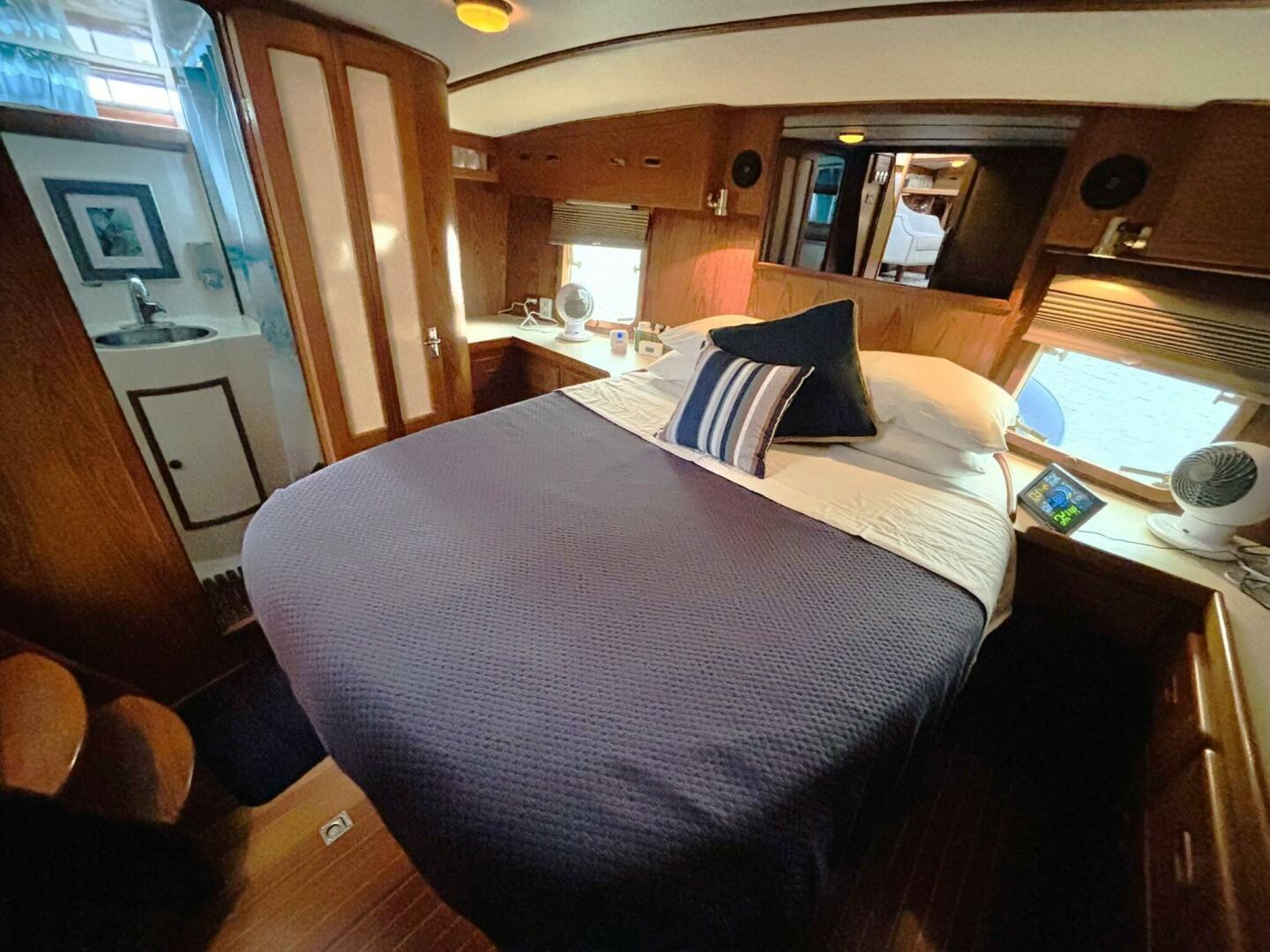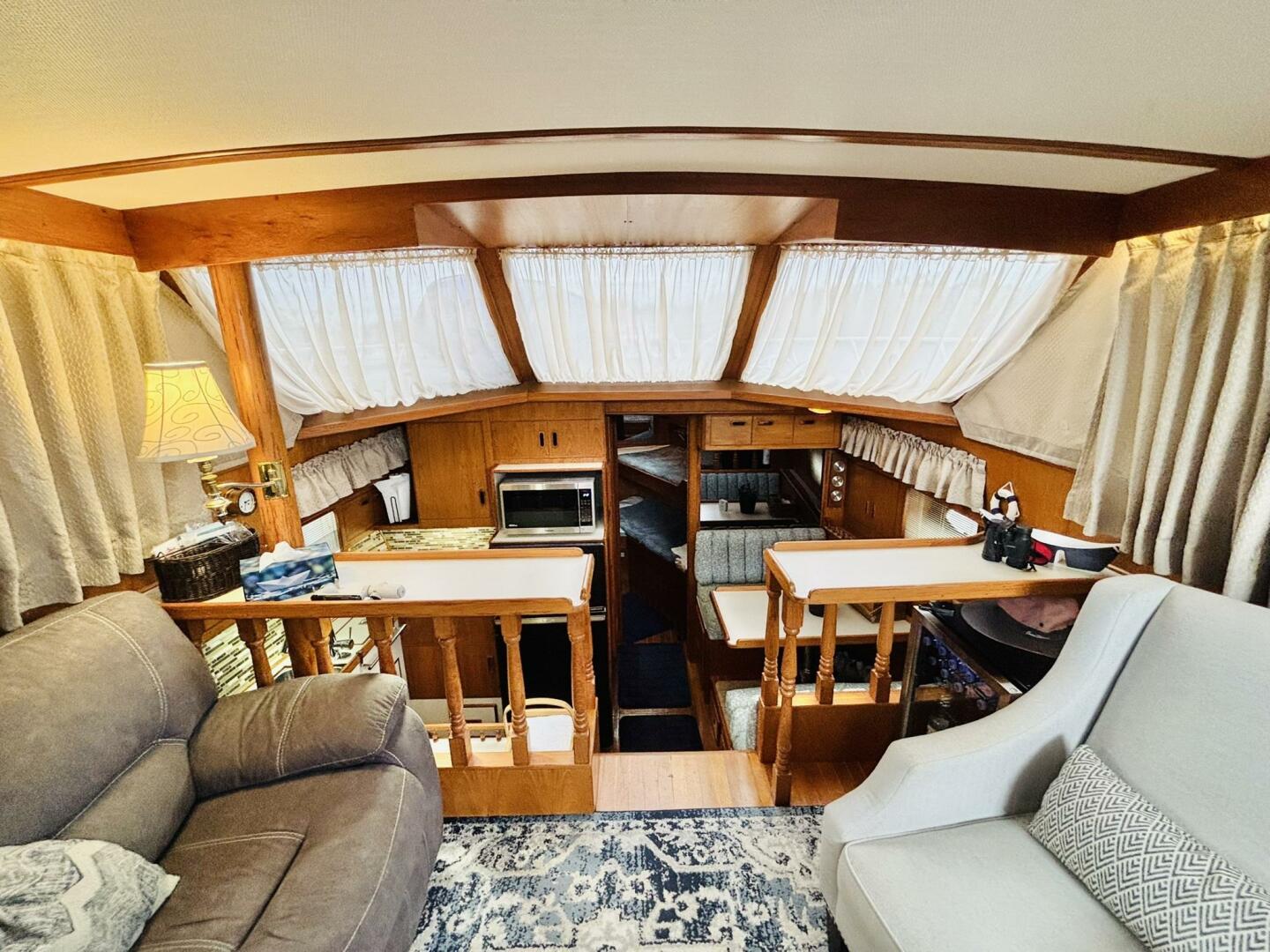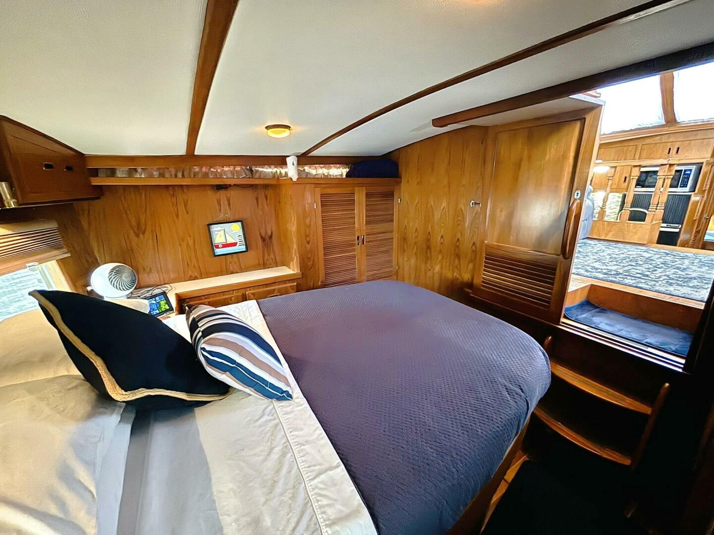 This classic 1987 President Aft Cabin Motor Yacht blends solid Taiwanese craftsmanship with the space and comfort ideal for extended cruising or liveaboard life. Featuring a full-beam aft master stateroom with queen island bed and ensuite head, a forward guest cabin with private access to a second head, and a spacious salon with large windows and rich teak finishes, she offers a warm and inviting interior. The fully equipped galley includes a full-size refrigerator, stove, microwave, and generous storage.