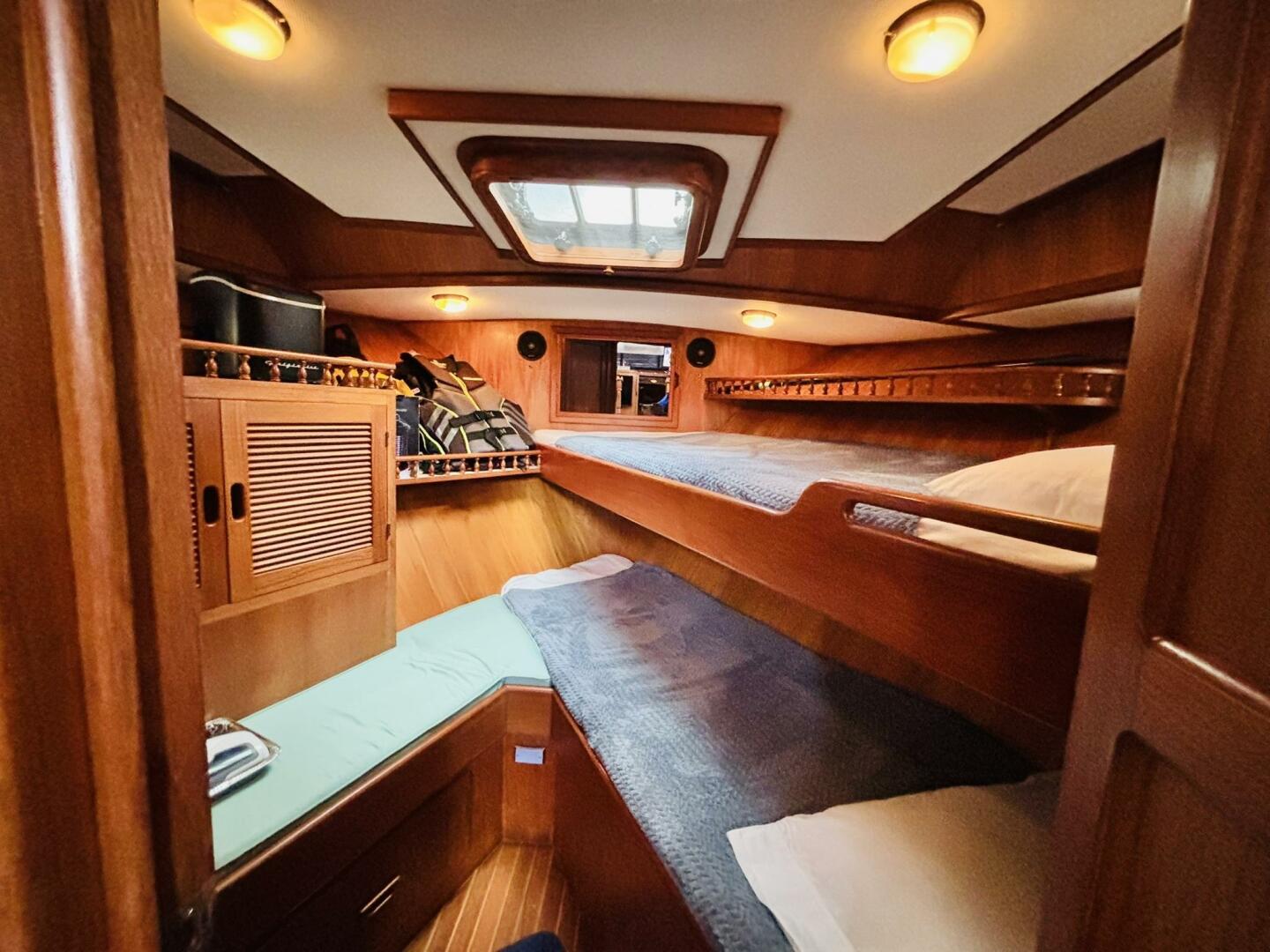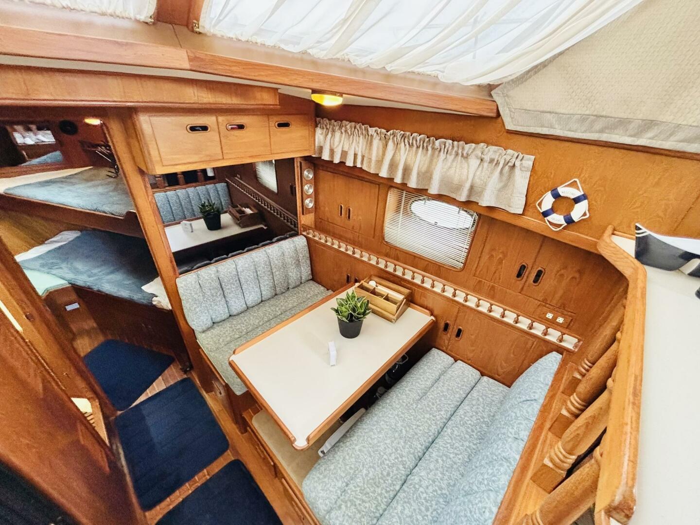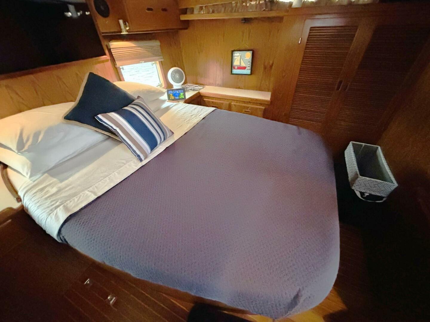 This classic 1987 President Aft Cabin Motor Yacht blends solid Taiwanese craftsmanship with the space and comfort ideal for extended cruising or liveaboard life. Featuring a full-beam aft master stateroom with queen island bed and ensuite head, a forward guest cabin with private access to a second head, and a spacious salon with large windows and rich teak finishes, she offers a warm and inviting interior. The fully equipped galley includes a full-size refrigerator, stove, microwave, and generous storage.