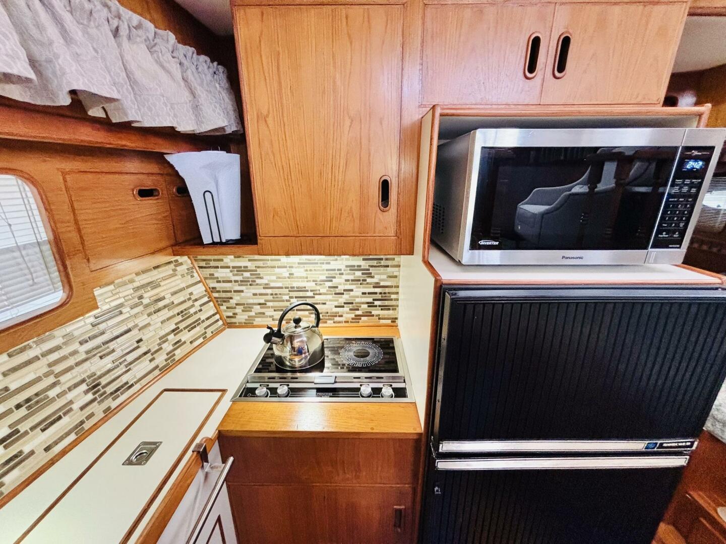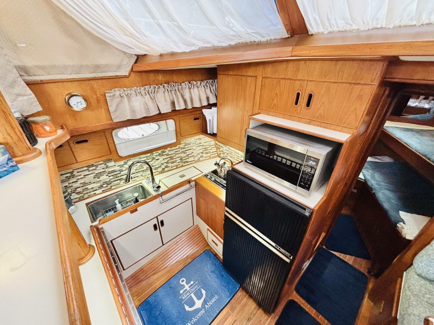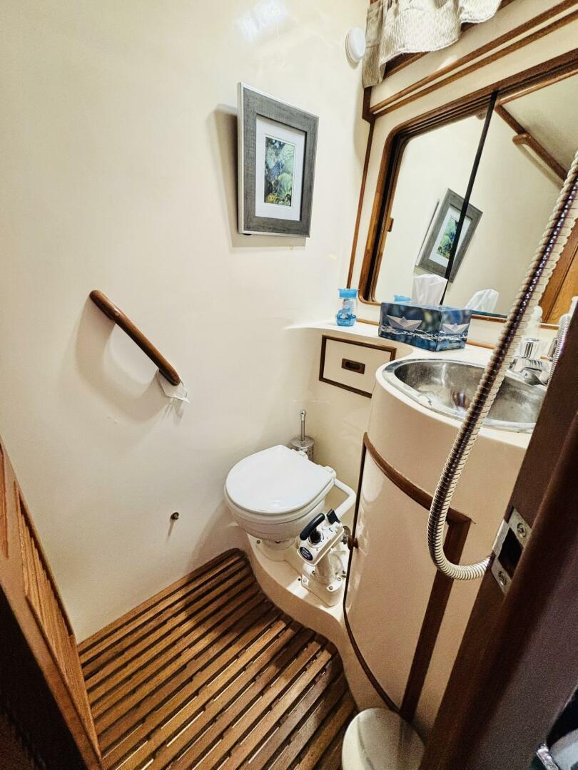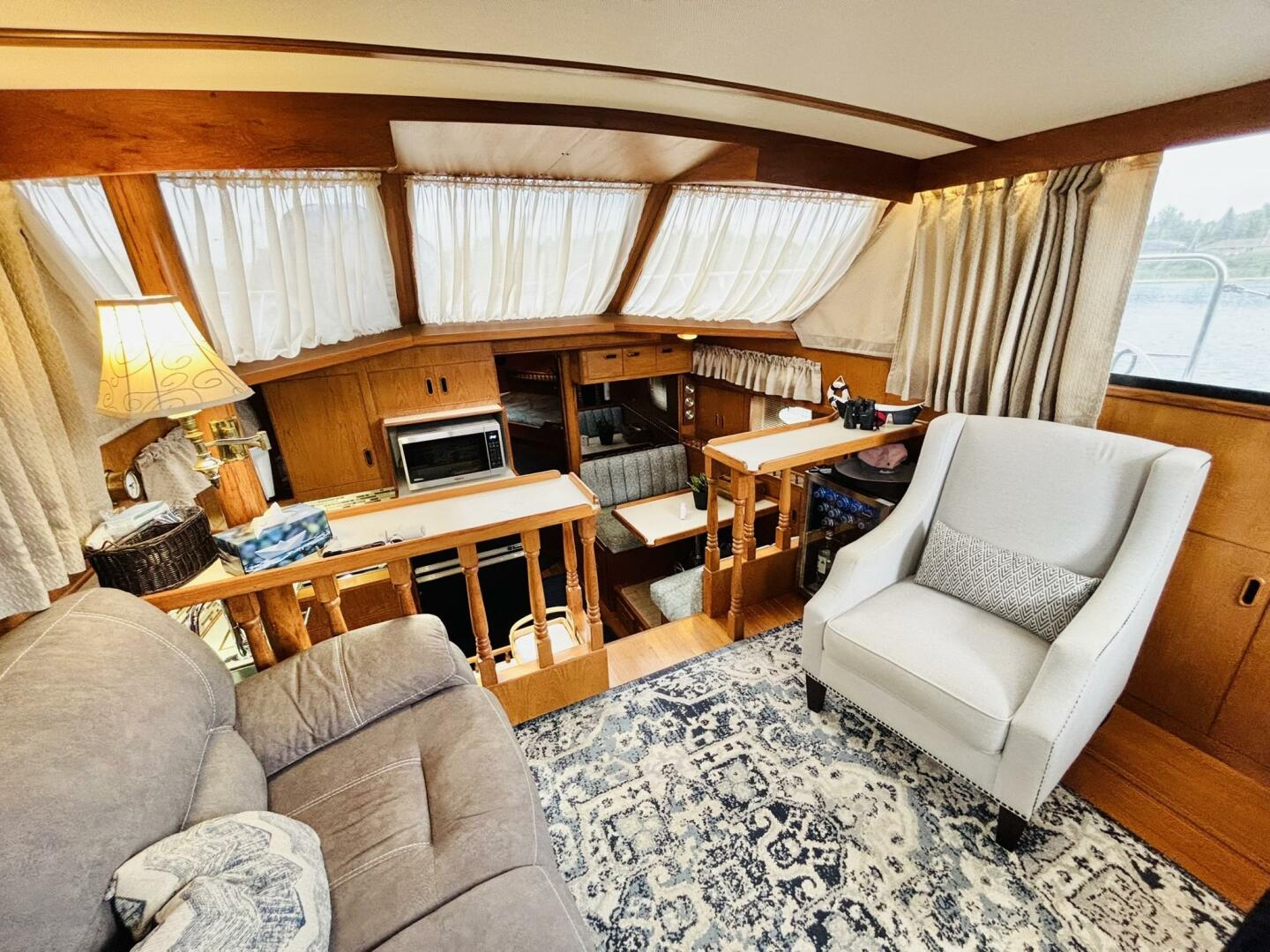 This classic 1987 President Aft Cabin Motor Yacht blends solid Taiwanese craftsmanship with the space and comfort ideal for extended cruising or liveaboard life. Featuring a full-beam aft master stateroom with queen island bed and ensuite head, a forward guest cabin with private access to a second head, and a spacious salon with large windows and rich teak finishes, she offers a warm and inviting interior. The fully equipped galley includes a full-size refrigerator, stove, microwave, and generous storage.