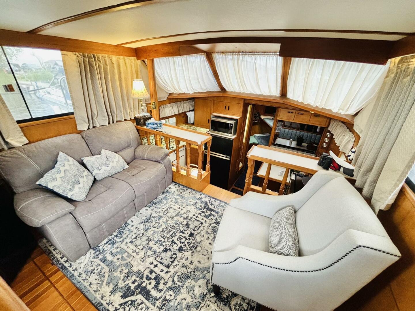 Spacious and well-appointed, this 1987 President Aft Cabin offers liveaboard comfort with two private staterooms, two heads, a roomy salon, and full galley. Twin gasoline engines and a large aft deck make it ideal for extended cruising or waterfront living.