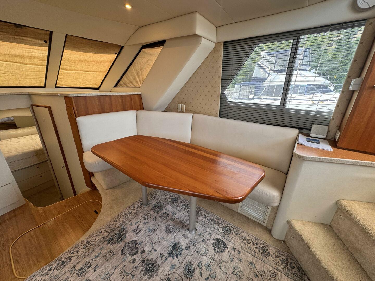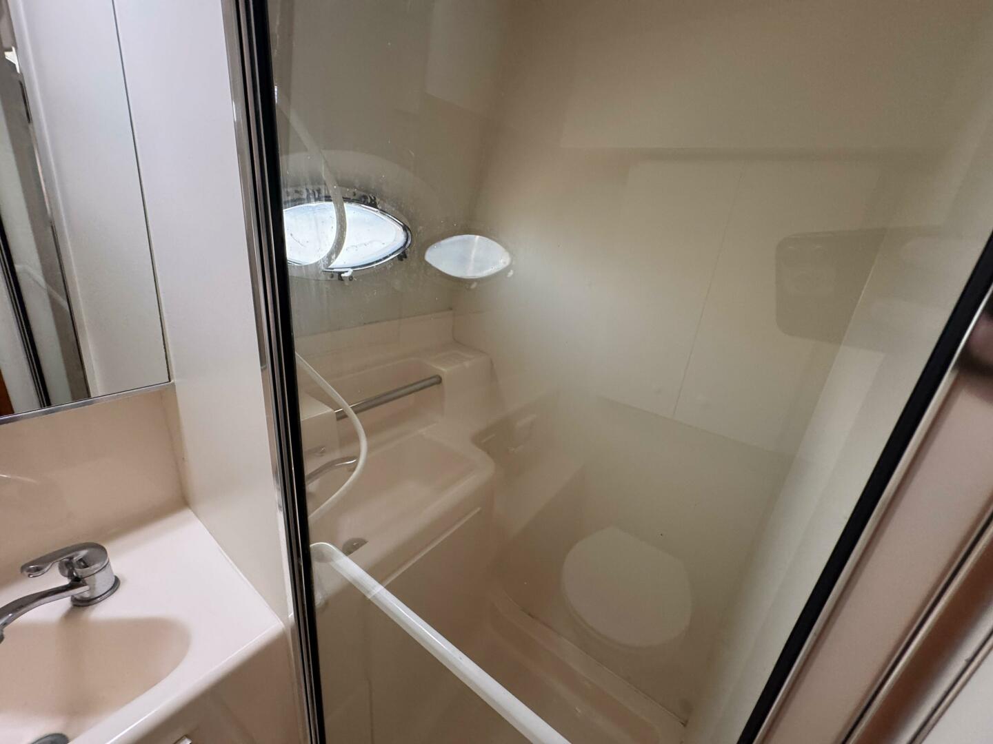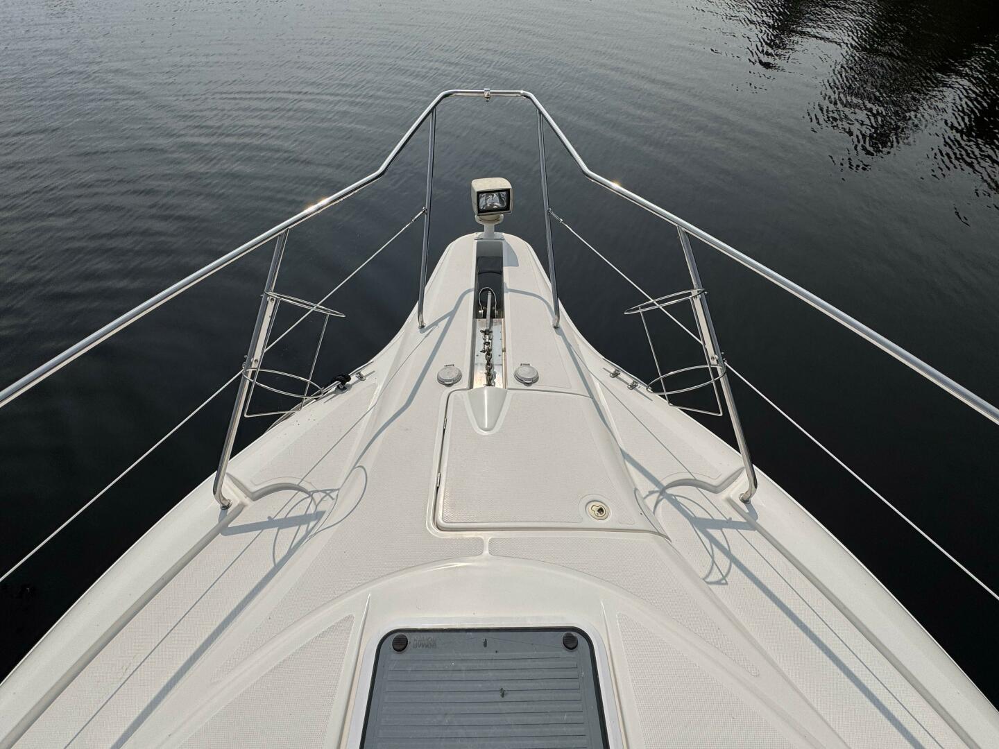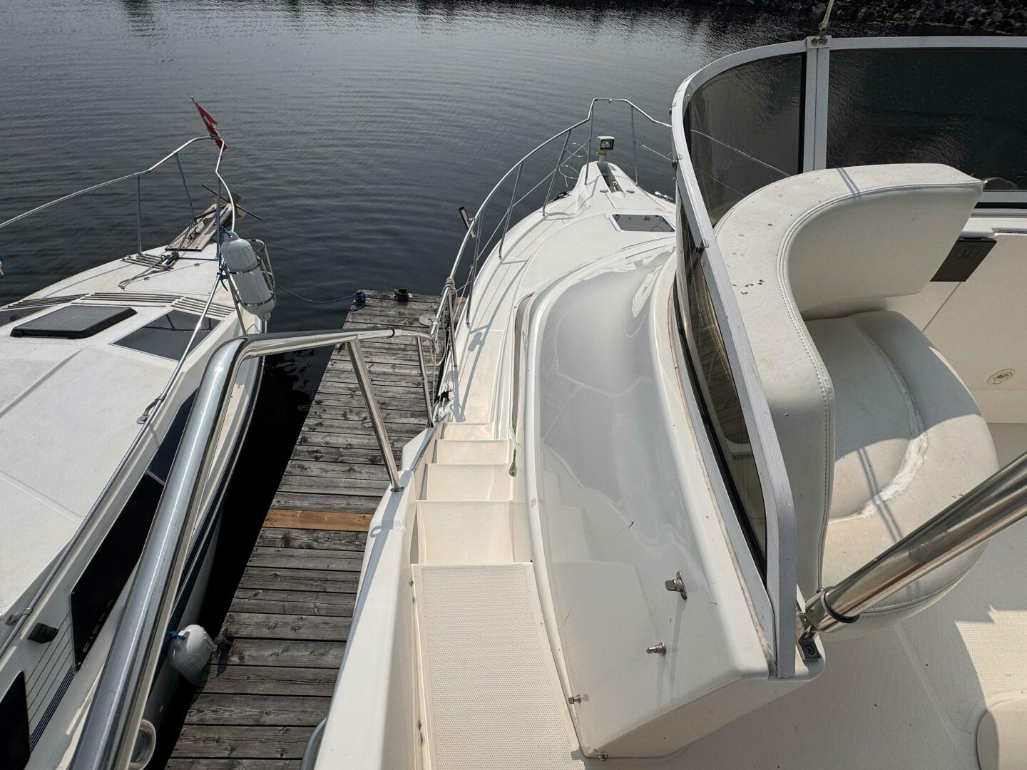 Topside, enjoy a fully enclosed flybridge and aft deck with updated SeaDek flooring, a cockpit sink, and easy access to the molded-in swim platform.