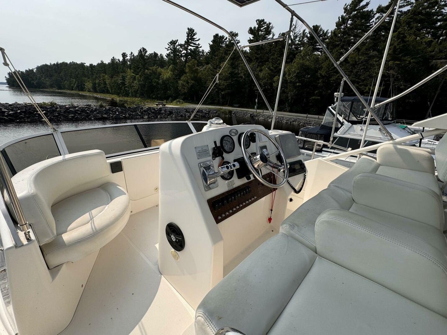 2000 Silverton 322 Motor Yacht – 2 Cabin/2 Head – Solar Equipped – Mercury 350 MPI – 650hrs – Full enclosure – Spanish, ON