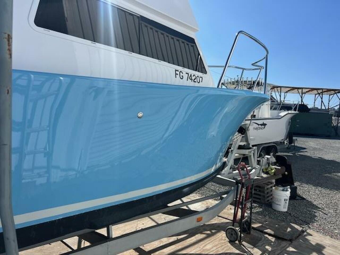 1971-2023 Custom mariners baja started out life as 24 fly bridge crusiers. 6ft cockpit extension with an outboard bracket