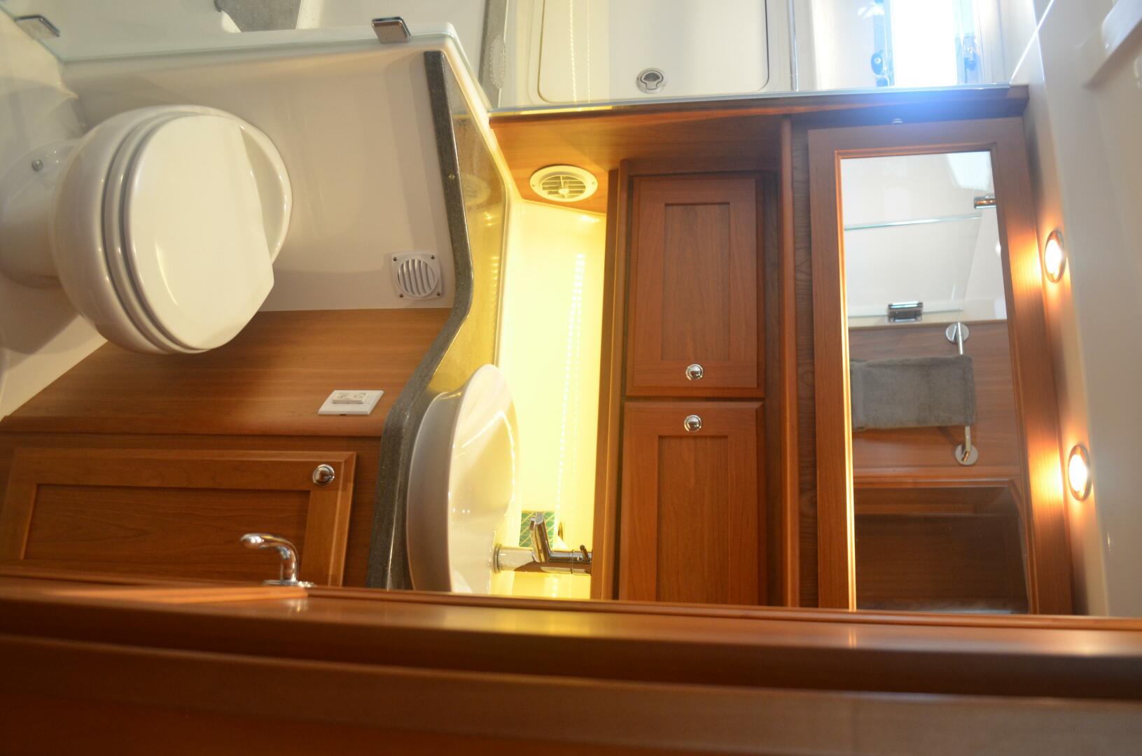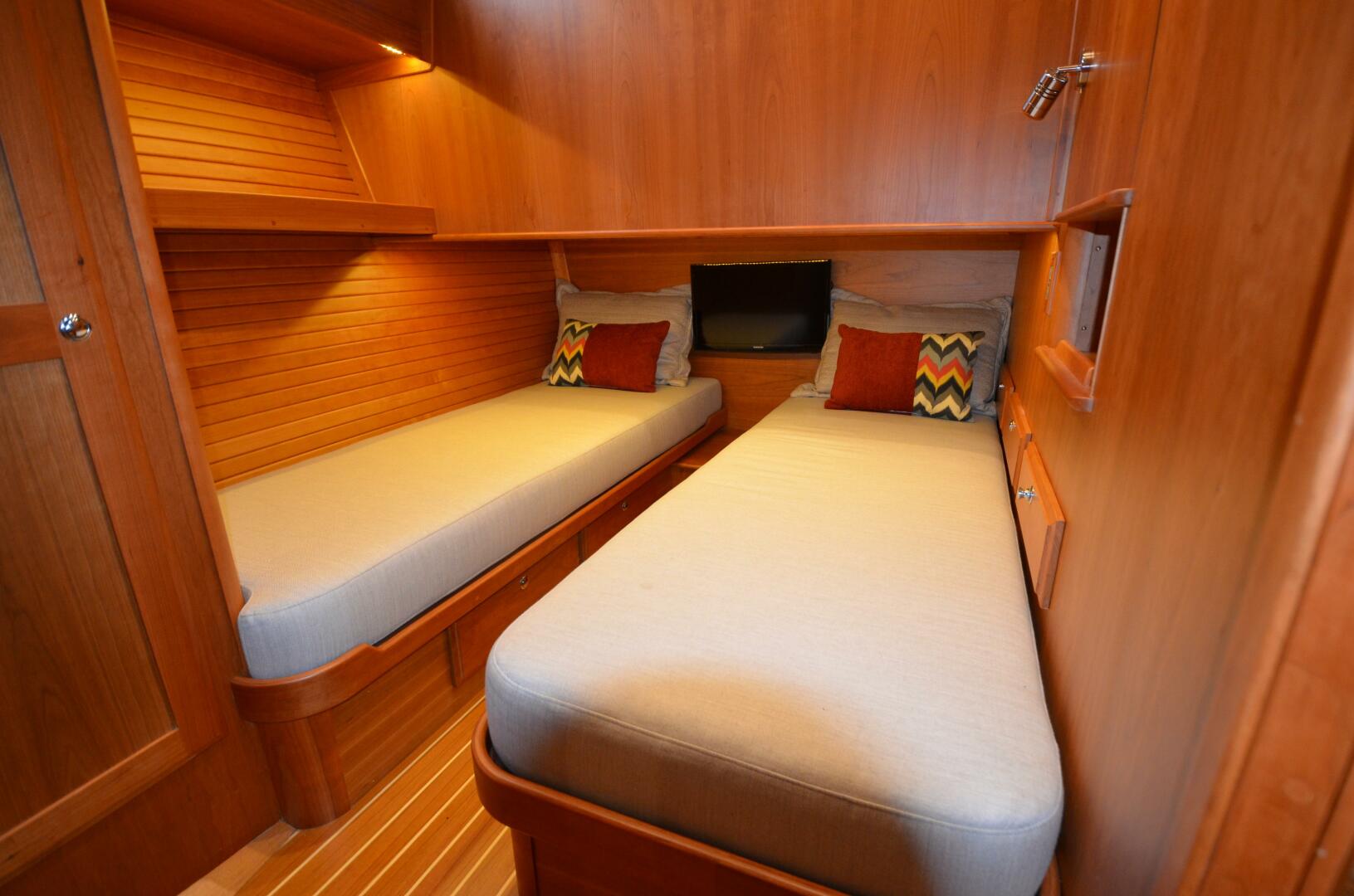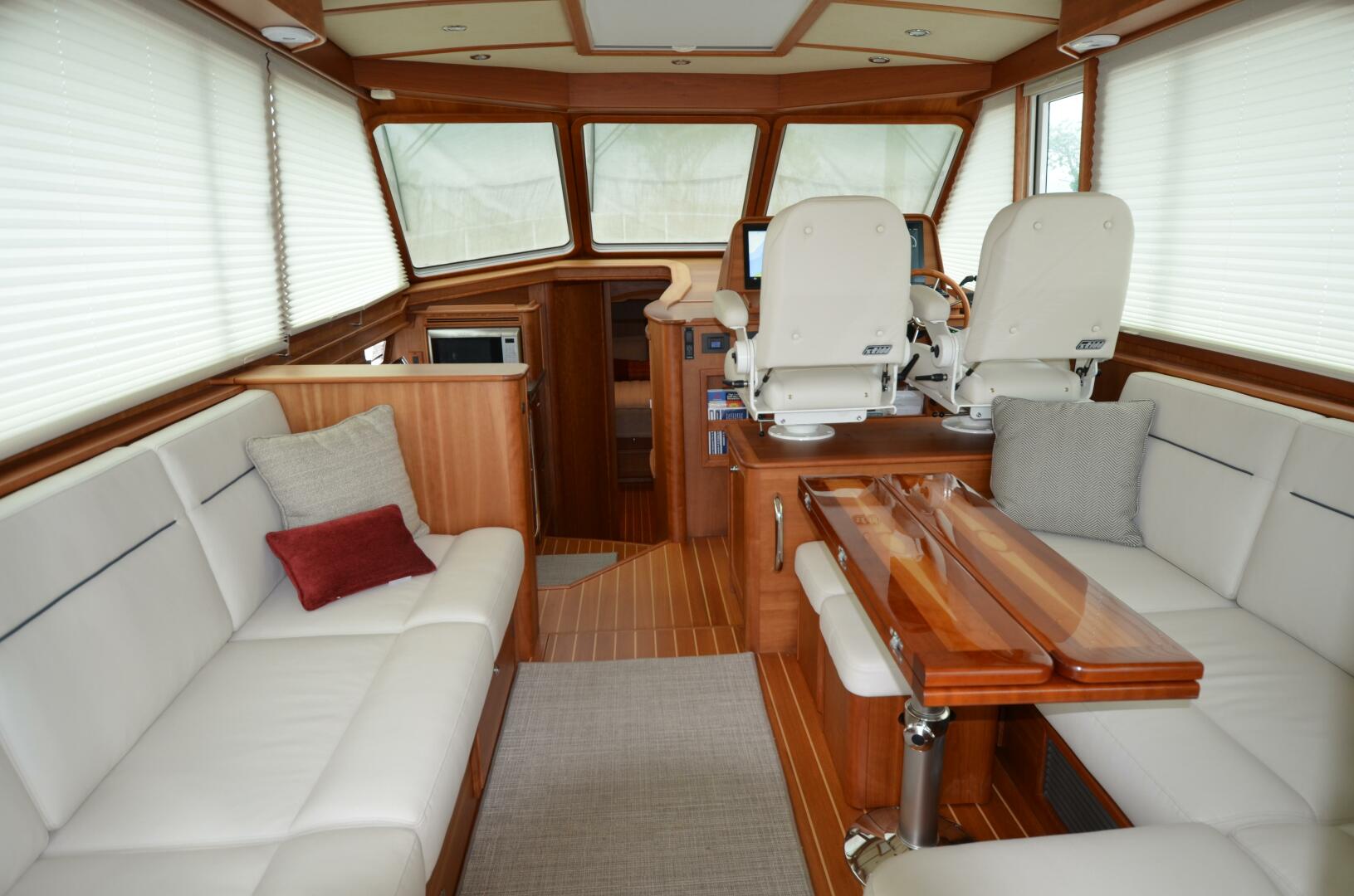 Step aboard Serenity and discover the elegance and capability of a true Northeast cruising yacht. Her teak-covered cockpit offers an inviting U-shaped settee and a fully equipped outdoor galley, perfect for entertaining. Inside, the cherry wood salon features plush Ultra Leather seating, a custom high-gloss table, and twin Stidd helm chairs with panoramic visibility and advanced Garmin electronics.