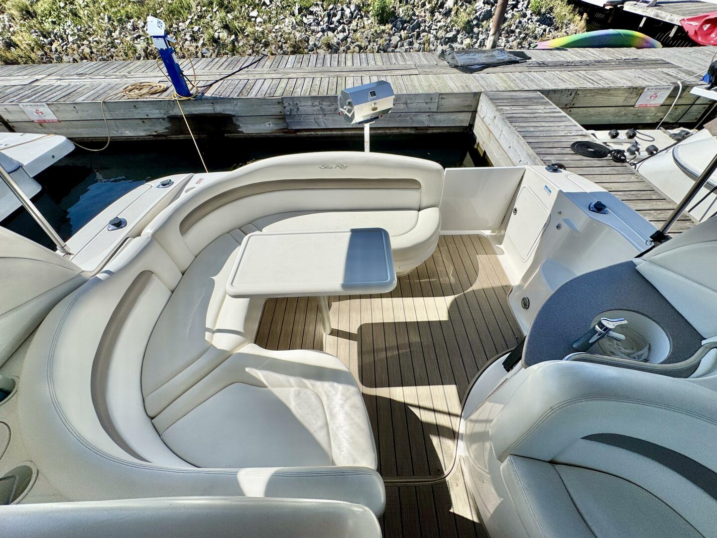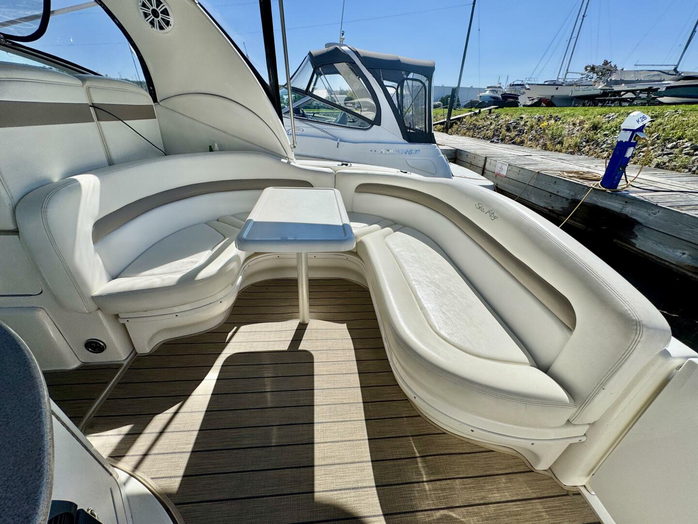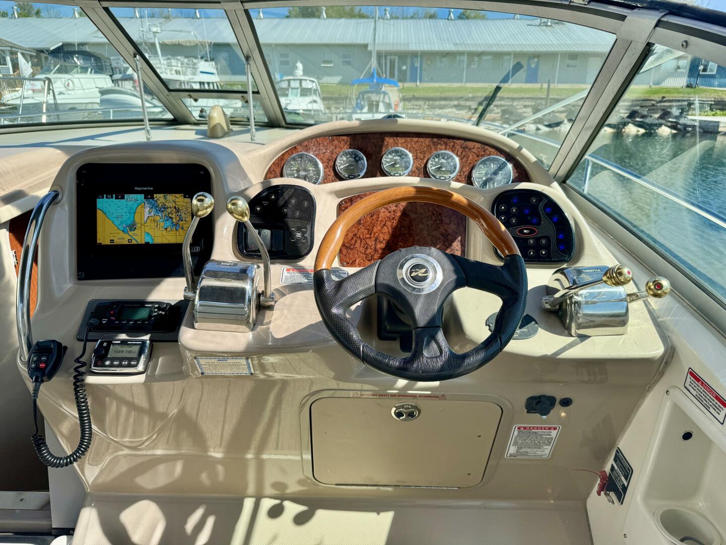 Well-maintained 2004 Sea Ray 320 Sundancer with only 400 hours on Mercruiser 350 MPI Horizon V-drive engines. Features a Kohler generator, upgraded helm with all factory Sea Ray controls replaced, and a newer Raymarine chartplotter. The Fusion sound system adds great onboard entertainment. Perfect for cruising, entertaining, or overnight stays. Turn-key and ready for your next adventure!