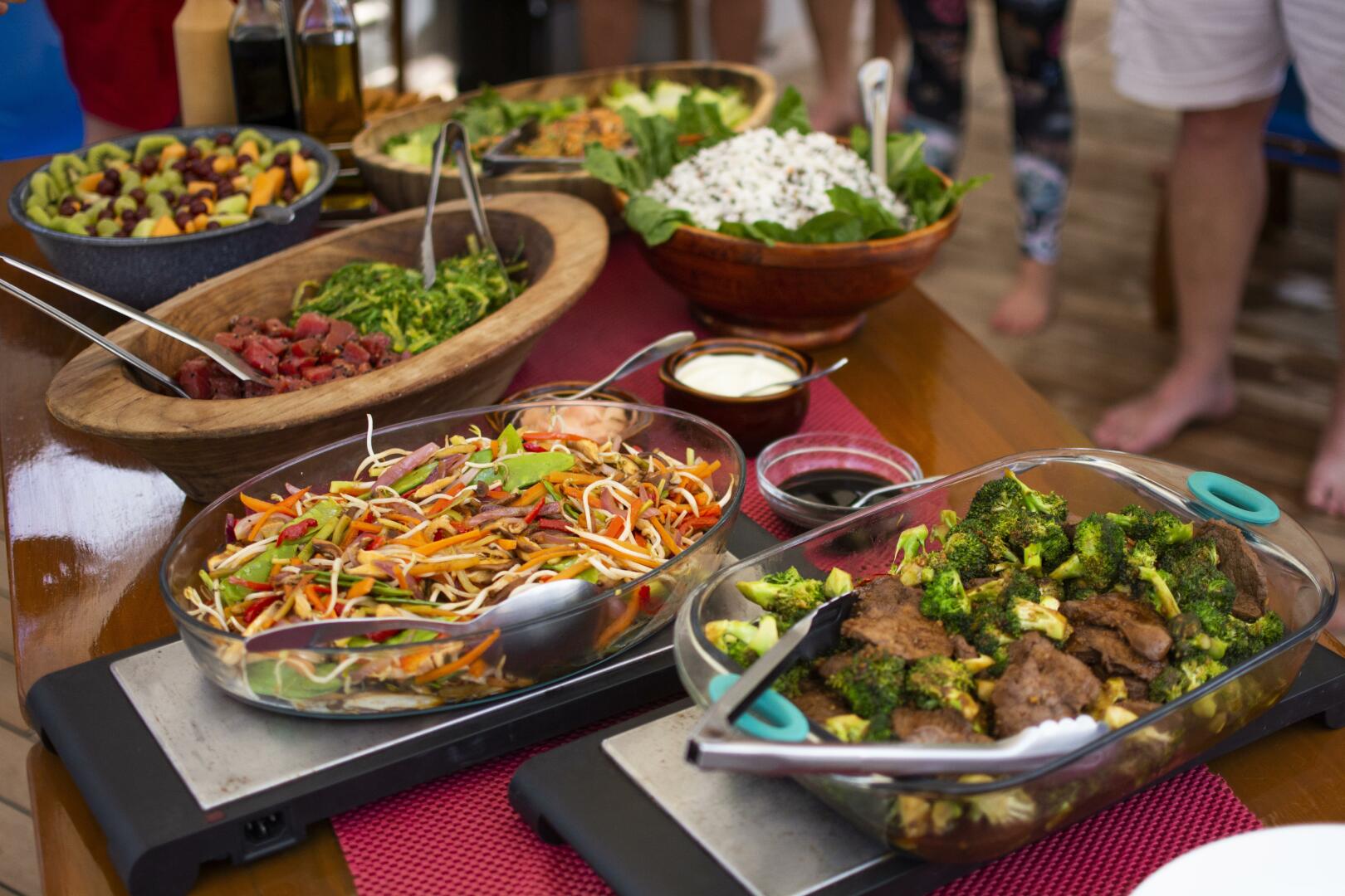 - Commercial-grade galley with 6-burner stove, double ovens, salamander and griddle