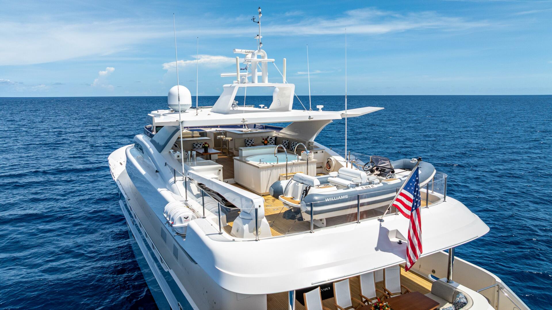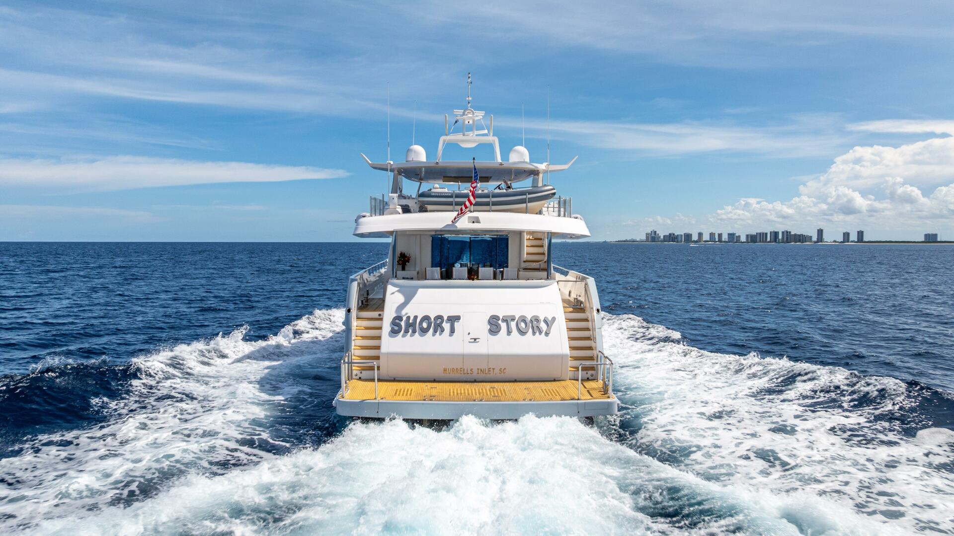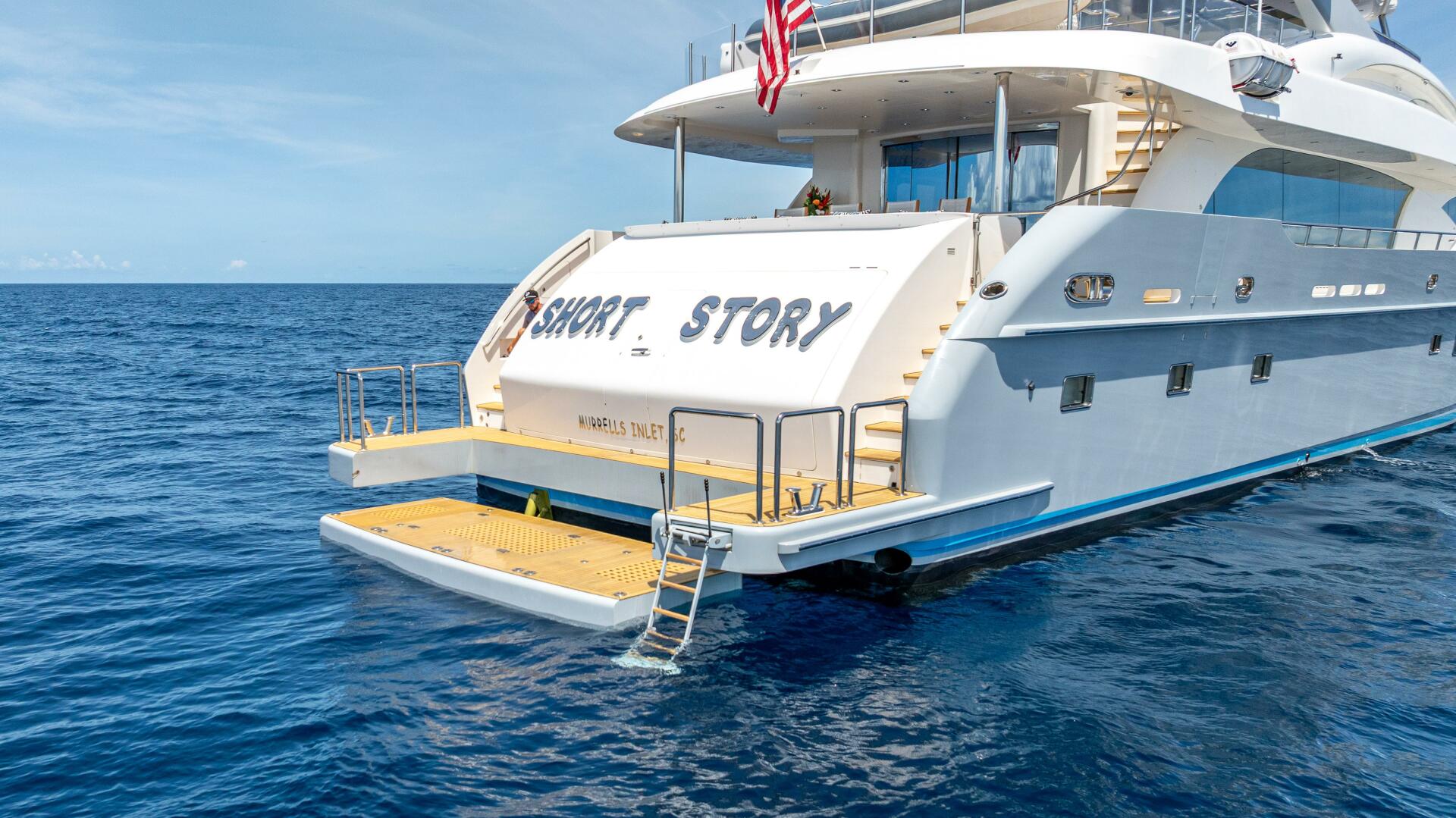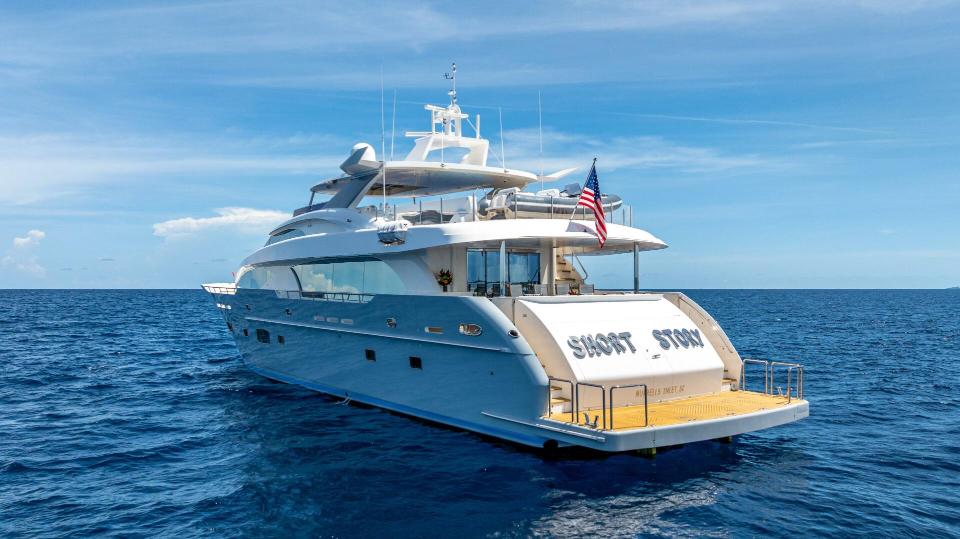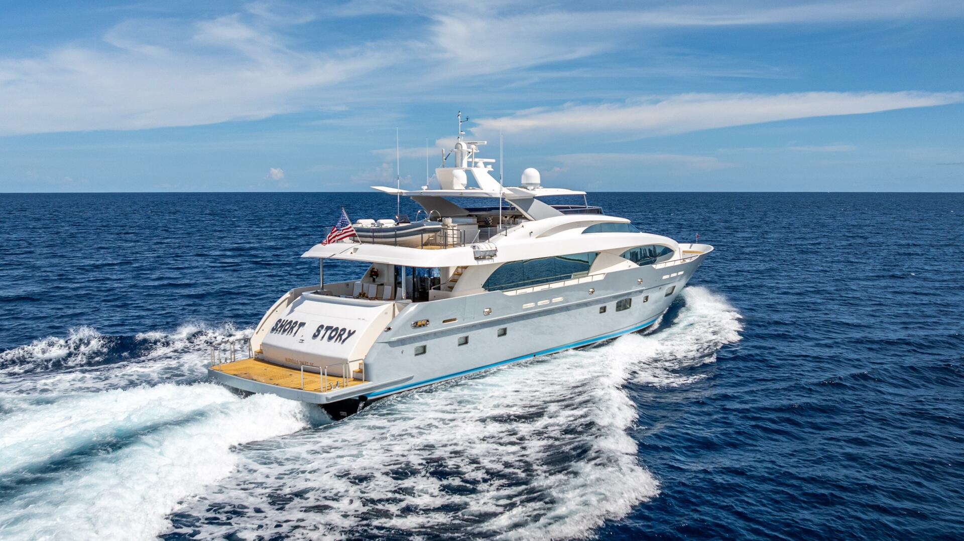 Newly Listed, Short Story is a one-of-a-kind 122 foot Horizon Raised Pilothouse Motor Yacht.