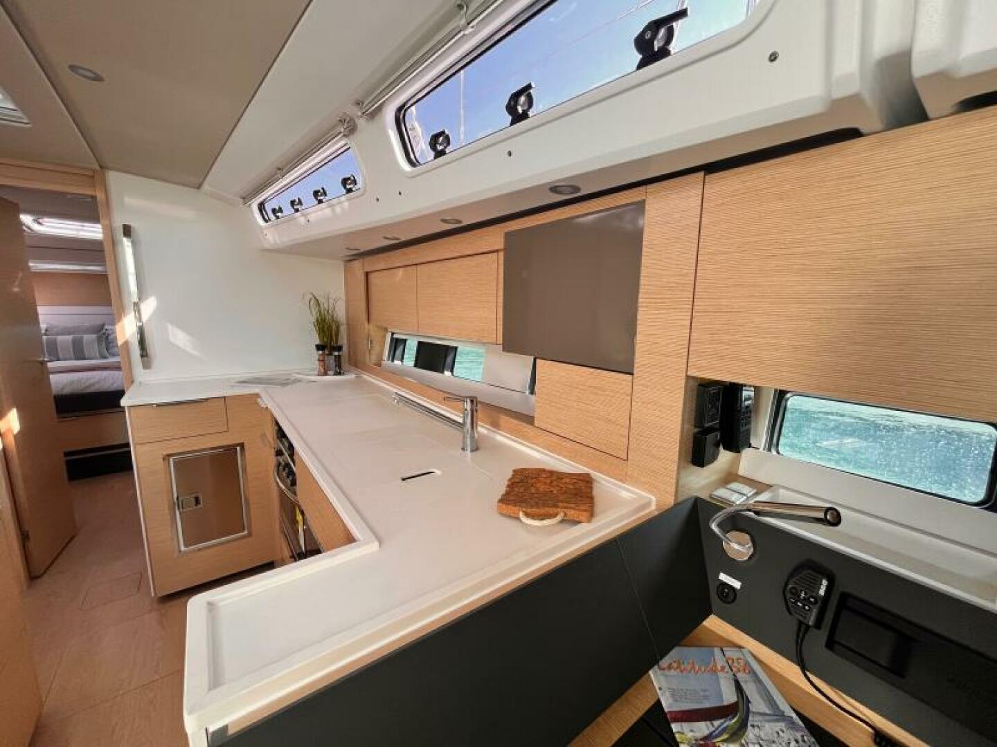 - B2: Saloon with full functional U-galley and chart table on starboard and dining area with bar on port