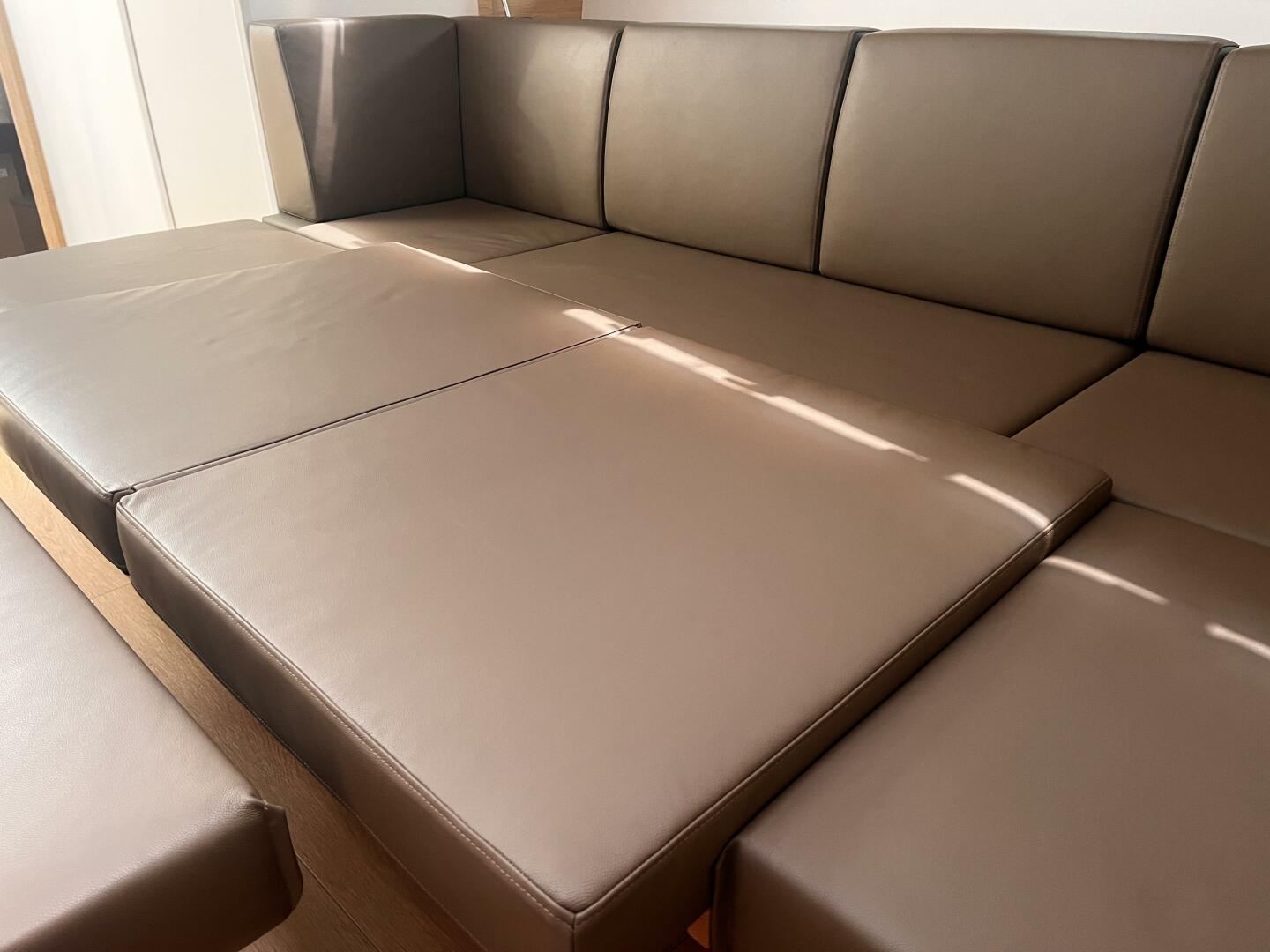 - 2 Cockpit tables with teak top, electrically lowerable into sunbed incl. upholstery on both sides; cockpit bench extension on starboard side