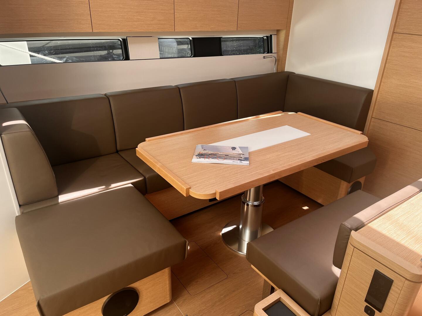 - Saloon table electrically lowerable with cushions, convertible to double berth