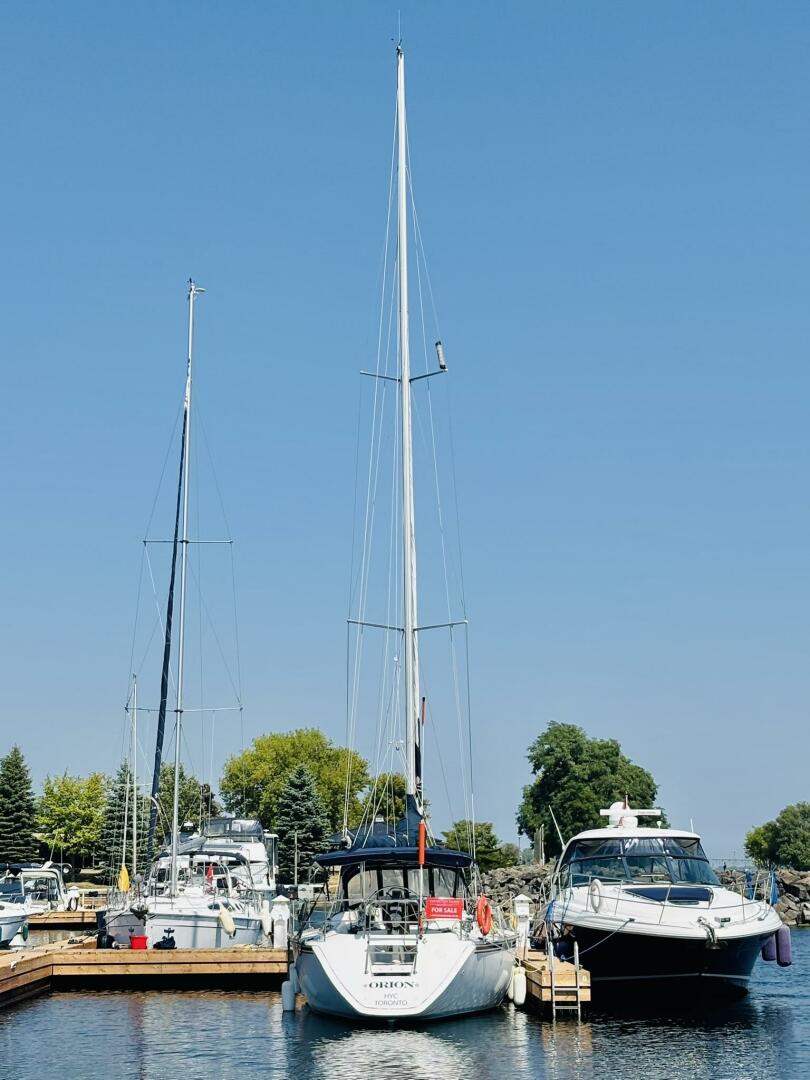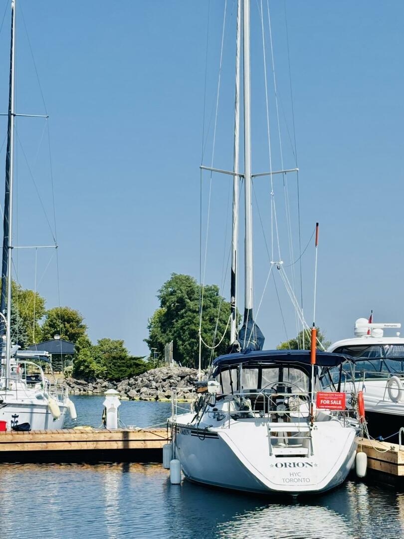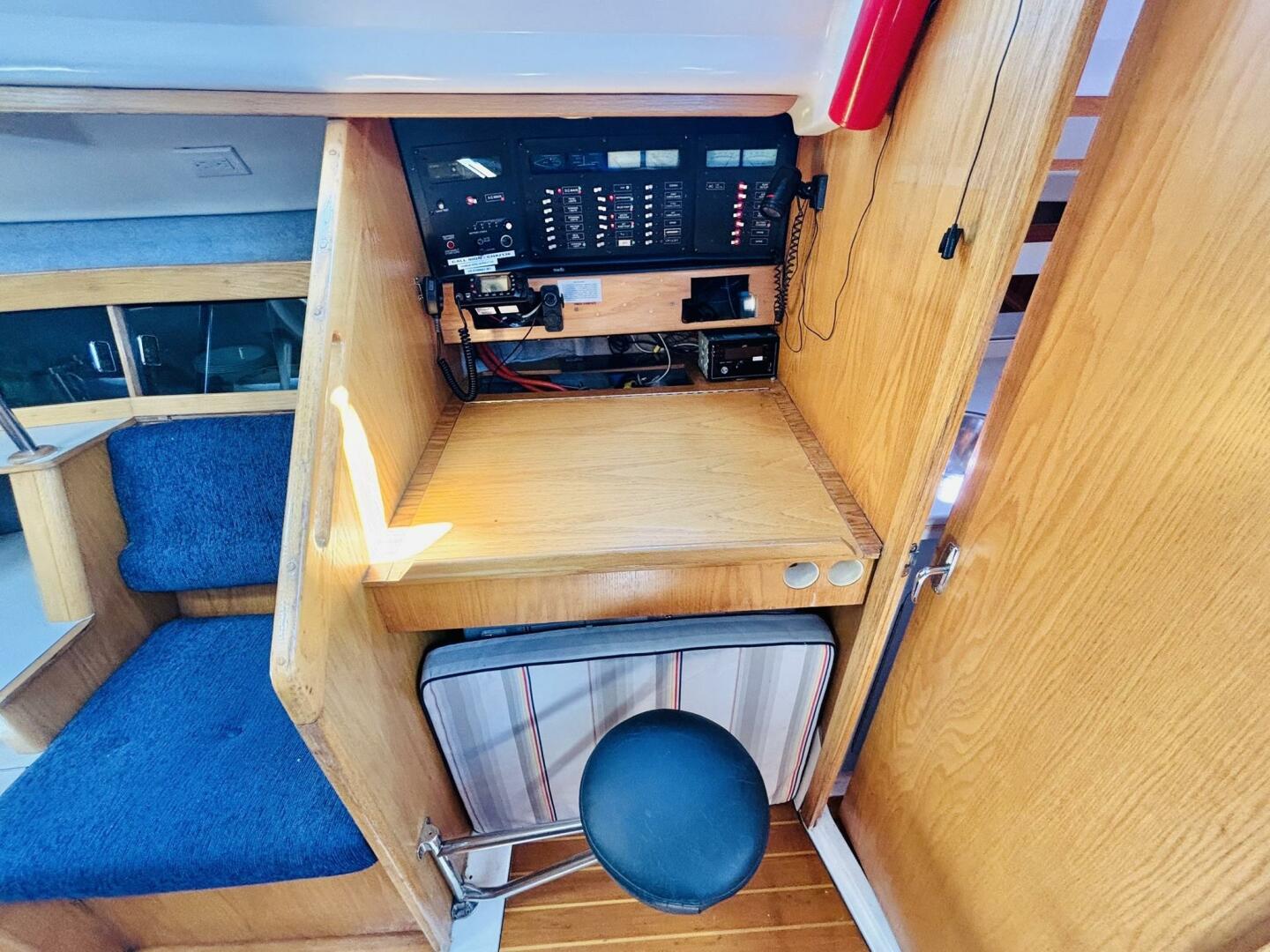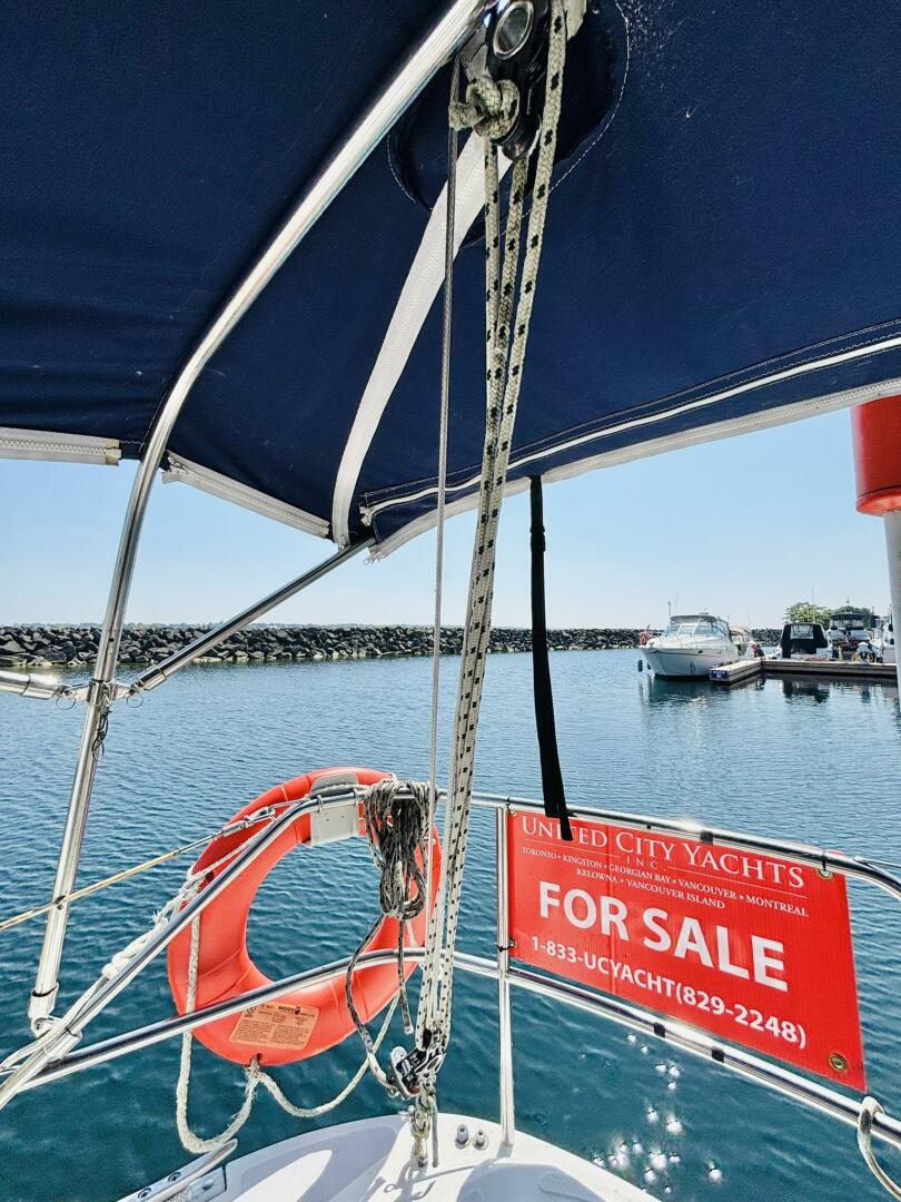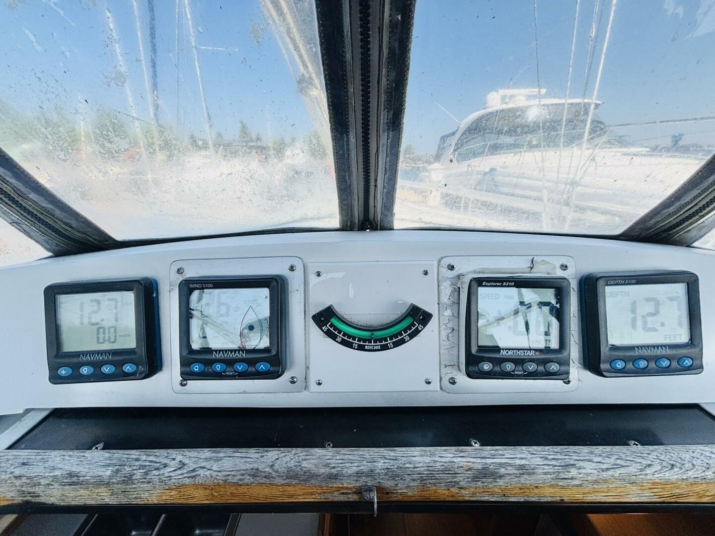 On deck, her wide side decks, secure lifelines, and large cockpit make for safe and comfortable passages. The bimini and dodger offer excellent protection, while self-tailing winches, furling genoa, and well-laid-out controls keep sailing manageable for short-handed crews. Powered by a reliable Yanmar diesel, she offers dependable performance under power.